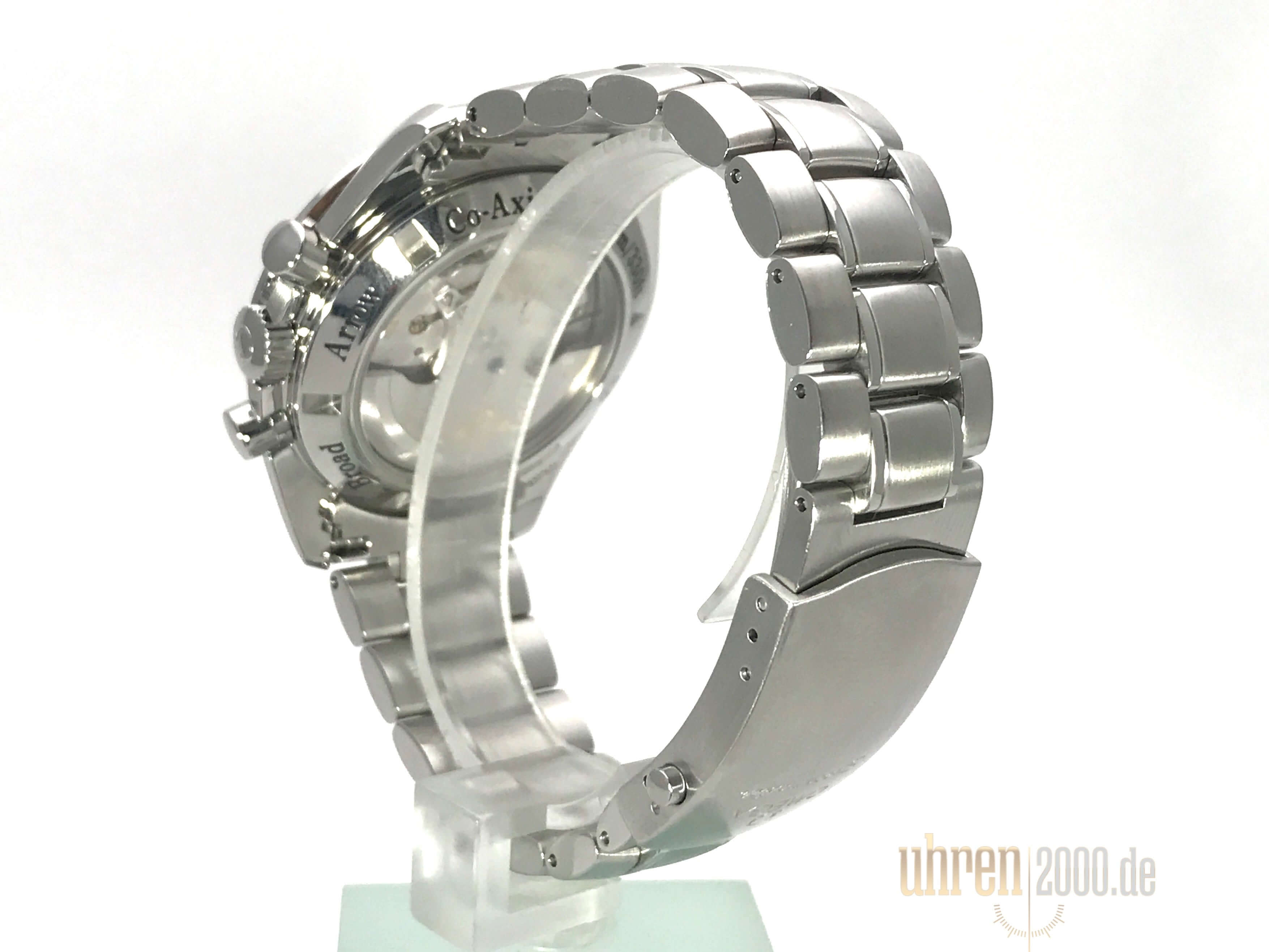 Gehäuse aus Edelstahl poliert und satiniert, Gehäusedurchmesser 42 mm, Lünette aus Edelstahl satiniert, Edelstahlband satiniert mit Doppelfaltschließe, Zifferblatt silberfarben mit aufgesetzten Leuchtindexen, Uhrwerk Automatik, Chronograph, Kaliber Omega 3313, Co-Axial Hemmung, Chronometer, Gangreserve 52 Stunden, Datumsanzeige, Saphirglas, Krone verschraubt, Gehäuseboden aus Edelstahl verschraubt, graviert mit Saphirglas, Wasserdicht bis zu 10 bar.