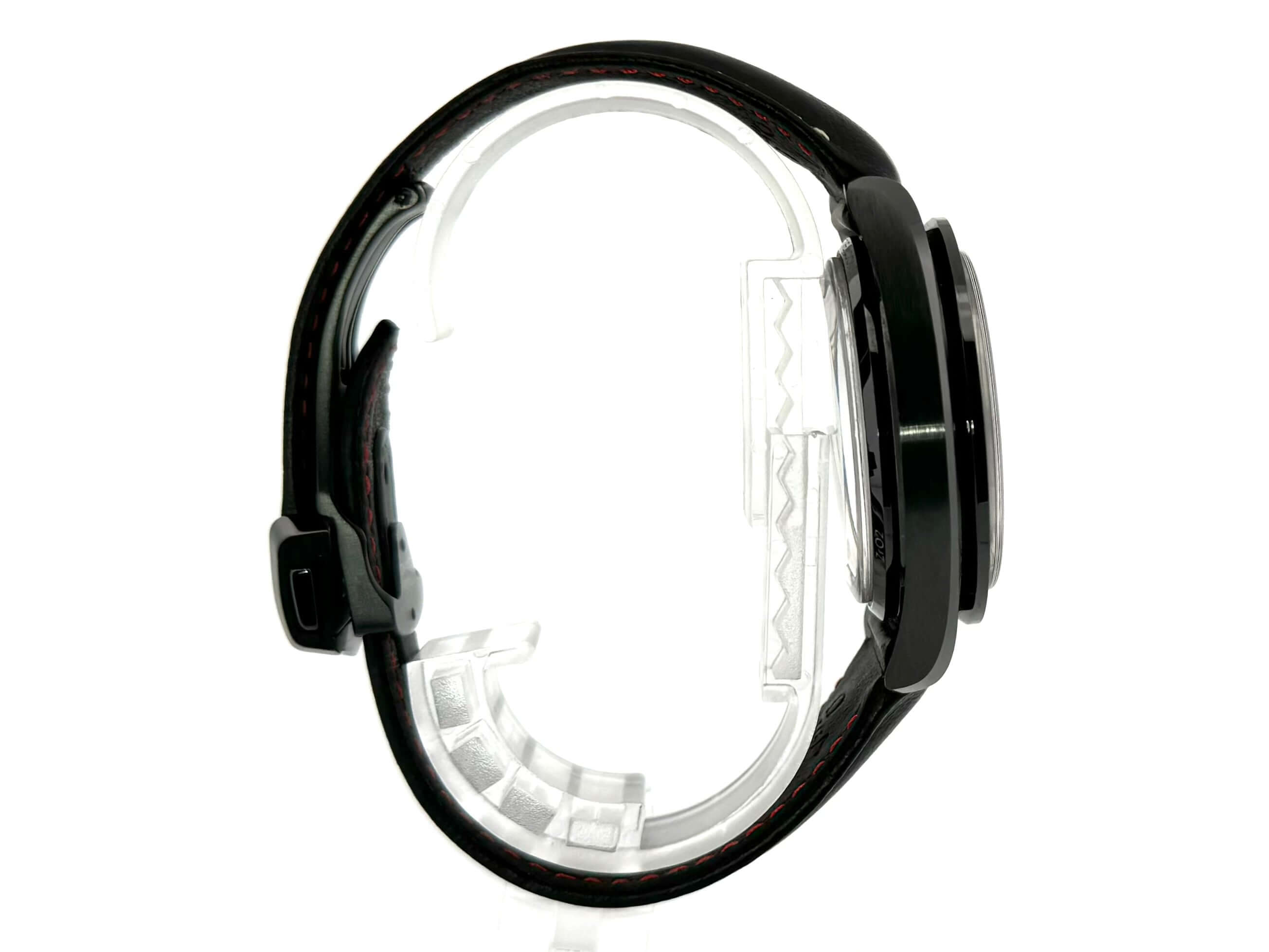 Gehäuse aus schwarzem Keramik, Gehäusedurchmesser 44,25 mm, schwarzes Zifferblatt, schwarzes Lederband mit Titan Faltschließe, Automatikwerk, Omega Co-Axial-Kaliber 9300 mit Säulenradmechanismus, Si14-Silizium-Unruh-Spiralfeder, Gangreserve ca. 60 Stunden, Kratzresistentes Saphirglas, Chronometer, Chronograph, Datum, kleine Sekunde, Tachymeter, Transparenter Gehäuseboden aus Saphirglas, Wasserdicht bis zu 5 bar.