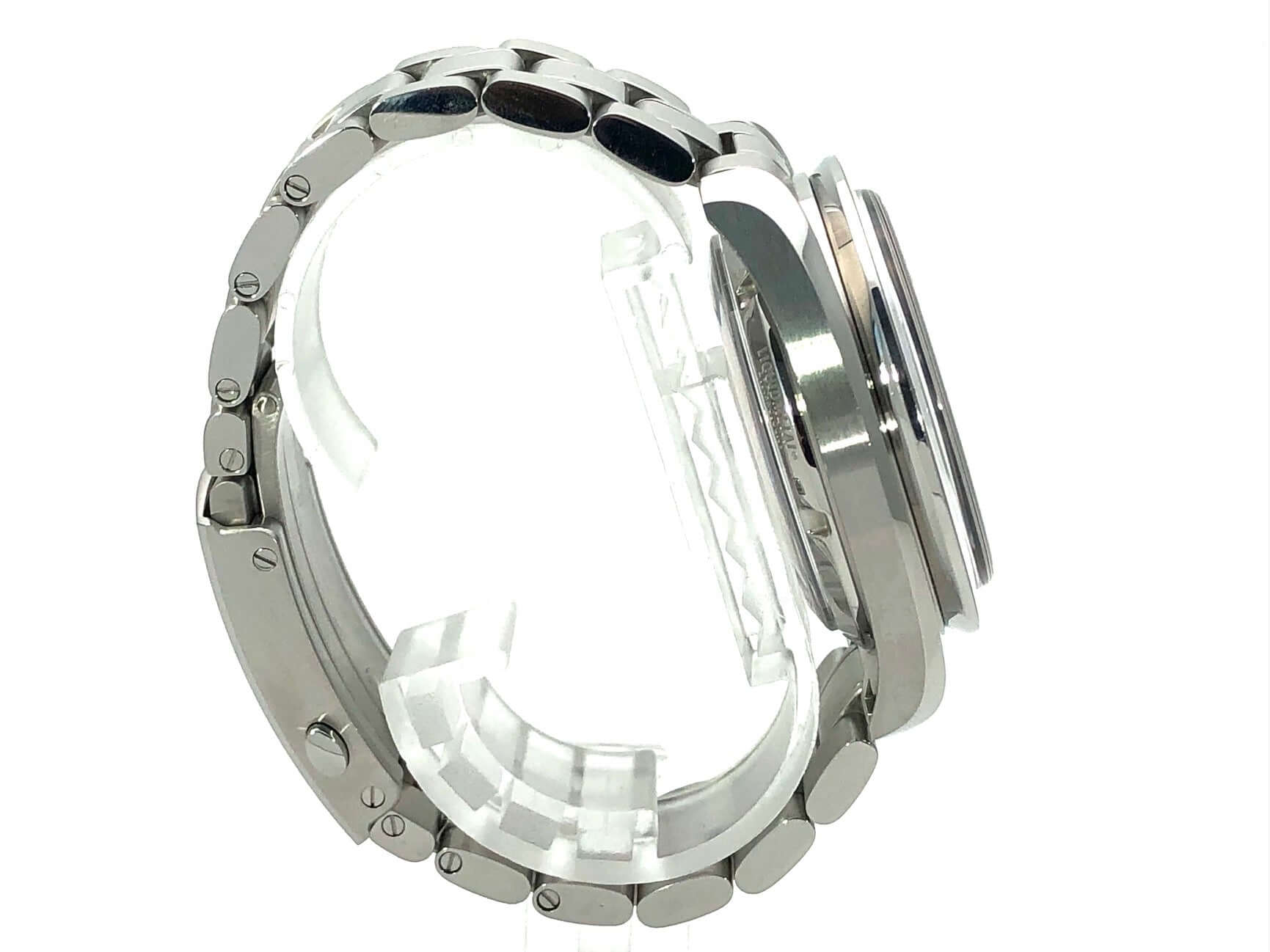 Gehäuse aus Edelstahl poliert und satiniert, Gehäusedurchmesser 44 mm, Edelstahl Lünette mit schwarzer Keramik Einlage und Tachymeterskala, Edelstahlband mit Sicherheitsfaltschließe, schwarzes Zifferblatt mit Sonnenschliff und aufgesetzten Leuchtindizes, Leuchtzeiger, Automatikwerk, Kaliber Omega 9904, Gangreserve 60 Stunden, Mondphase, Chronograph, Datum, Master Chronometer, kratzfestes Saphirglas, doppelseitig entspiegelt, Saphirglasboden verschraubt, Wasserdicht bis zu 10 bar