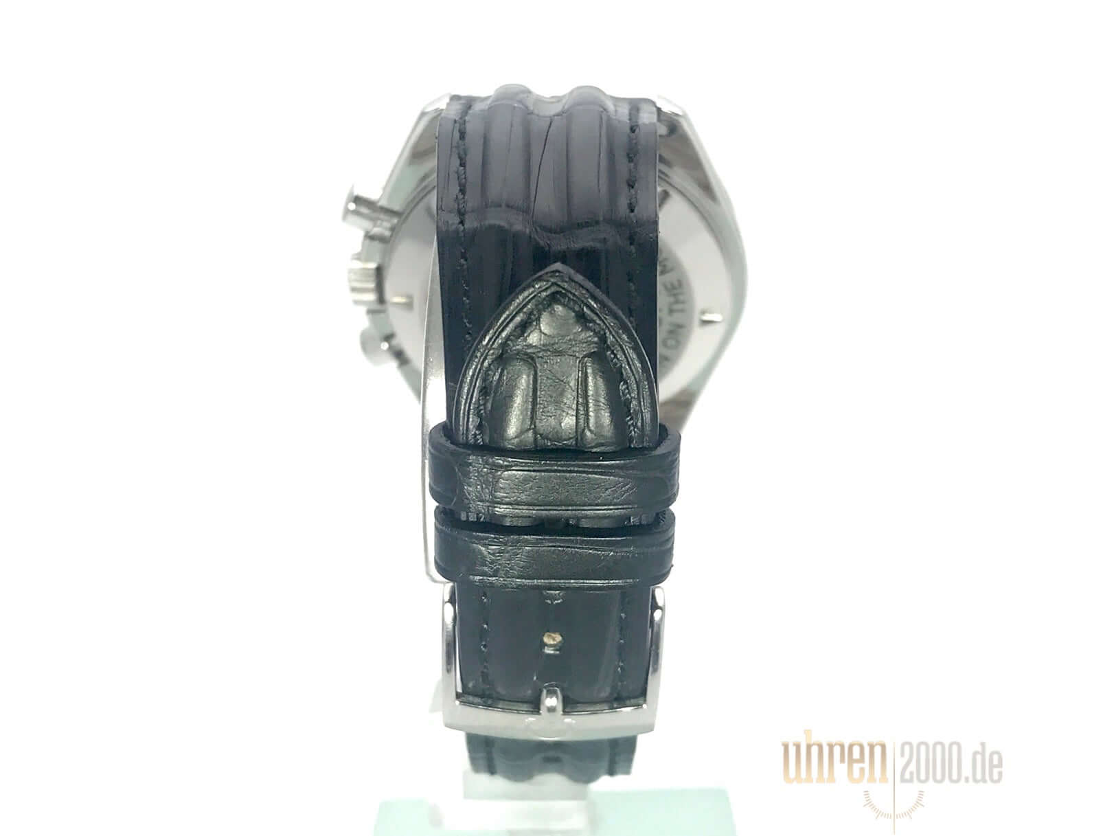 Gehäuse Edelstahl poliert und satiniert, Gehäusedurchmesser 42 mm, Gehäusehöhe 14 mm, Lünette Stahl mit schwarzem Inlay und Tachymeterskala, schwarzes Lederband mit Dornschließe, Zifferblatt schwarz mit Leuchtindexen, Leuchtzeiger, Uhrwerk Handaufzug, Chronograph, Kaliber Omega 1861, 21.600 A/h, Gangreserve ca. 48 Stunden, kleine Sekunde bei 9 Uhr, Hesalitglas, Edelstahlboden verschraubt und graviert, Wasserdicht bis zu 5 bar.