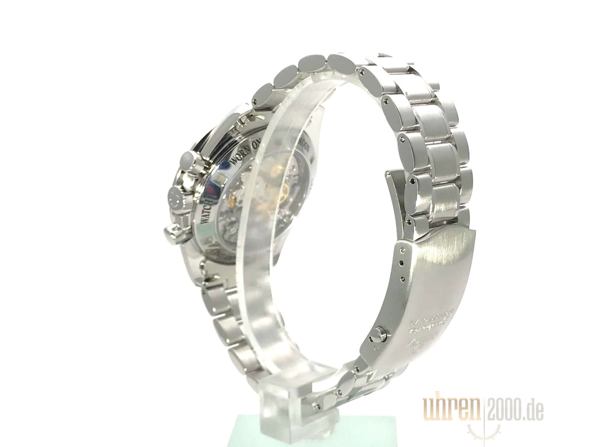 Gehäuse aus Edelstahl poliert und satiniert, Gehäusedurchmesser 42 mm, Gehäusehöhe 14,3 mm, Edelstahl Lünette mit schwarzer Einlage und Tachymeterskala, Edelstahlband poliert und satiniert mit Sicherheitsfaltschließe, Zifferblatt schwarz mit aufgesetzten Leuchtindexen, Leuchtzeiger, Uhrwerk Handaufzug, Chronograph, Kaliber Omega 1863 mit 18 Steine, 21.600 A/h, Gangreserve ca. 48 Stunden, Saphirglas, doppelseitig entspiegelt, Edelstahlboden verschraubt, graviert mit Saphirglasboden Wasserdicht bis zu 5 bar.