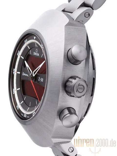 Gehäuse aus Titan poliert und satiniert, Gehäusedurchmesser 43 mm, Titan Lünette, Titanband mit Faltschließe, schwarzes Zifferblatt mit aufgesetzten Leuchtindexen und Leuchtpunkten, Leuchtzeiger, Uhrwerk Quarz, Omega 5666, Chronograph, Ewiger Kalender, GMT, Saphirglas gewölbt und kratzfest, doppelseitig entspiegelt, Krone verschraubbar mit Flankenschutz, Titanboden verschraubt und graviert, Wasserdicht bis zu 3 bar.
