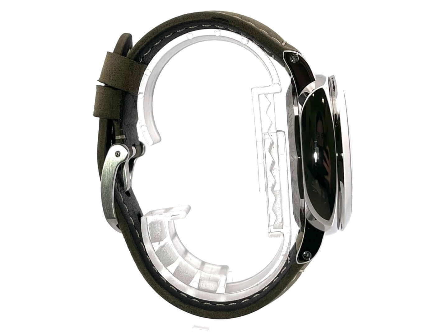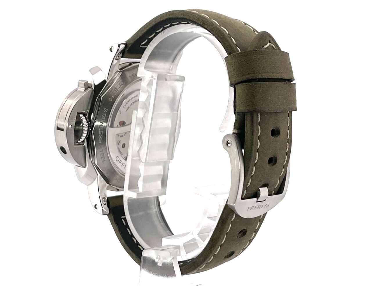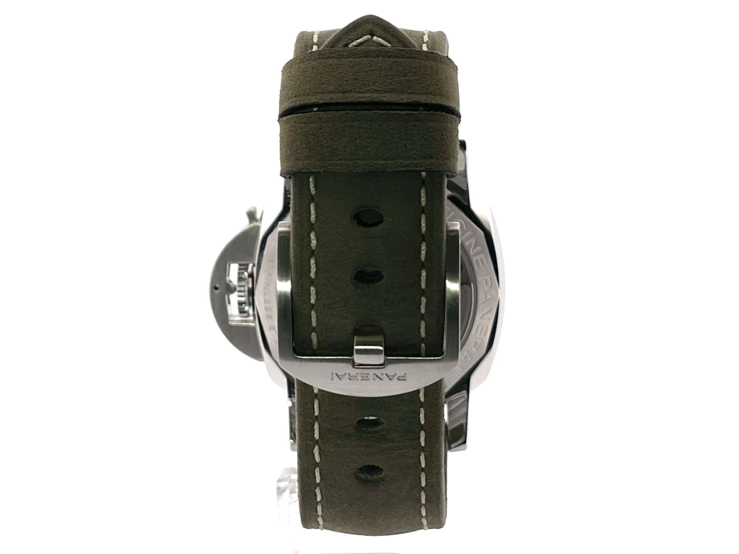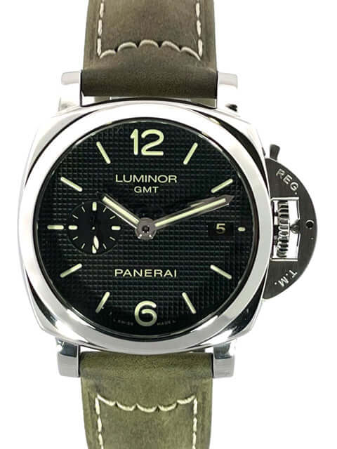 Gehäuse aus Edelstahl poliert, Gehäusedurchmesser 42 mm, Gehäusedurchmesser 42 mm, Edelstahl Lünette poliert, schwarzes Lederarmband mit Dornschließe aus Edelstahl satiniert, schwarzes Zifferblatt mit „Clous de Paris“ Dekor mit fluoreszierenden arabischen Ziffern und Indexen, Datumsanzeige auf 3 Uhr, Sekundenanzeige auf 9 Uhr, Automatikuhrwerk, Kaliber Panerai P.9001 mit 29 Steine, vollständige Panerai Eigenfertigung, Schwingung 28.800 A/h, Gangreserve für ca. 72 Stunden, kleine Sekundenanzeige, Datumsanzeige, zweite Zeitzone, Gangreserveanzeige auf der Gehäuserückseite, Sekundenrückstellung, Kronenschutzbrücke, Saphirglas entspiegelt, Gehäuseboden mit Sichtfenster, Wasserdicht bis zu 10 bar.