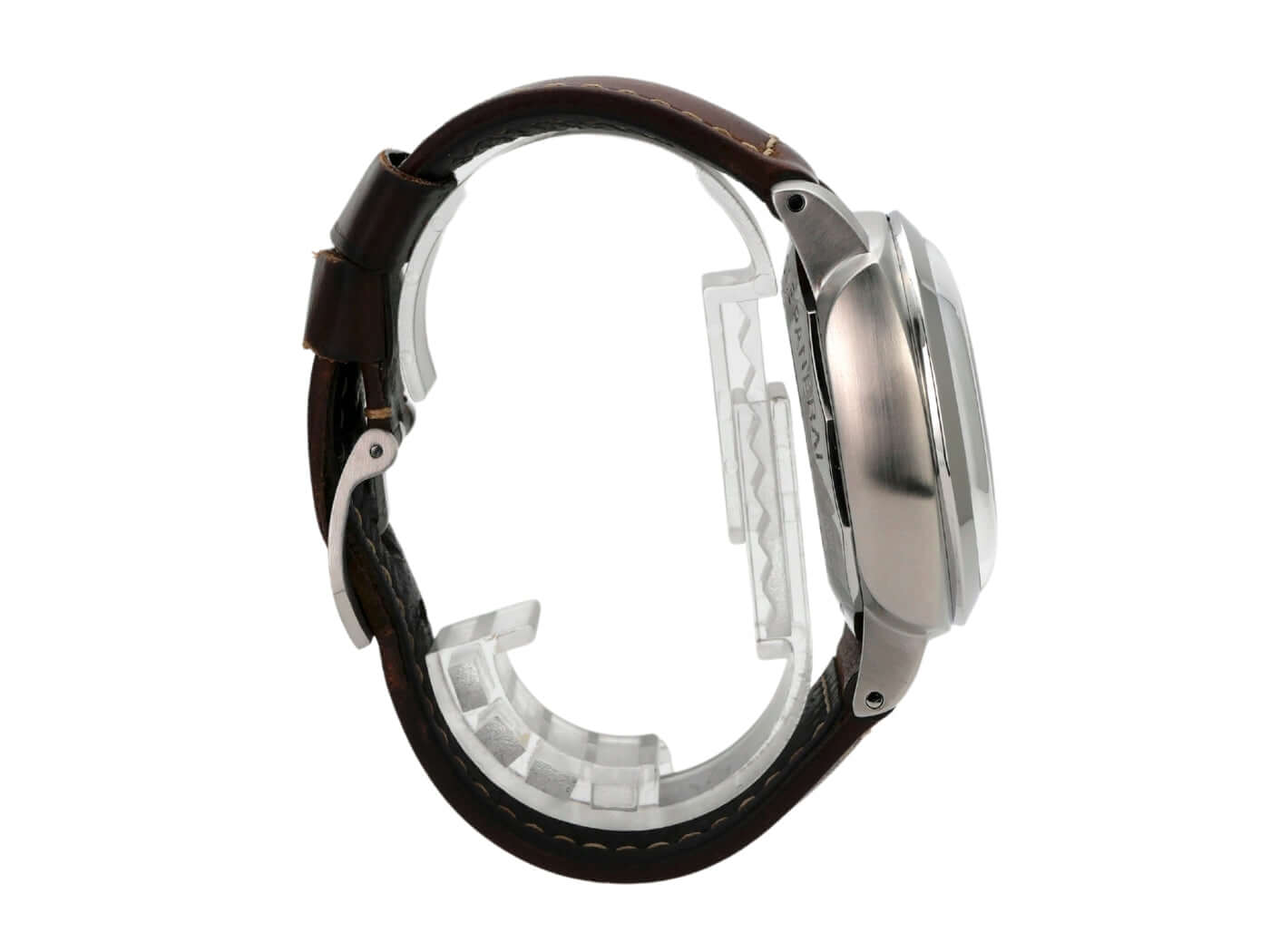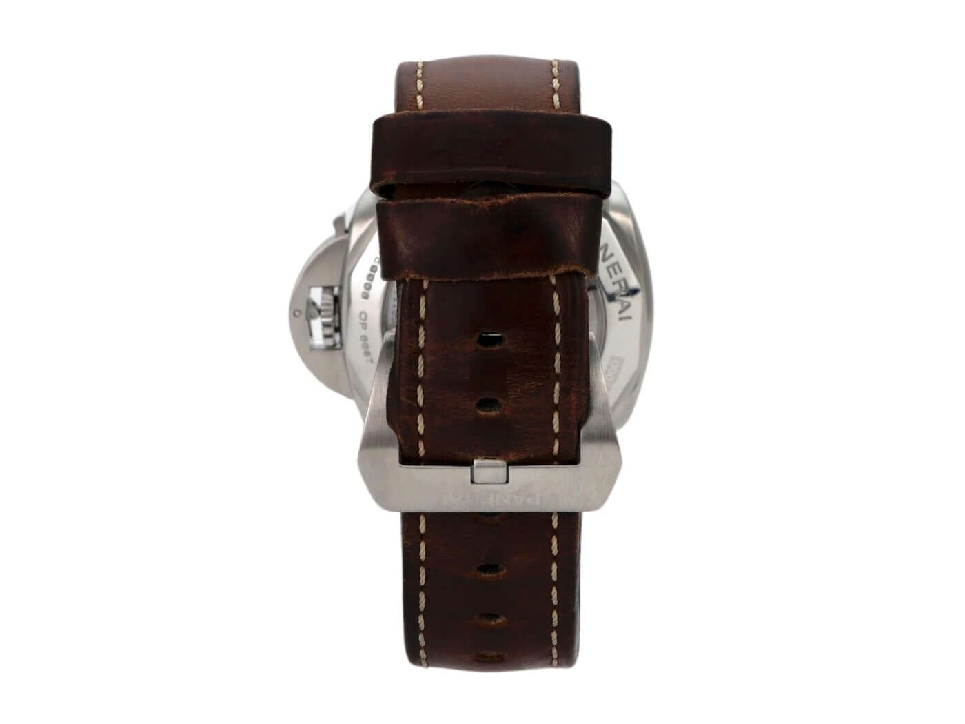 Gehäuse aus Edelstahl satiniert, Gehäusedurchmesser 44 mm, Lünette aus Edelstahl poliert, braunes Lederarmband mit Dornschließe aus satiniertem Edelstahl, schwarzes Zifferblatt mit arabischen Leuchtzahlen und Stundenmarkierungen, Automatikuhrwerk, exklusives Kaliber P.2003, 25 Steine, Schwingung 28.800 A/h., Gangreserve für 10 Tage, Stunden, Minuten, kleine Sekundenanzeige, Datum auf 3 Uhr, lineare Gangreserveanzeige, zweite Zeitzone, 24 Stunden Anzeige, entspiegeltes Saphirglas aus Korund 2 mm stark, wasserdicht bis zu 10 bar.