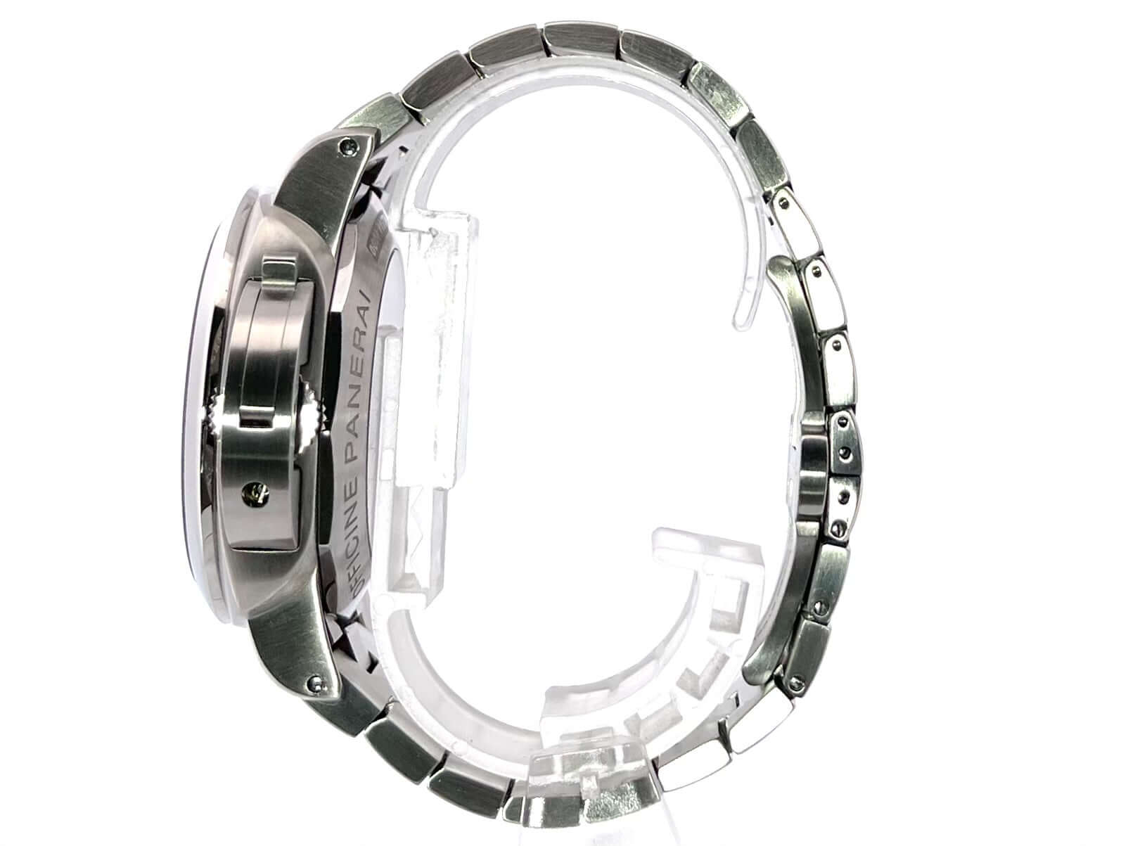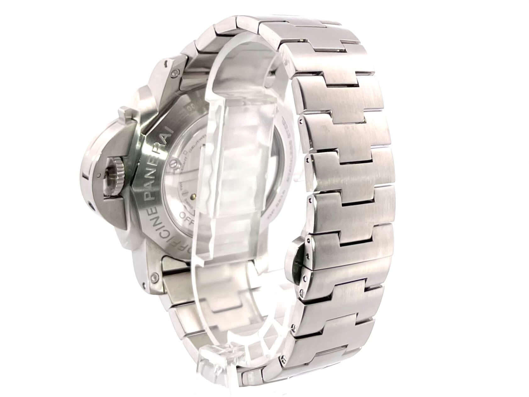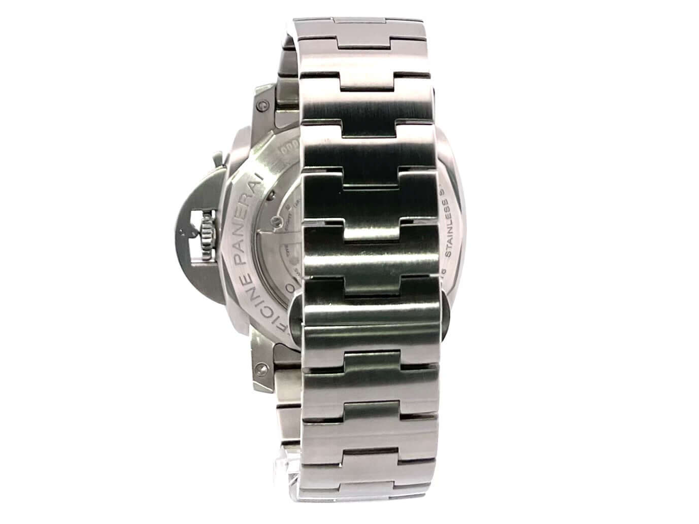 Gehäuse aus Edelstahl satiniert, Gehäusedurchmesser 44 mm, Lünette Edelstahl poliert, Edelstahlband mit Faltschließe, schwarzes Zifferblatt mit fluoreszierenden arabischen Zahlen und Stundenmarkierungen, Automatik, Kaliber Panerai P.9000, exklusive Panerai Eigenanfertigung, 28 Steine, 28.800 A/h, Incabloc-Stoßsicherung, 72 Stunden Gangreserve, entspiegeltes Saphirglas aus Korund 2,6 mm stark, kleine Sekundenanzeige, Datumsanzeige, Kronenschutzbrücke, Edelstahlboden mit transparentem Saphirglas, wasserdicht bis zu 30 bar.