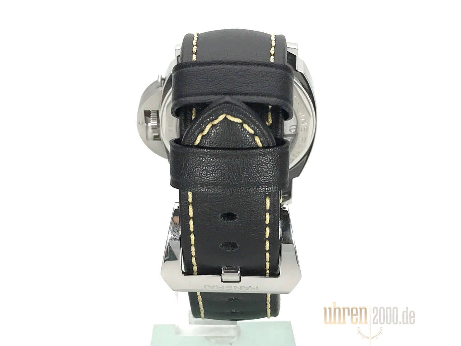 Gehäuse aus Edelstahl poliert, Gehäusedurchmesser 44 mm, Edelstahl Lünette poliert, schwarzes Lederarmband mit Dornschließe aus poliertem Stahl, Zifferblatt Schwarz mit fluoreszierenden arabischen Ziffern und Leuchtindex, Mechanisches Uhrwerk mit Handaufzug, Kaliber Panerai P.5000, vollständige Panerai Eigenfertigung, 21 Steine, 21.600 A/h., Gangreserve 192 Stunden, Kronenschutzbrücke, entspiegeltes Saphirglas aus Korund 2,5 mm stark, Gehäuseboden aus Edelstahl mit Saphirglas, Wasserdicht bis zu 30 bar.