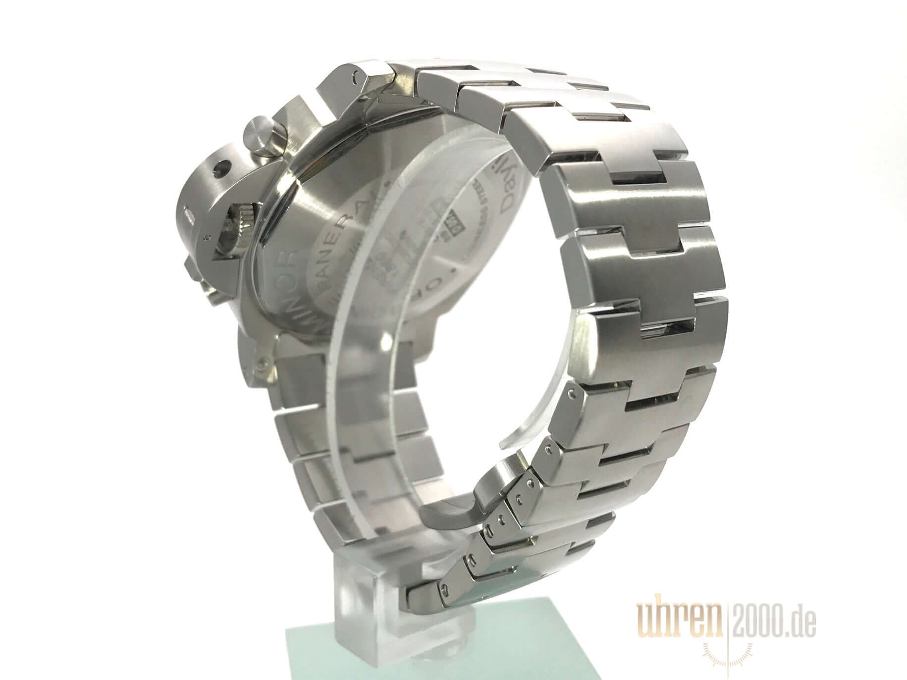 Gehäuse aus Edelstahl poliert, Gehäusedurchmesser 44 mm, Lünette aus Edelstahl poliert, Edelstahlband mit Faltschließe, schwarzes Zifferblatt mit arabischen Leuchtziffern und Stundenmarkierungen, Sekundenazeige auf 9 Uhr, Automatik, Kaliber Panerai OP XII mit 27 Steine, Schwingung 28.800 A/h., Gangreserve 46 Stunden, Chronograph, Datum, entspiegeltes Saphirglas, kleine Sekunde, Edelstahlboden, Wasserdicht bis zu 10 bar.