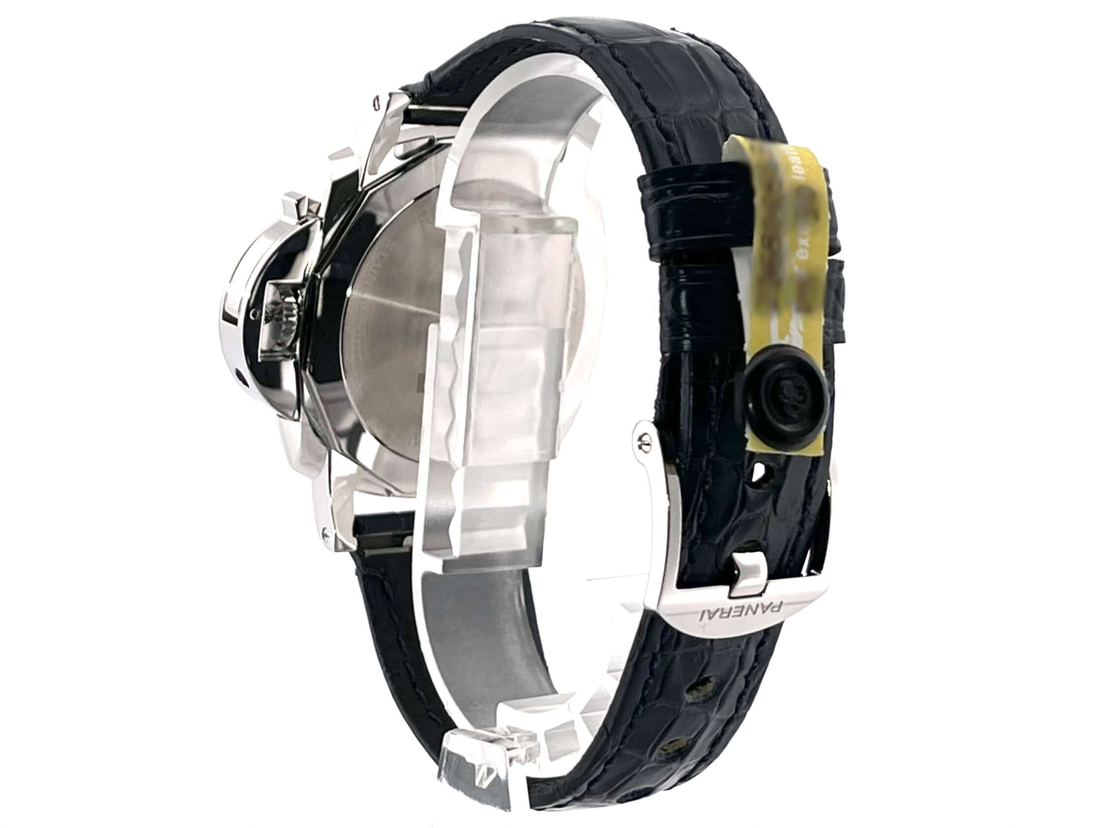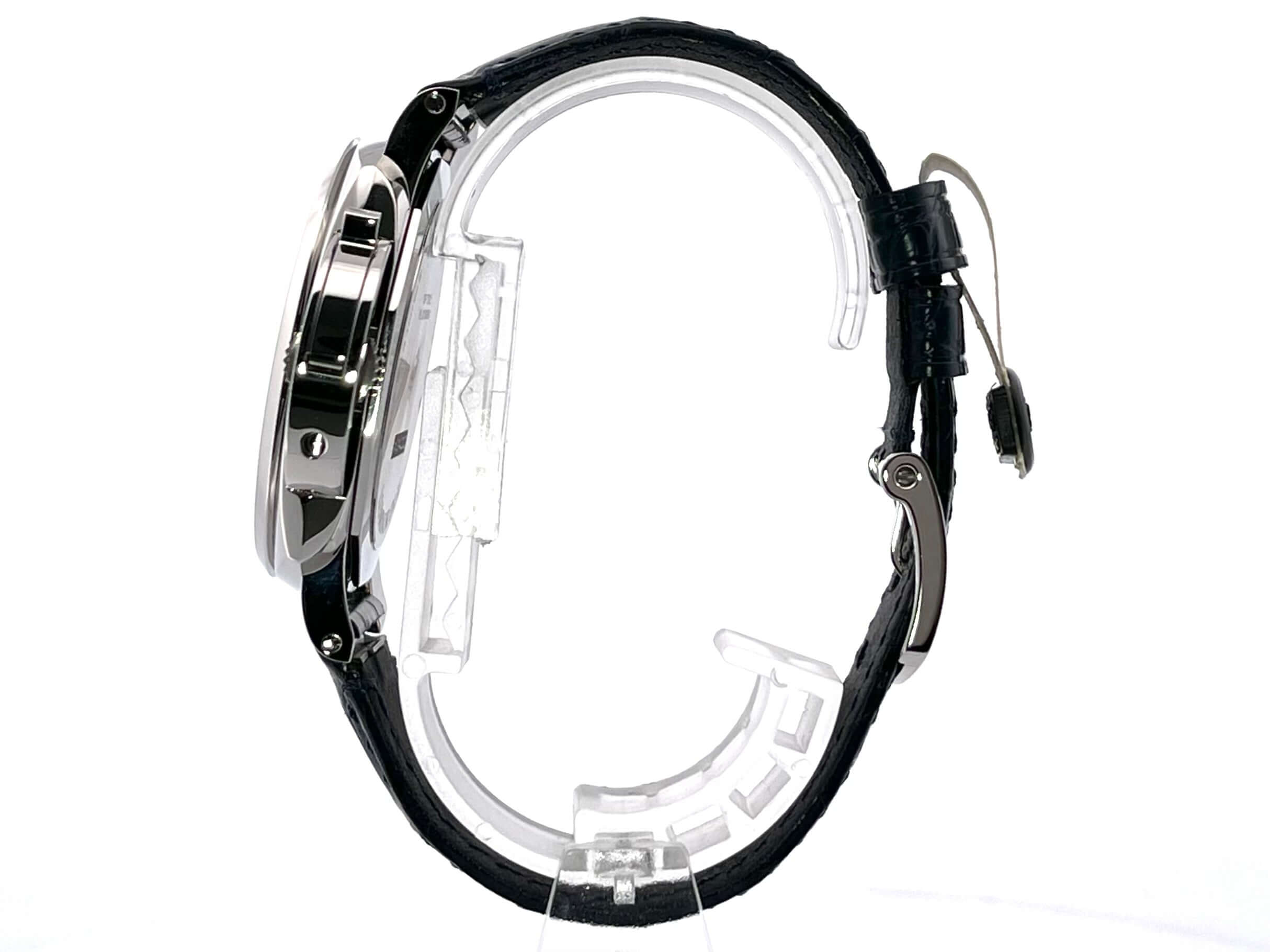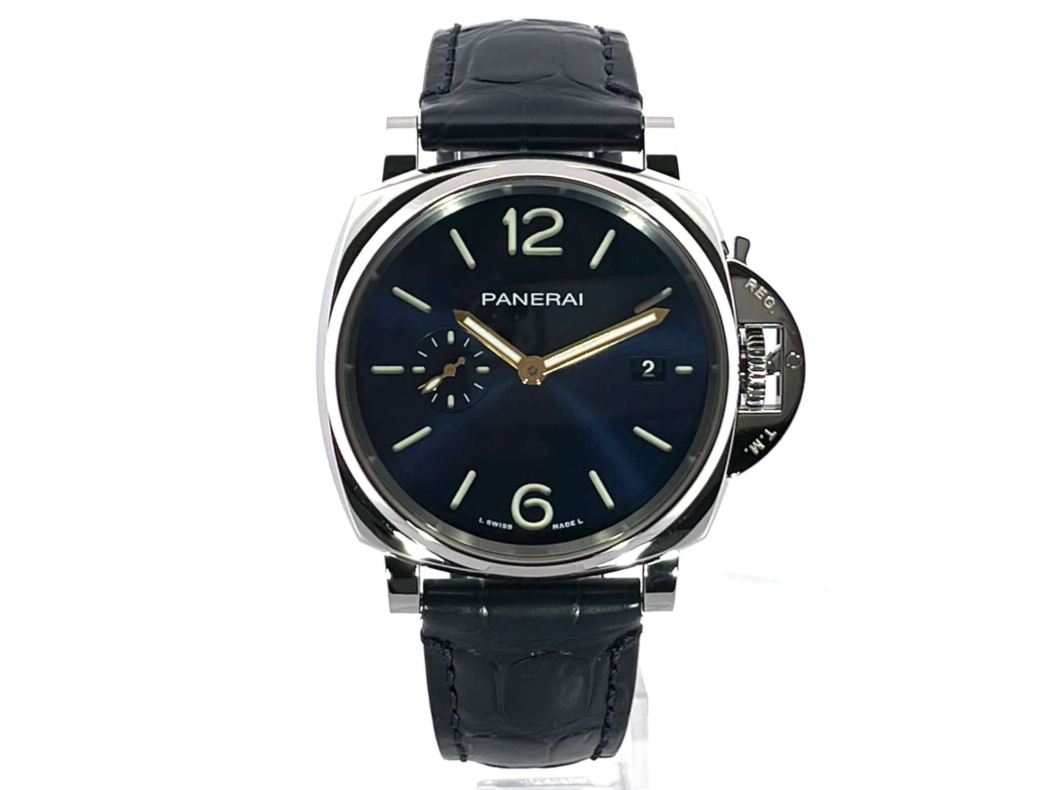 Gehäuse aus Edelstahl poliert, Gehäusedurchmesser 42 mm, Lünette aus Edelstahl poliert, blaues Lederarmband mit Dornschließe, blaues Zifferblatt mit Sonnenschliff, arabischen Ziffern und fluoreszierenden Indizes, Automatikuhrwerk, Kaliber Panerai P.900 mit 23 Steine, Schwingung 28.800 A/h., Gangreserve 72 Stunden, Datum, kleine Sekunde, entspiegeltes Saphirglas, Edelstahlboden, Wasserdicht bis zu 3 bar.