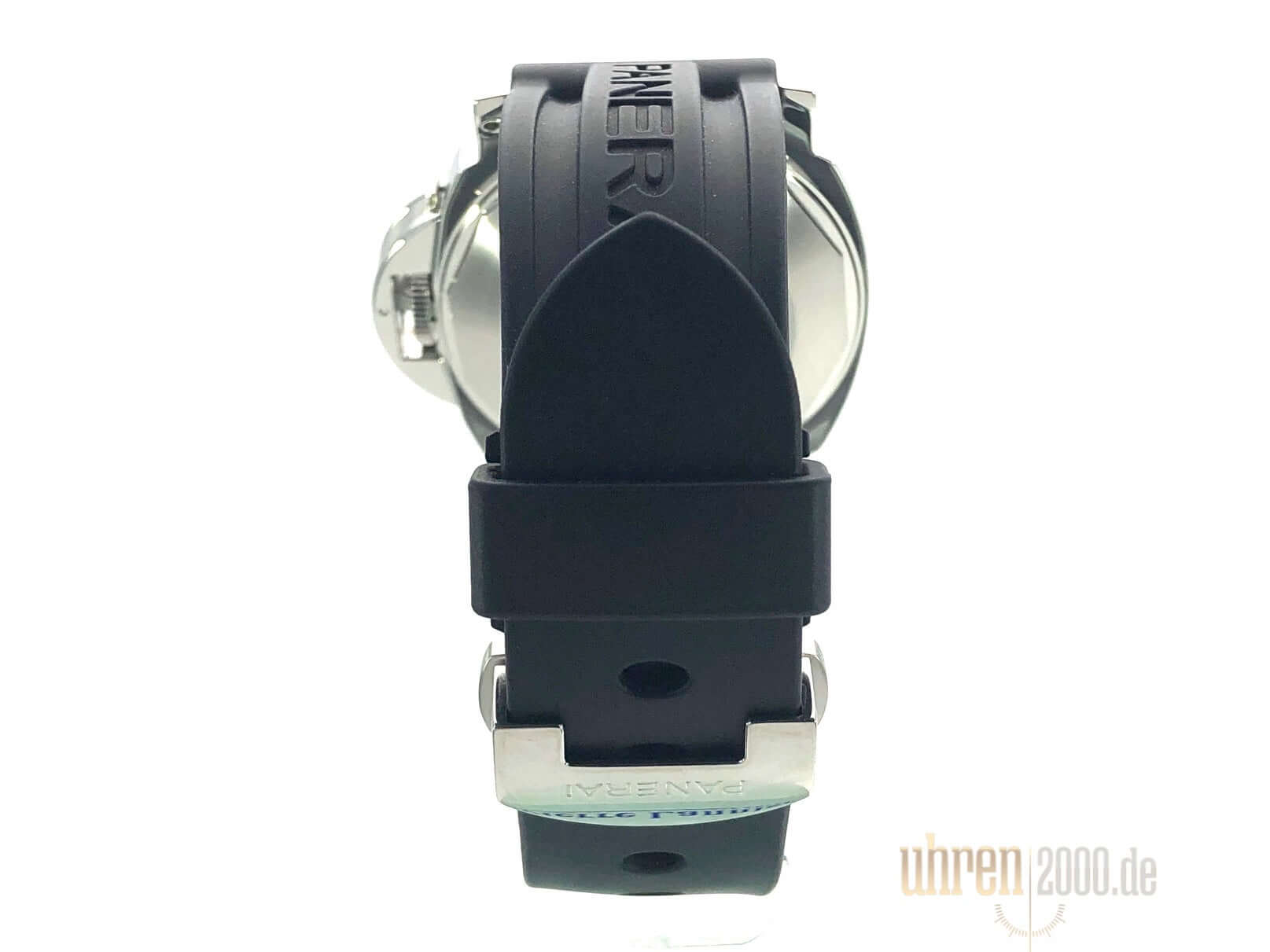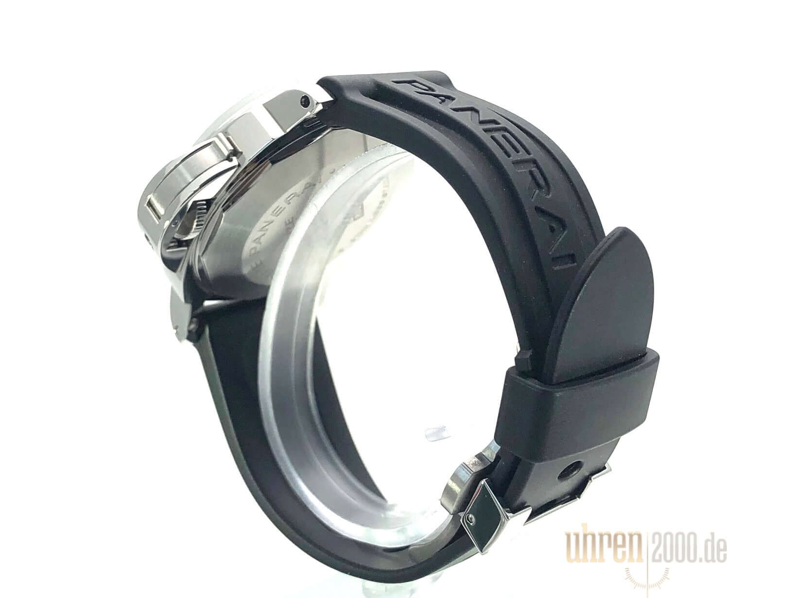 Gehäuse aus Edelstahl satiniert, Gehäusedurchmesser 44 mm, Edelstahl Lünette poliert, schwarzes Kautschukband mit Faltschließe, schwarzes Zifferblatt mit fluoreszierenden arabischen Ziffern und Stundenmarkierungen, Automatikwerk, Kaliber Panerai OP VIII, 21 Steine, Schwingung 28.800 A/h, 42 Stunden Gangreserve, Chronometer, kleine Sekundenanzeige, Datumsanzeige, zweite Zeitzone, entspiegelte Lupe auf der 3-Uhr-Position, Kronenschutzbrücke, Saphirglas aus Korund, Wasserdicht bis zu 30 bar.