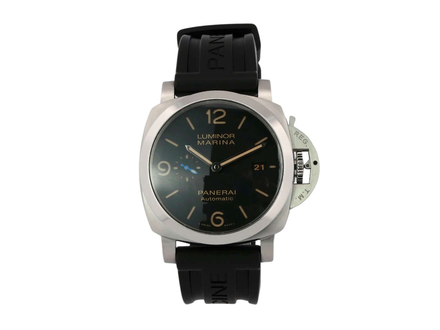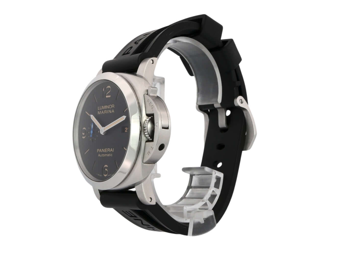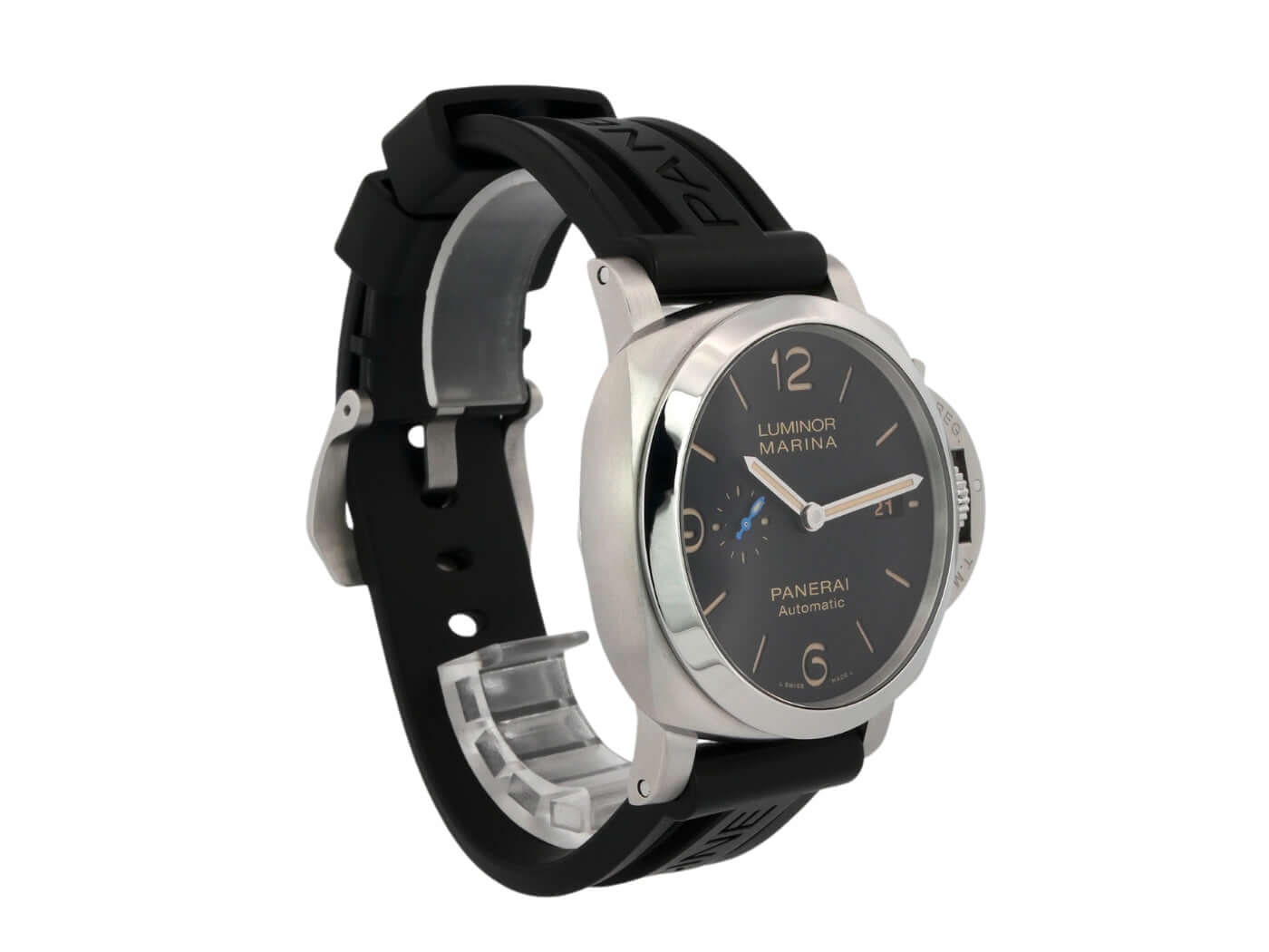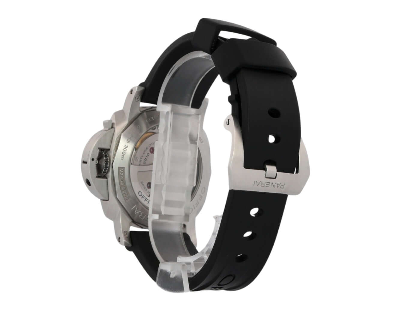 Gehäuse aus Edelstahl satiniert, Gehäusedurchmesser 44 mm, Edelstahl Lünette poliert, schwarzes Kautschukband mit Dornschließe aus satiniertem Edelstahl, schwarzes Zifferblatt mit fluoreszierenden arabischen Zahlen und Stundenmarkierungen, Automatikuhrwerk, Kaliber Panerai P.9010, vollständige Panerai Eigenanfertigung, 31 Steine, 28.800 A/h, Glucydur-Unruh, Incabloc-Stoßsicherung, 72 Stunden Gangreserve, entspiegeltes Saphirglas aus Korund, kleine Sekunde, Datum, Kronenschutzbrücke, Edelstahlboden, Wasserdicht bis zu 30 bar.