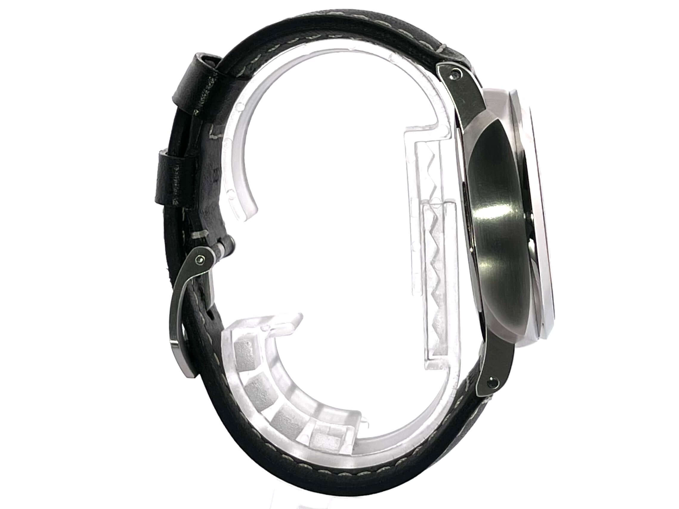 Gehäuse aus Edelstahl poliert und satiniert, Gehäusedurchmesser 42 mm, Lünette aus Edelstahl poliert, schwarzes Lederarmband mit Dornschließe, extra Kautschukband, schwarzes Zifferblatt mit arabischen Leuchtziffern und Leuchtindizes, Leuchtzeiger, Automatik, Panerai Eigenfertigung, Kaliber Panerai P.9010, 31 Steine, Schwingung 28.800 A/h, 72 Stunden Gangreserve, Datumsanzeige mit Schnellverstellung, Krone mit Panerai - Sicherheitsverschluß und Schutzbügel, entspiegeltes Saphirglas aus Korund, Gehäuseboden aus Edelstahl, Wasserdicht bis zu 10 bar.