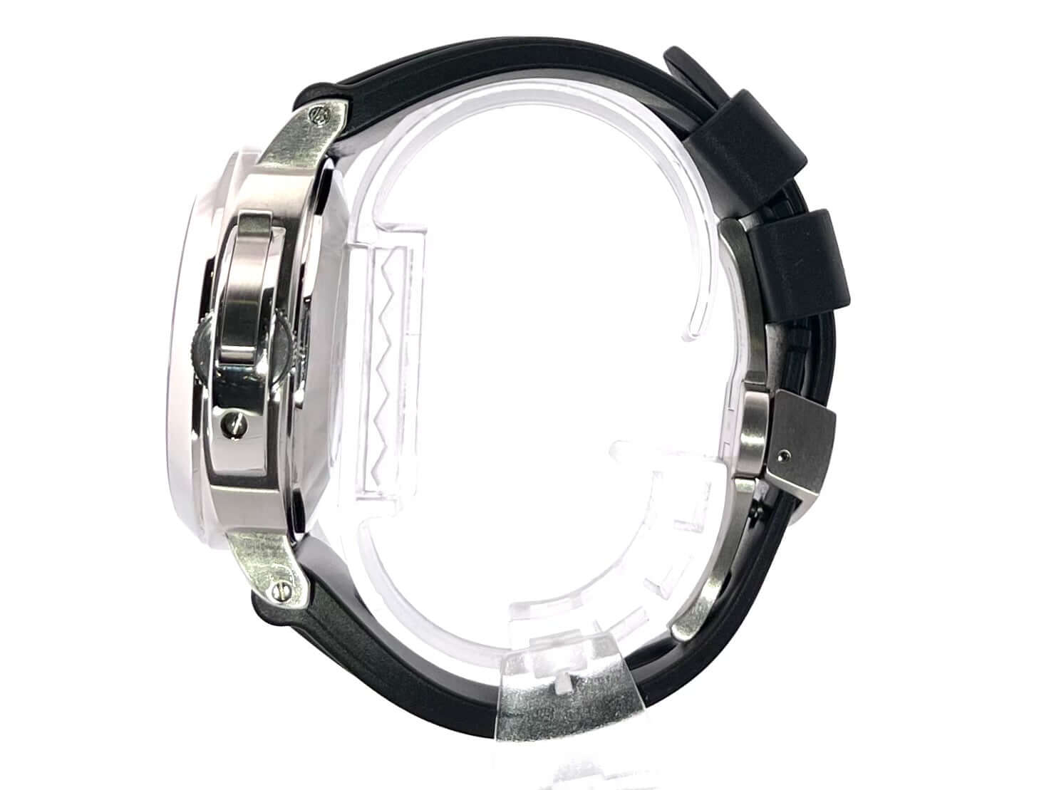 Gehäuse aus Edelstahl satiniert, Gehäusedurchmesser 40 mm, Edelstahl Lünette poliert, schwarzes Kautschukband mit Faltschließe aus satiniertem Edelstahl, schwarzes Zifferblatt mit arabischen Leuchtziffern und Stundenmarkierungen, Sekundenzeiger auf 9 Uhr, Mechanisches Automatikuhrwerk, Kaliber Panerai OP III mit 21 Steine, Schwingung 28.800 A/h., Gangreserve 42 Stunden, Datum mit Lupe, Chronometer, transparenter Saphirglasboden, entspiegeltes Saphirglas, Wasserdicht bis zu 30 bar.