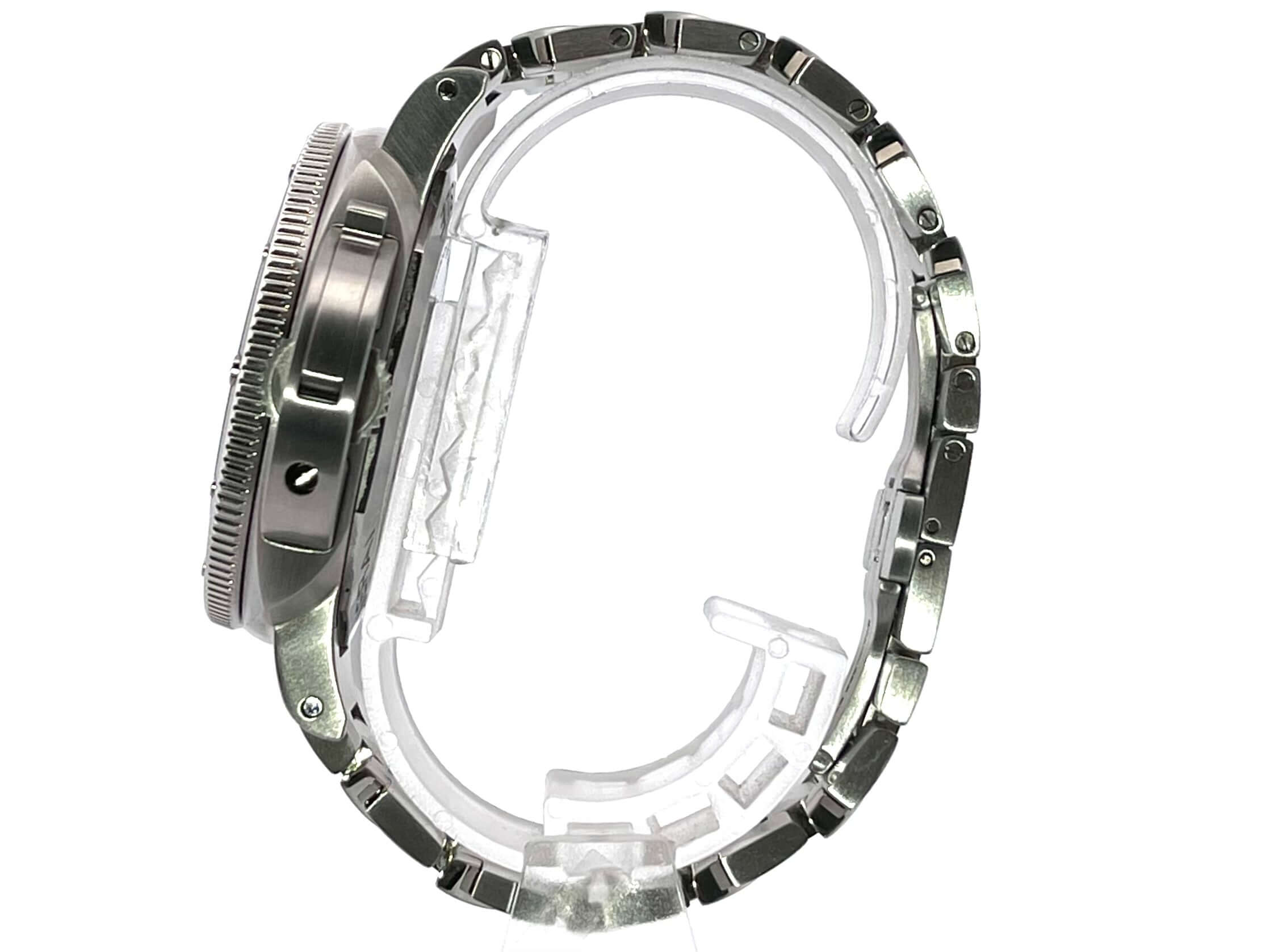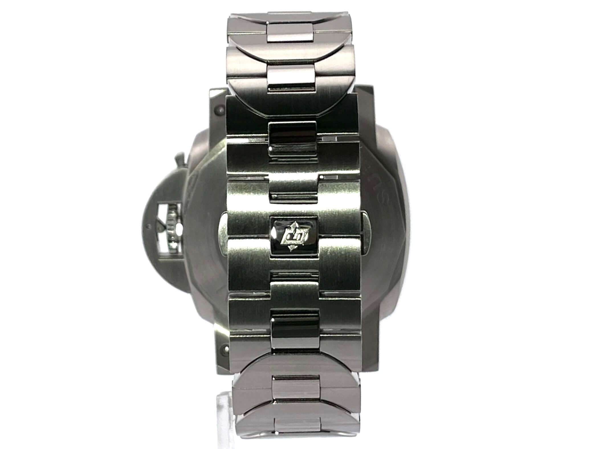 Gehäuse aus satiniertem Edelstahl, Gehäusedurchmesser 42 mm, Lünette aus satiniertem Edelstahl mit blauer Keramikeinlage, einseitig drehbar, Edelstahlband mit Faltschließe, blaues Zifferblatt mit aufgesetzten fluoreszierenden Indizes, Datumsanzeige auf 3 Uhr, Sekundenanzeige auf 9 Uhr, Automatikwerk, Kaliber Panerai P.900, Schwingung 28.800 A/h., Gangreserve 72 Stunden, Datumsanzeige, kleine Sekunde, Saphirglas, Gehäuseboden verschraubt aus Edelstahl, Kronenschutzbrücke, Wasserdicht bis zu 30 bar.