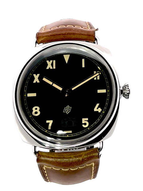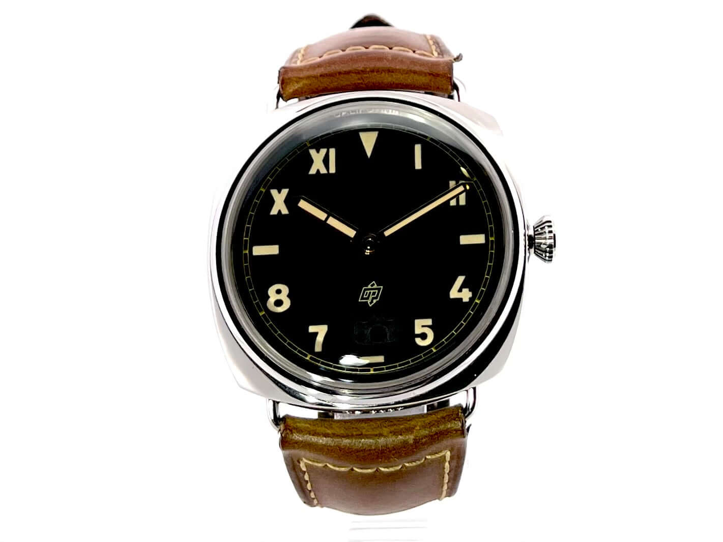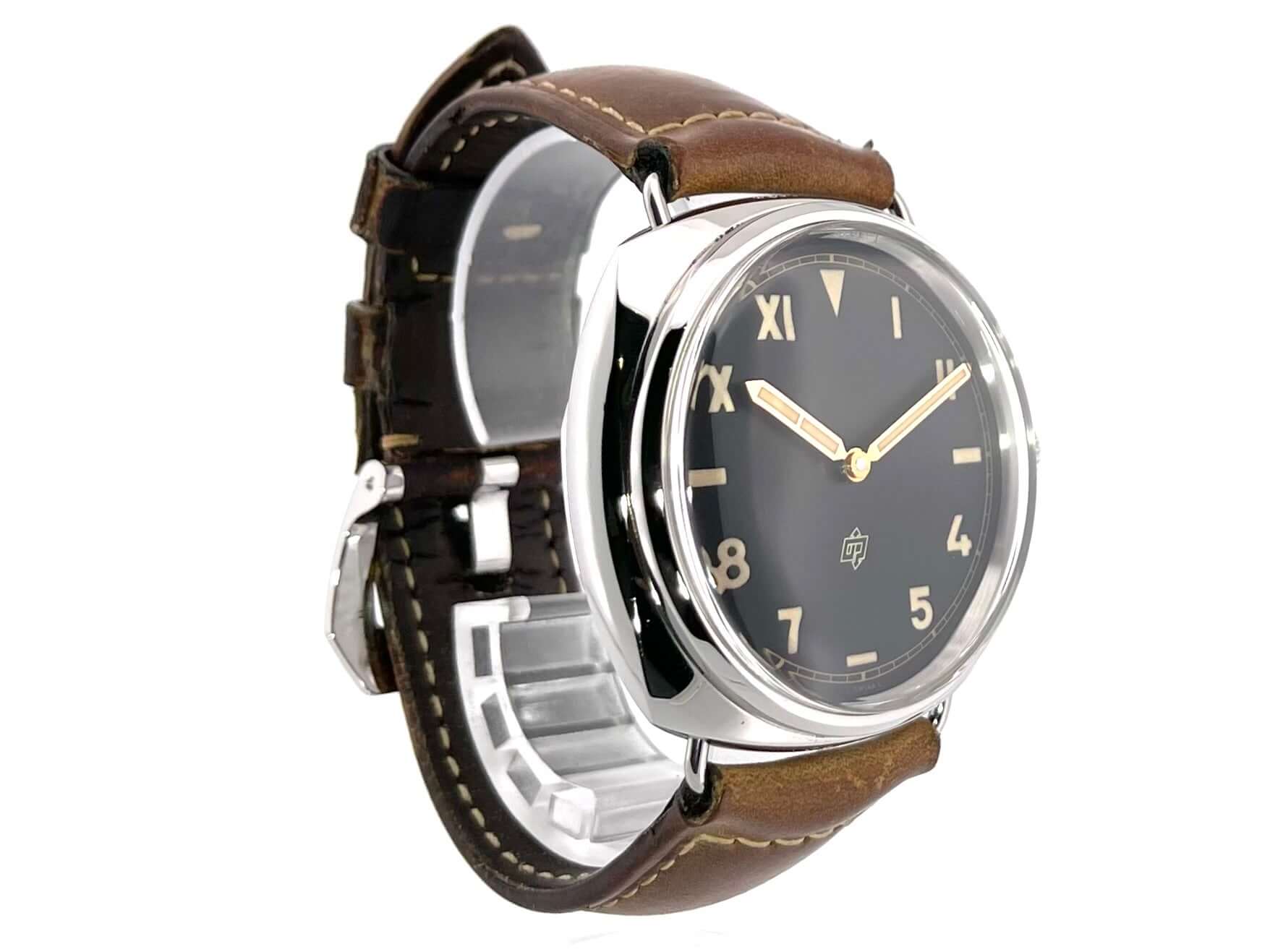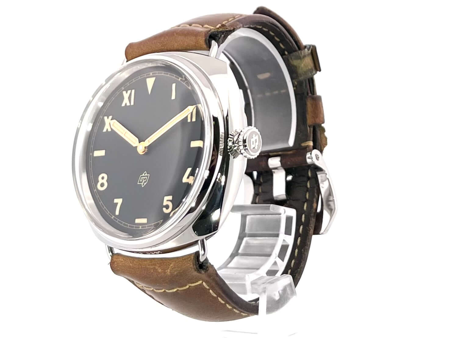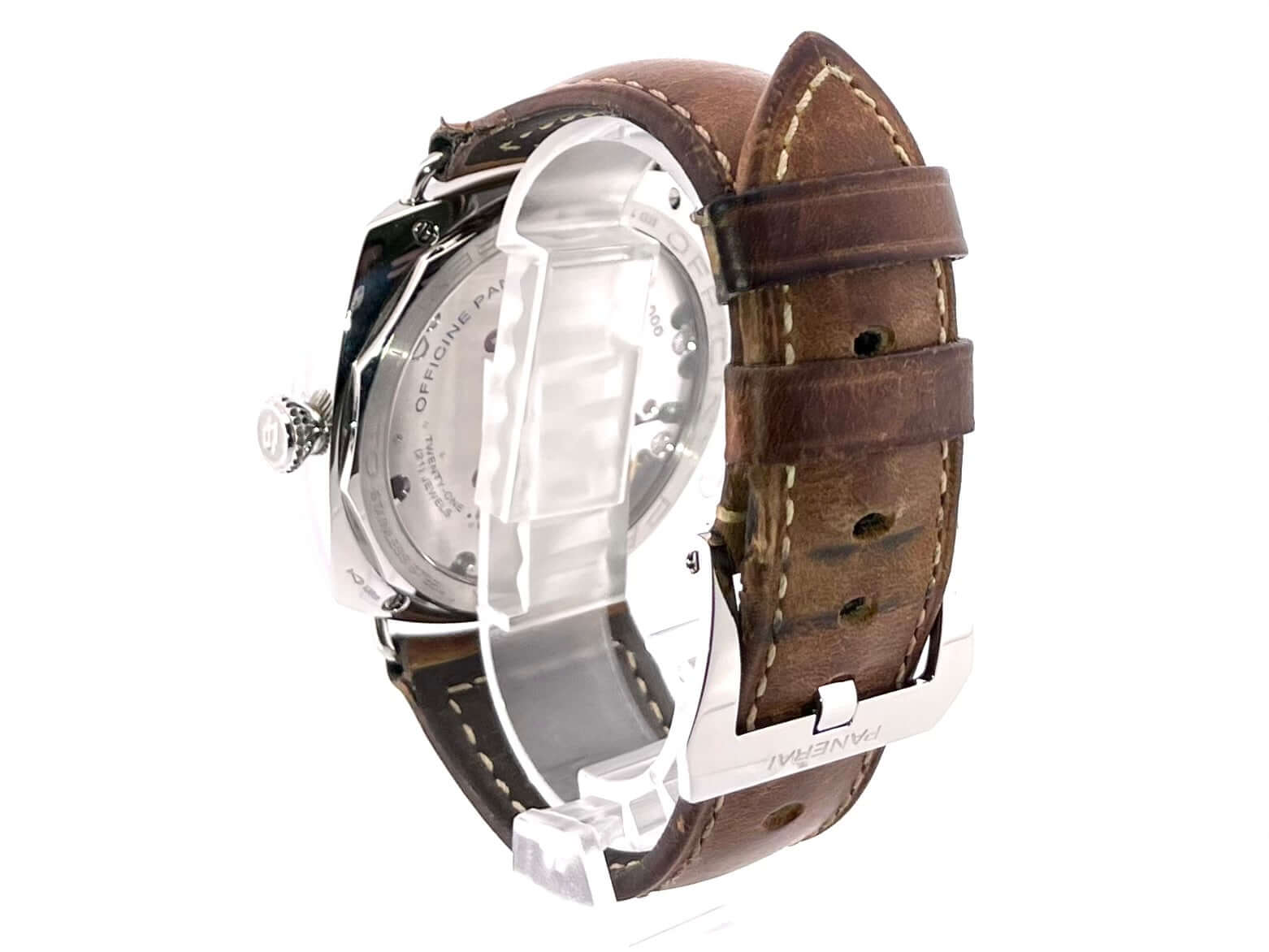 Gehäuse aus Edelstahl poliert, Gehäusedurchmesser 47 mm, Edelstahl Lünette poliert, Lederarmband mit Schriftzug und Faltschließe aus poliertem Edelstahl, schwarzes Zifferblatt mit fluoreszierenden arabischen, römischen Ziffern und Indexen, Handaufzugswerk, Kaliber Panerai P.3000, vollständige Panerai Eigenfertigung, 21 Steine, Glucydur-Unruh, Schwingung 21.600 A/h, Incabloc-Stoßsicherung, Gangreserve 72 Stunden, entspiegeltes Saphirglas aus Korund, Gehäuseboden aus Edelstahl mit transparentem Saphirglas, Wasserdicht bis zu 10 bar.