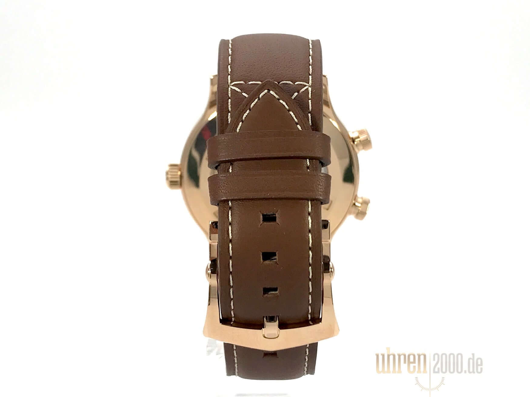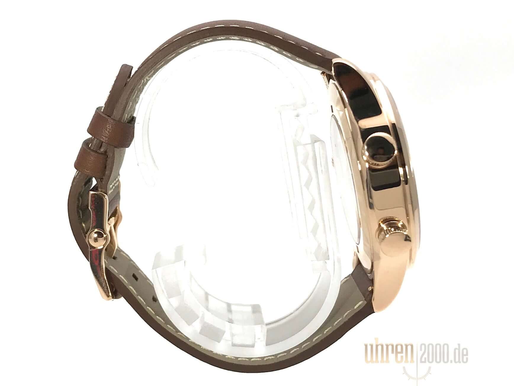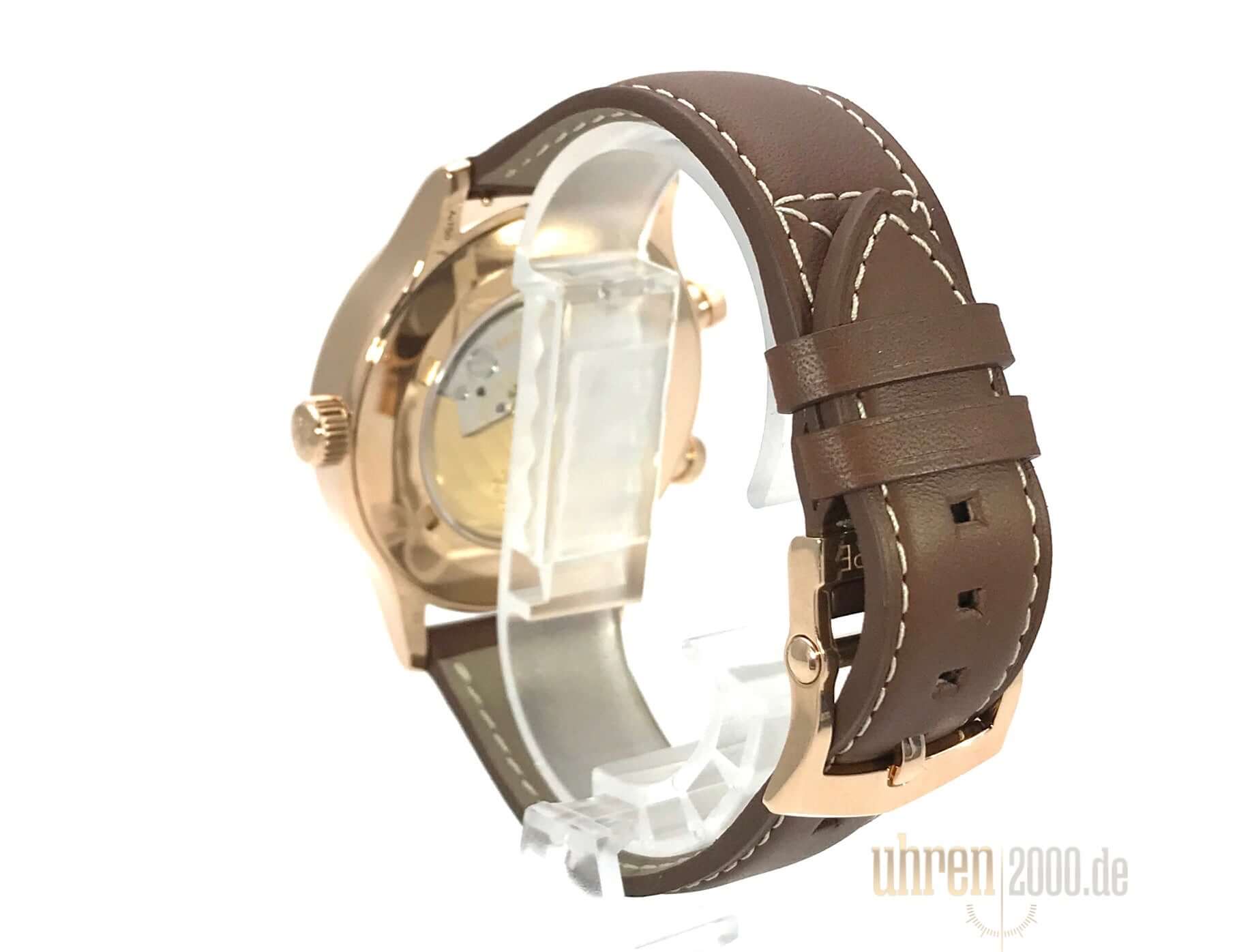 Gehäuse aus 18 kt Roségold poliert, Gehäusedurchmesser 42 mm, Gehäusehöhe 10,78 mm, Lünette 18 kt Roségold poliert, braunes Lederarmband mit 18 kt Roségold Dornschließe, braunes Zifferblatt mit arabischen Ziffern, Leuchtzeiger, Mechanisches Werk mit automatischem Aufzug, Manufakturkaliber 324 S C FUS mit 29 Steine, Schwingung 28.800 A/h, Gangreserve für ca. 45 Stunden, Datumsanzeige, GMT, Gehäuseboden 18 kt Roségold mit Saphirglasfenster, Wasserdicht bis zu 6 bar.