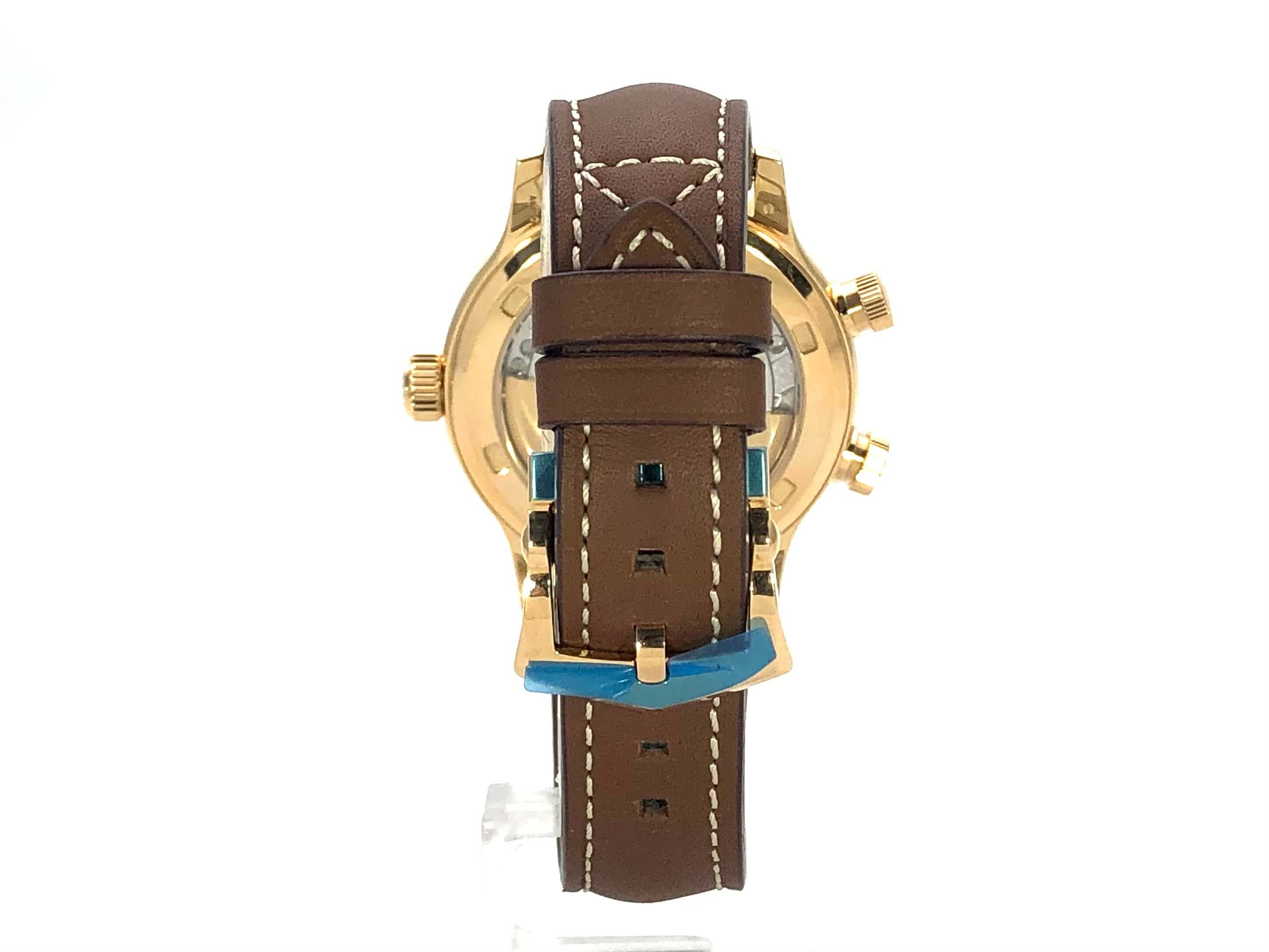 Gehäuse aus 18 kt Roségold poliert, Gehäusedurchmesser 37,5 mm, Gehäusehöhe 10,78 mm, Lünette 18 kt Roségold poliert, braunes Lederarmband mit 18 kt Roségold Dornschließe, braunes Zifferblatt mit arabischen Ziffern, Leuchtzeiger, Mechanisches Werk mit automatischem Aufzug, Manufakturkaliber 324 S C FUS mit 29 Steine, Schwingung 28.800 A/h, Gangreserve für ca. 45 Stunden, Datumsanzeige, GMT, Gehäuseboden 18 kt Roségold mit Saphirglasfenster, Wasserdicht bis zu 6 bar.