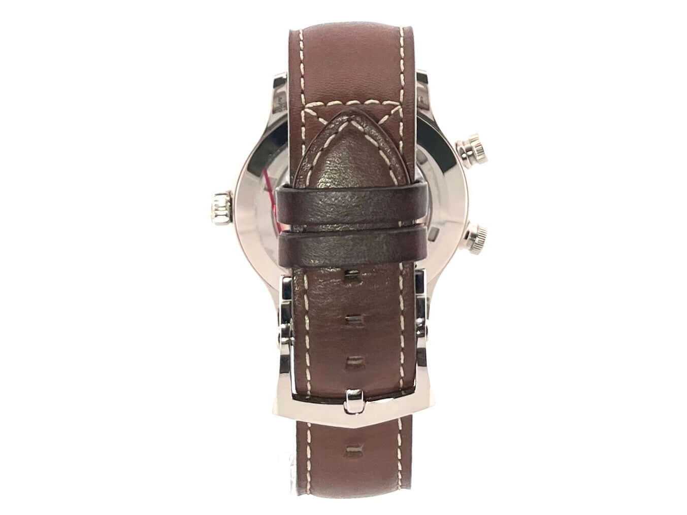 Gehäuse aus 18 kt Weißgold poliert, Gehäusedurchmesser 42 mm, Gehäusehöhe 10,78 mm, Lünette 18 kt Weißgold poliert, braunes Lederarmband mit 18 kt Weißgold Dornschließe, blaues Zifferblatt mit arabischen Ziffern, Leuchtzeiger, Mechanisches Werk mit automatischem Aufzug, Manufakturkaliber 324 S C FUS mit 29 Steine, Schwingung 28.800 A/h, Gangreserve für ca. 45 Stunden, Datumsanzeige, GMT, Gehäuseboden aus 18 kt Weißgold mit Saphirglasfenster, Wasserdicht bis zu 6 bar.