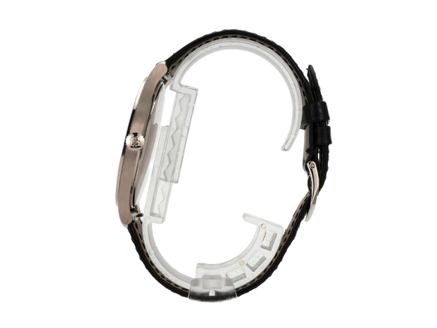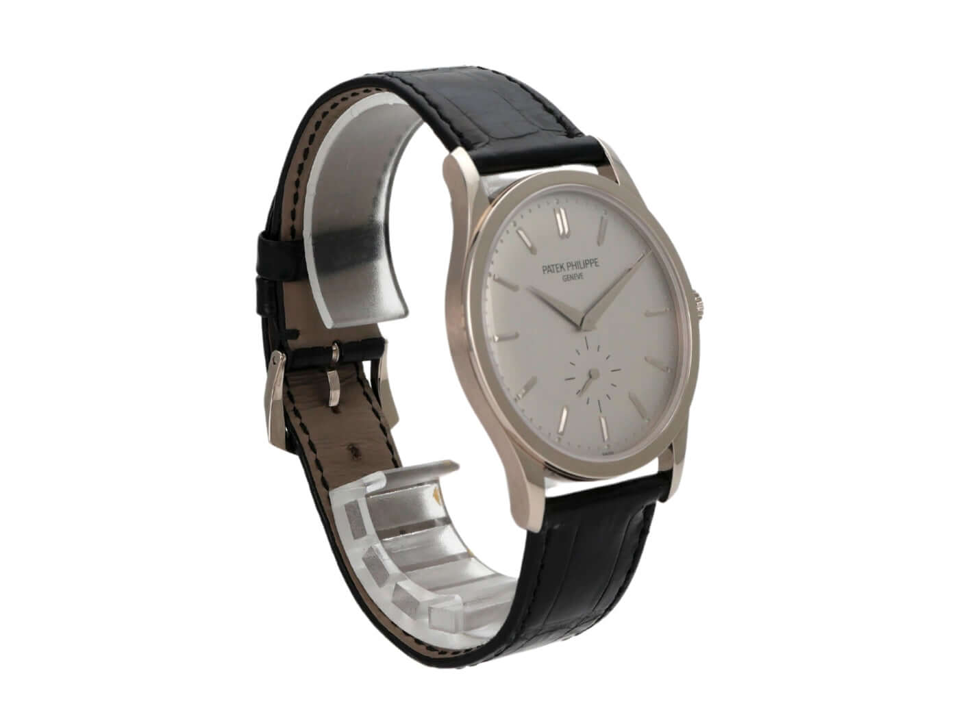 Gehäuse aus 18 kt Weißgold, Gehäusedurchmesser 37 mm, Gehäusehöhe 7,68 mm, Lünette aus Weißgold poliert, schwarzes Alligatorlederband mit Weißgold Dornschließe, silbernes Zifferblatt, Handaufzug, Patek Philippe Manufakturkaliber 215PS, 44 Stunden Gangreserve, kleine Sekunde, Saphirglas, 18 kt Weißgold Boden, wasserdicht bis zu 3 bar.