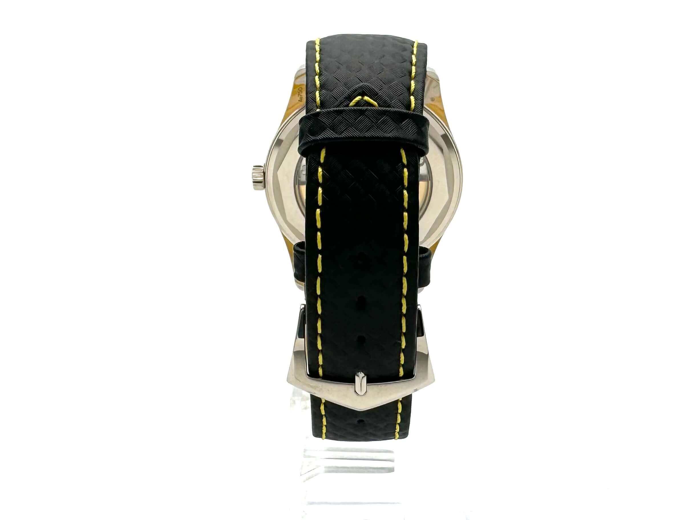 Gehäuse aus 18 kt Weißgold poliert, Gehäusedurchmesser 40 mm, 18 kt Weißgold Lünette poliert, schwarzes Lederarmband mit 18 kt Weißgold Dornschließe, schwarzes Zifferblatt mit arabischen Ziffern, mechanisches Werk mit automatischem Aufzug, Manufakturkaliber Kaliber 26‑330 S C mit 30 Steine, Schwingung 28.800 A/h, Gangreserve für ca. 45 Stunden, Datumsanzeige, Zentralsekunde, Gehäuseboden aus 18 kt Weißgold mit Saphirglasfenster, wasserdicht bis zu 3 bar.