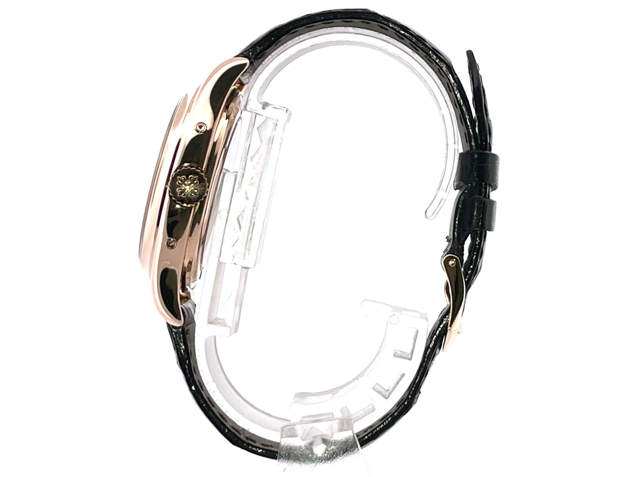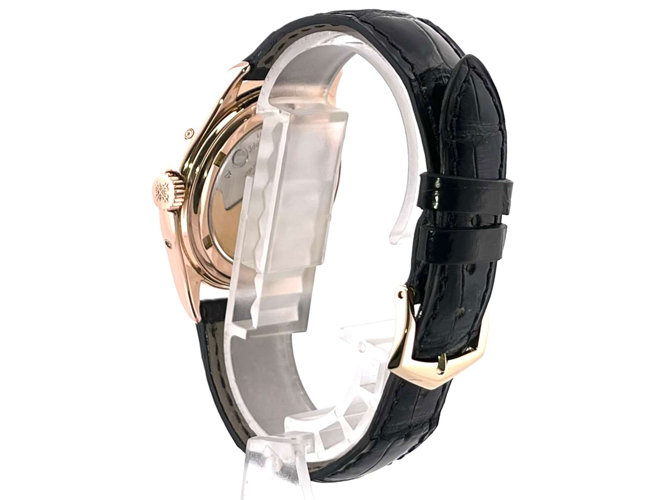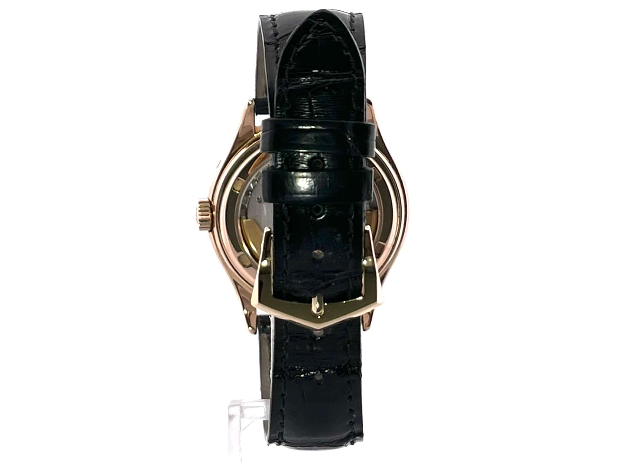 Gehäuse aus 18 kt Roségold poliert und satiniert, Gehäusedurchmesser 37 mm, 18 kt Roségold Lünette poliert, schwarzes Lederband mit Dornschließe, silberfarbenes Zifferblatt, Automatikaufzug, Patek Philippe Manufakturkaliber 315 S QA , Gangreserve für ca. 40 Stunden, Datum, Jahreskalender, Zentralsekunde, Gehäuseboden aus Roségold mit Saphirglasfenster, Wasserdicht bis zu 3 bar.