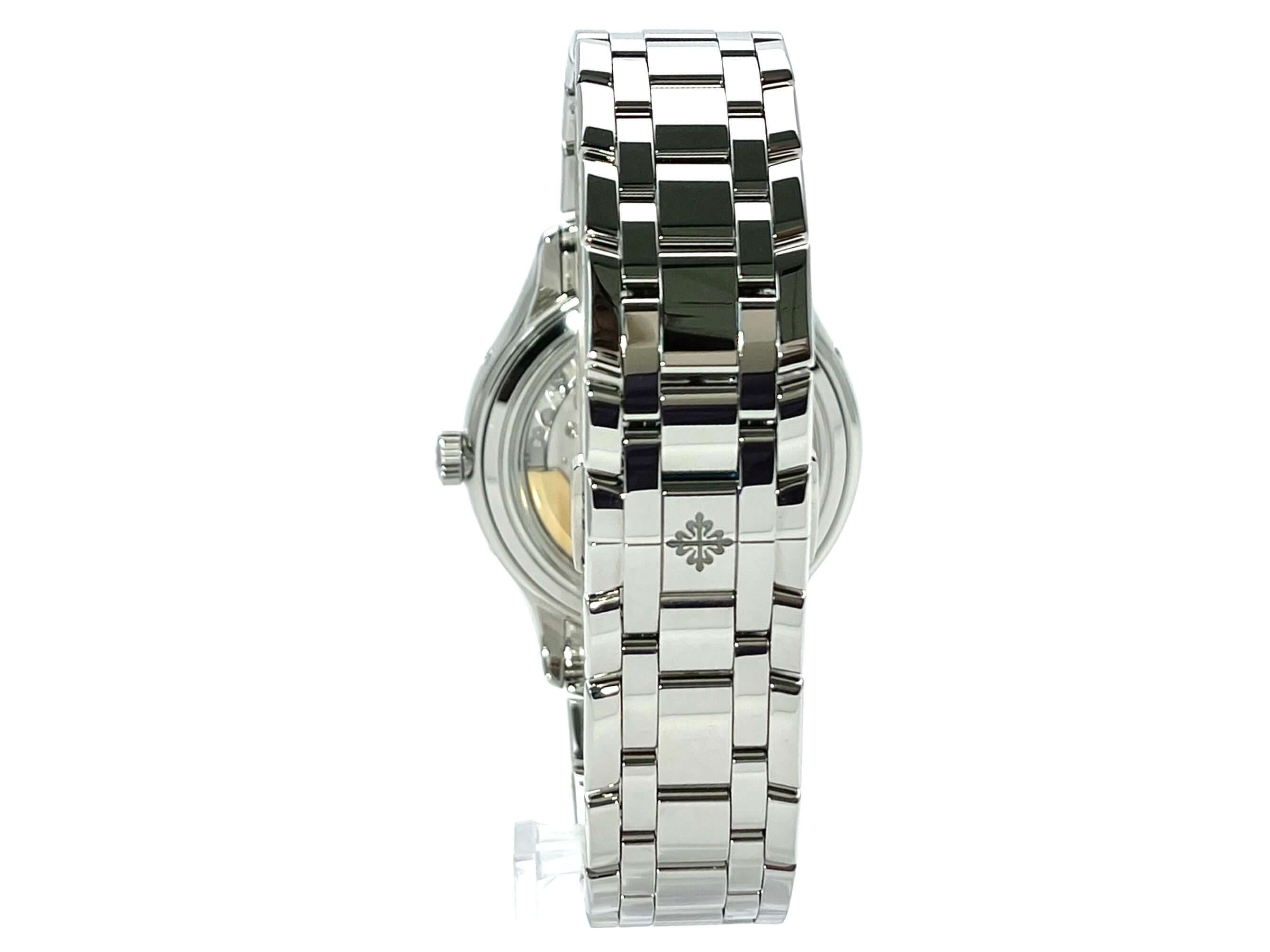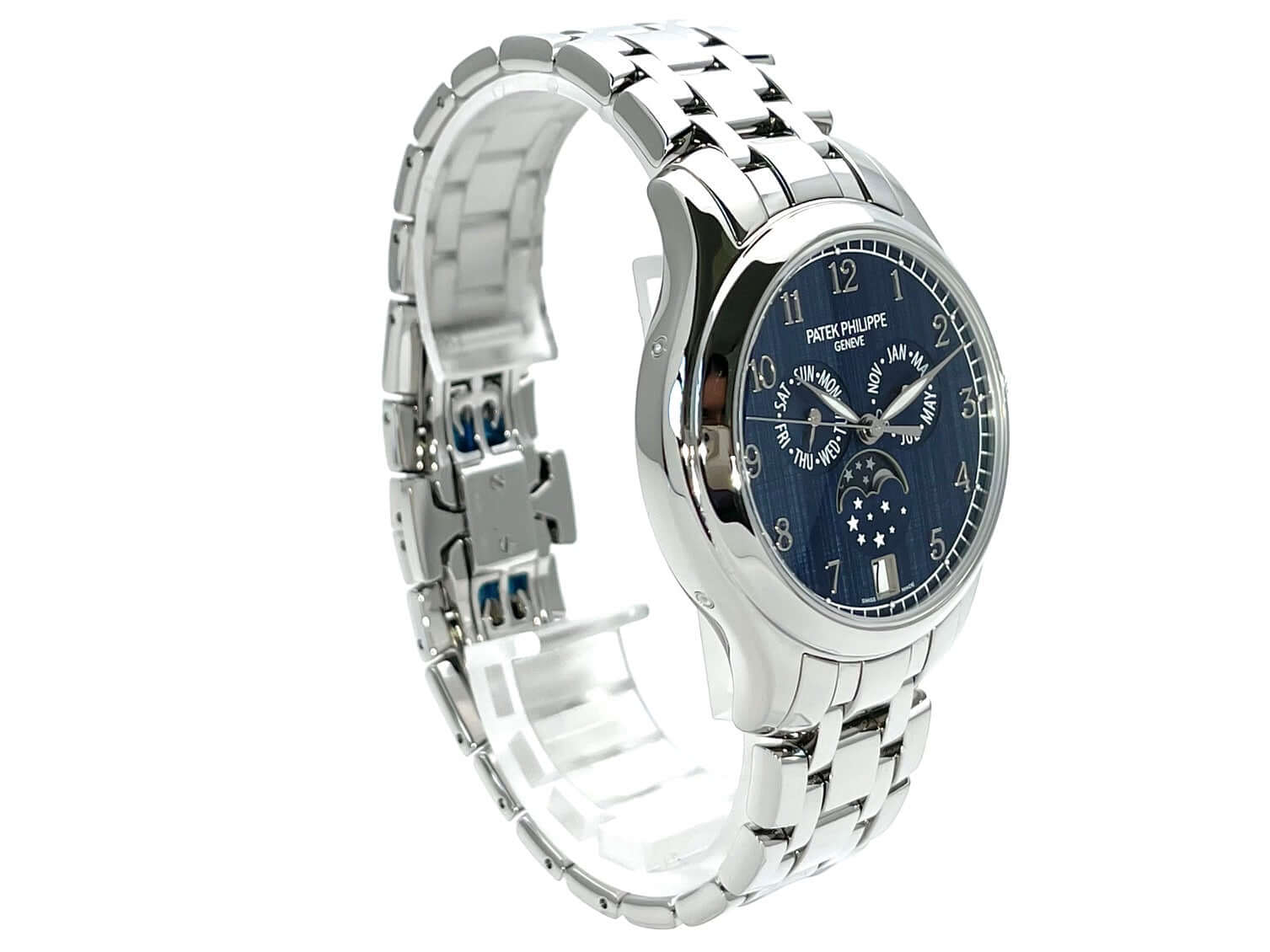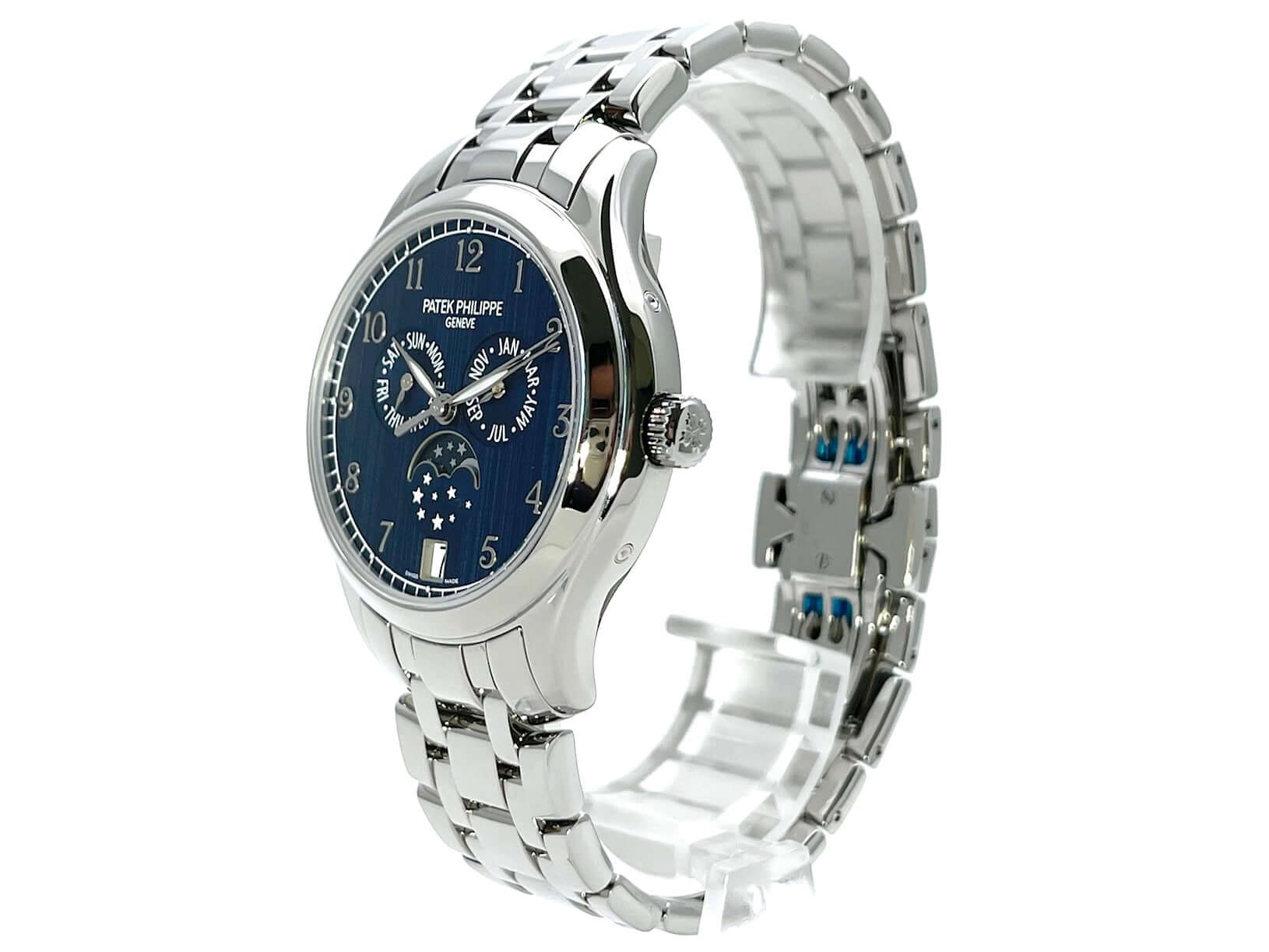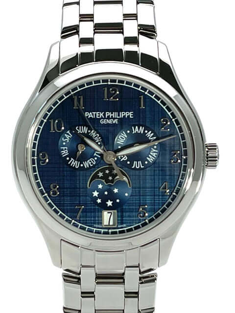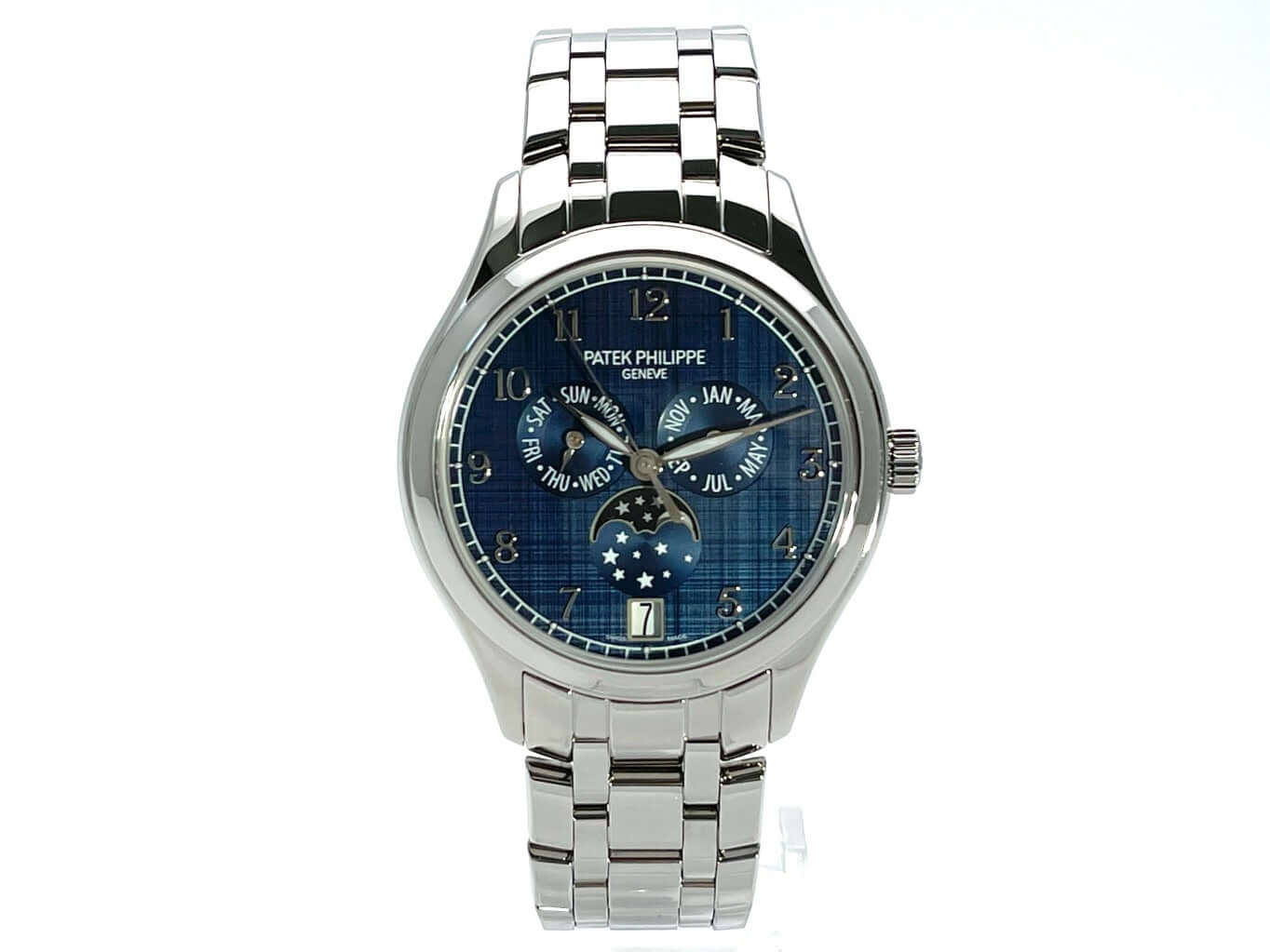 Gehäuse aus Edelstahl poliert und satiniert, Gehäusedurchmesser 38 mm, Edelstahl Lünette poliert, Edelstahlband mit Faltschließe, blaues Zifferblatt, Automatikaufzug, Patek Philippe Manufakturkaliber 324 S QA LU mit 34 Steine, Schwingung 28.800 A/h, Gangreserve für max. 45 Stunden, Datum, Jahreskalender, Mondphase, Zentralsekunde, Gehäuseboden aus Edelstahl mit Saphirglasfenster, Wasserdicht bis zu 3 bar.