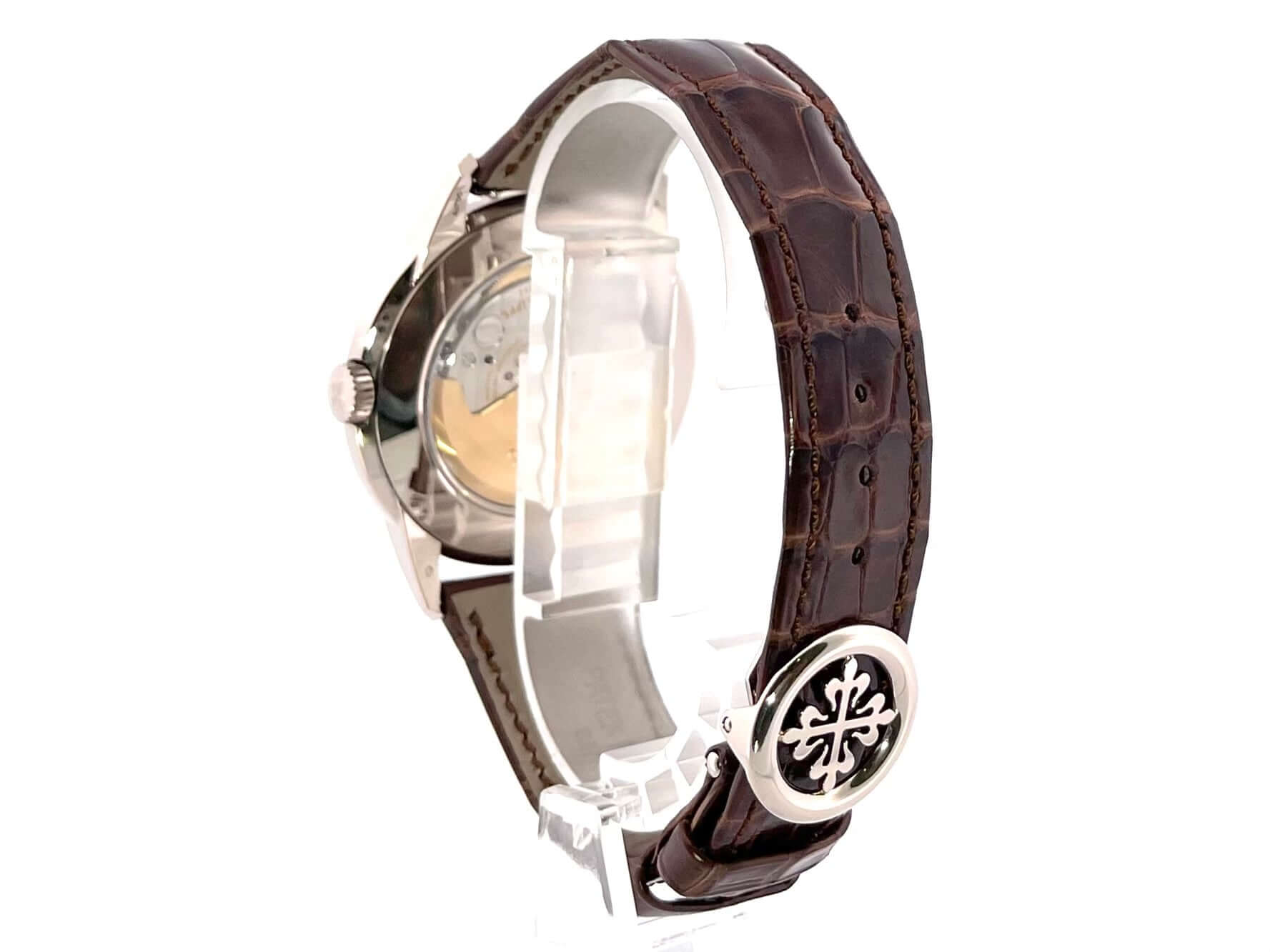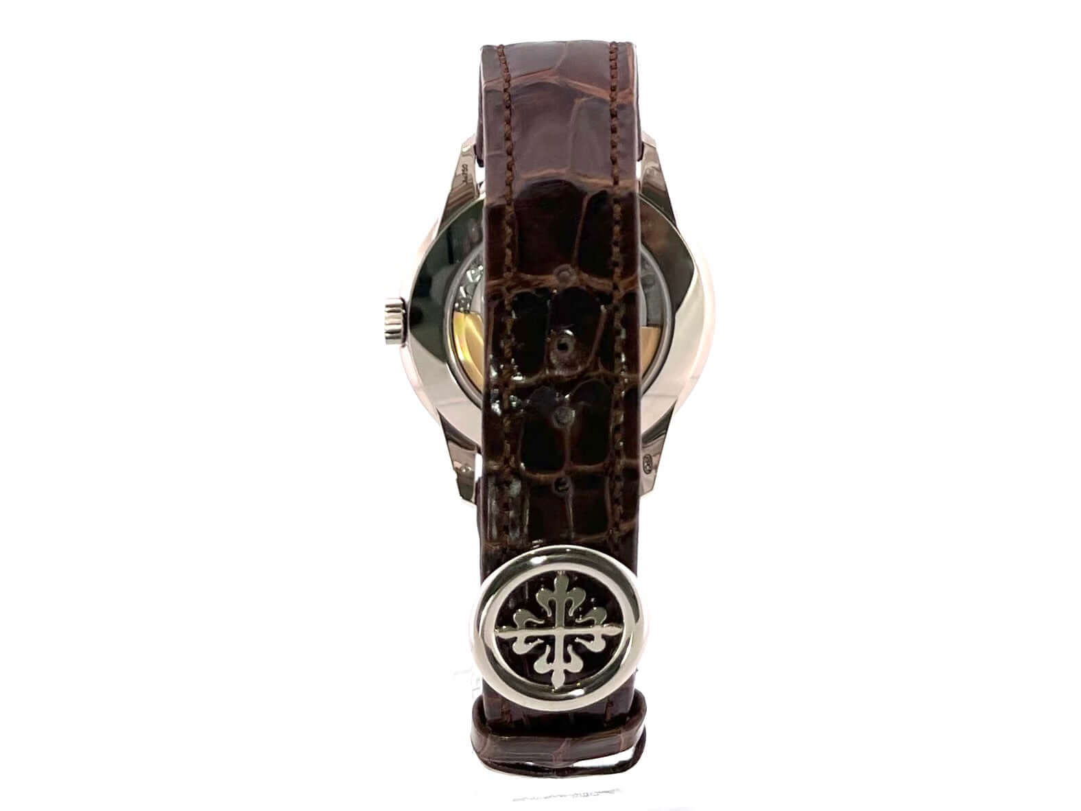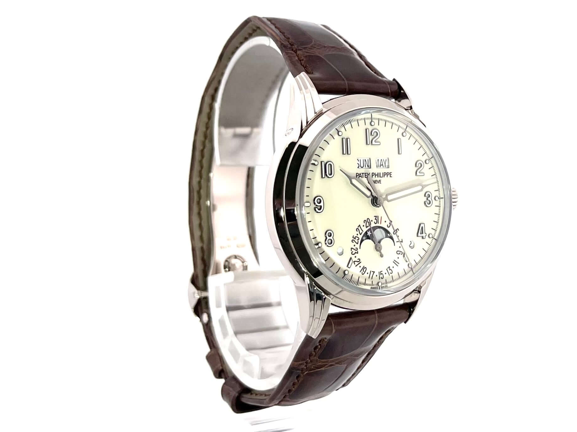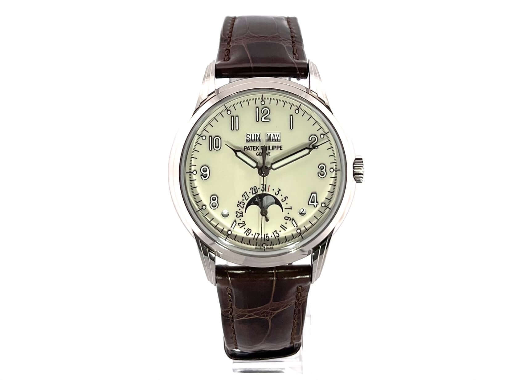 Gehäuse 18 kt Weißgold poliert, Gehäusedurchmesser 40 mm, Gehäusehöhe 11,13 mm, 18 kt Weißgold Lünette poliert, braunes Alligatorleder Armband mit 18 kt Weißgold Faltschließe, cremefarbenes Zifferblatt mit arabischen Ziffern, Mechanisches Werk mit automatischem Aufzug, Manufakturkaliber 324 S Q mit 29 Steine, Schwingung 28.800 A/h, Gangreserve für ca. 45 Stunden, Ewiger Kalender, Datum, Tagesanzeige, Monat, Gehäuseboden 18 kt Weißgold mit Saphirglasfenster, Wasserdicht bis zu 3 bar.