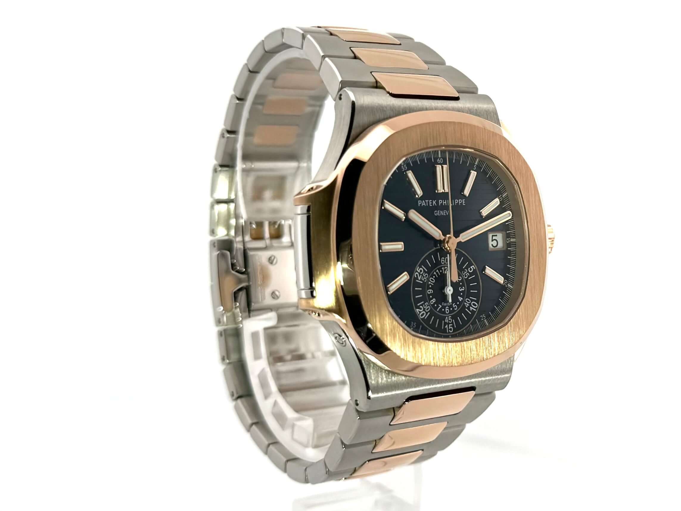 Gehäuse Edelstahl / 18 kt Rosegold poliert und satiniert, Gehäusedurchmesser 40,5 mm, Lünette aus 18 kt Rosegold poliert und satiniert, Edelstahl / 18 kt Rosegold Armband mit Faltschließe, blaues Zifferblatt mit aufgesetzten Goldindizes mit Leuchtbeschichtung, Automatikaufzug, Manufakturkaliber Patek Philippe CH 28-520 C mit 35 Steine, Schwingung 28.800 A/h, Gangreserve für ca. 55 Stunden, Kombinierter 60 Minuten und 12 Stundenzähler, Edelstahl Gehäuseboden mit Saphirglasfenster, Wasserdicht bis zu 12 bar.