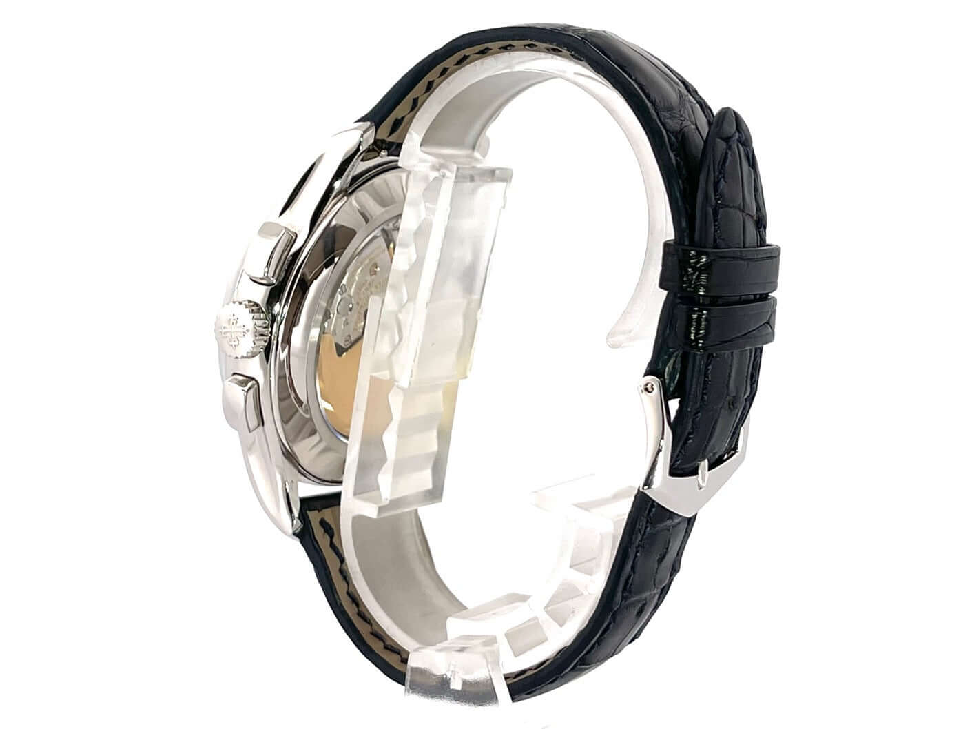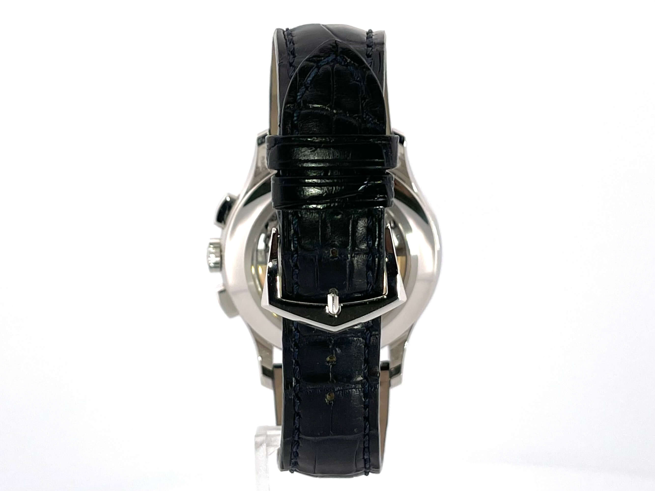 Gehäuse aus Platin poliert, Gehäusedurchmesser 42 mm, Platin Lünette poliert, blaues Alligatorleder mit Dornschließe, blaues Zifferblatt mit Sonnenschliff, Automatikaufzug, Manufakturkaliber CH 28-520 QA 24H mit 37 Steine, Schwingung 28.800 A/h, Gangreserve für max. 45 Stunden, Jahreskalender, Chronograph, Datum, Monatsanzeige, Wochentag, Gehäuseboden aus Platin mit Saphirglasfenster, Wasserdicht bis zu 3 bar.