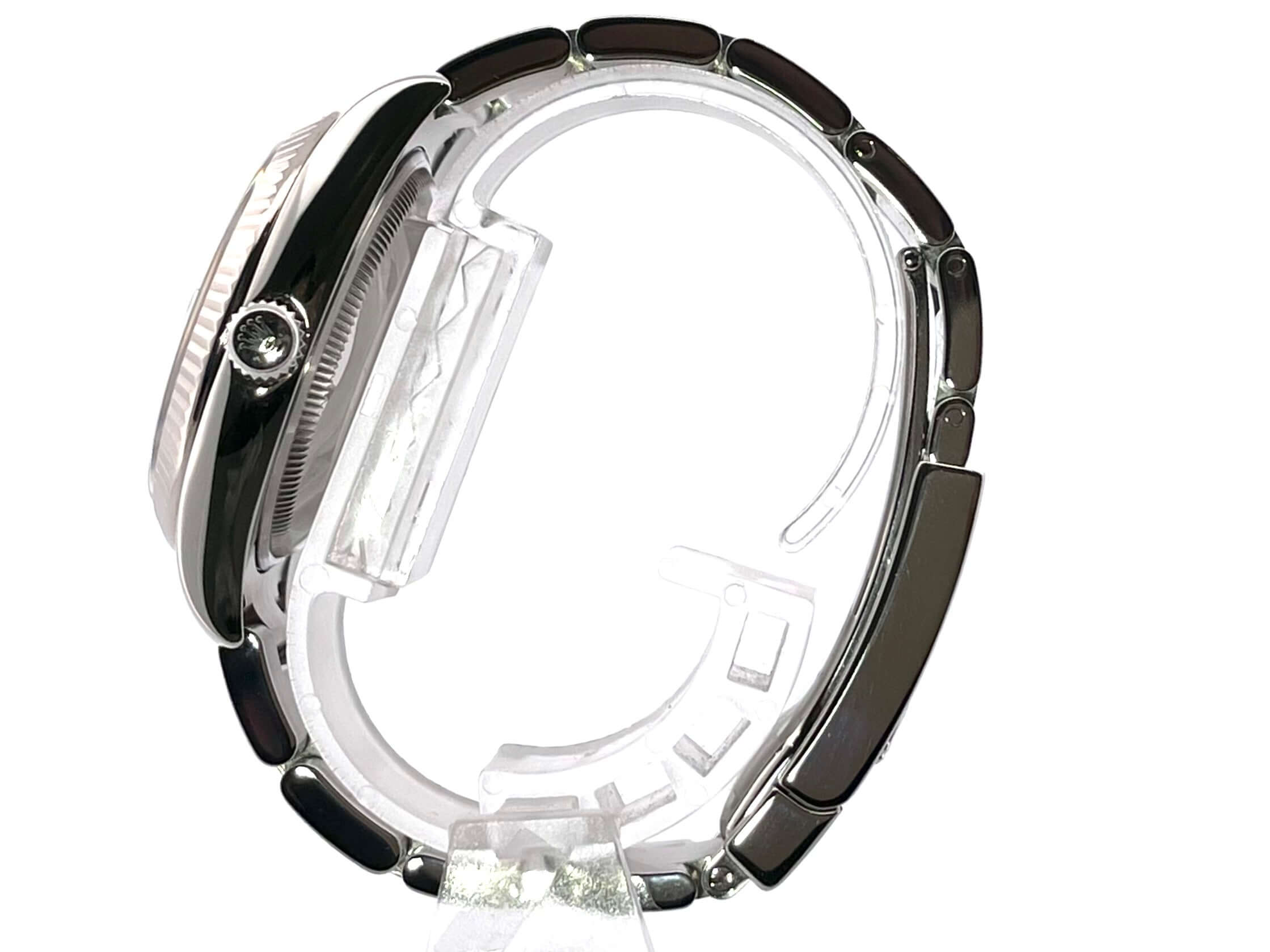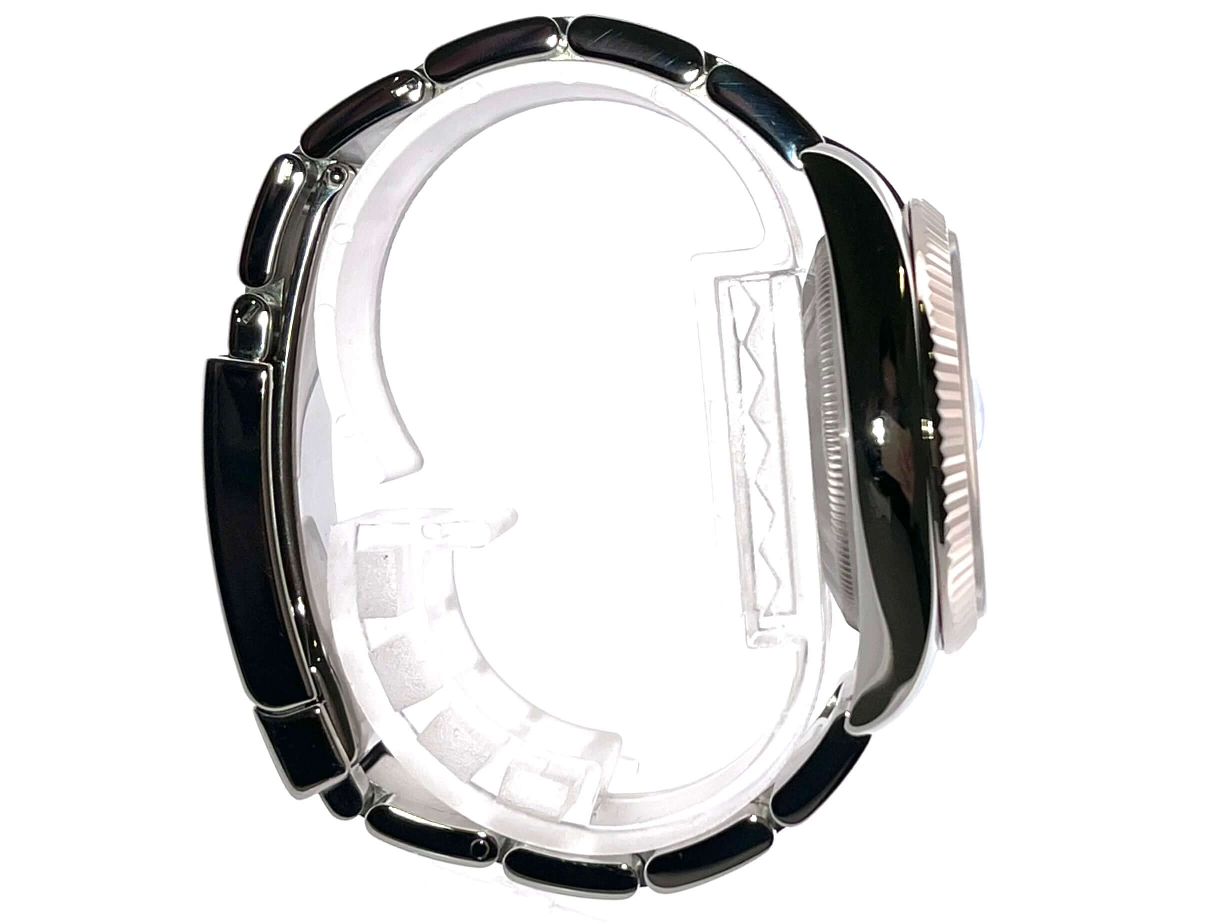 Gehäuse aus Edelstahl poliert und satiniert, Gehäusedurchmesser 34 mm, Gehäusehöhe 11,8 mm, Lünette Weißgold poliert und geriffelt, Oyster Stahlarmband poliert und satiniert mit Faltschließe, silbernes Zifferblatt mit 5 aufgesetzten Diamanten und arabischen Ziffern, Automatikwerk, Rolex Manufakturkaliber 3135 mit 31 Steine, 28.800 A/h, Datumsanzeige mit Lupe, Chronometer, Saphirglas, Krone verschraubt, Edelstahlboden verschraubt, Wasserdicht bis zu 10 bar.