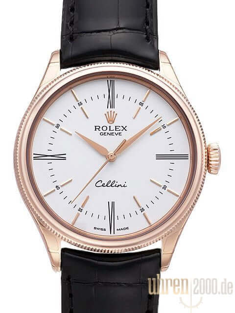 Rolex Cellini Time Everose-Gold Ref. 50505 silberfarbenes Zifferblatt mit schwarzem Lederband
