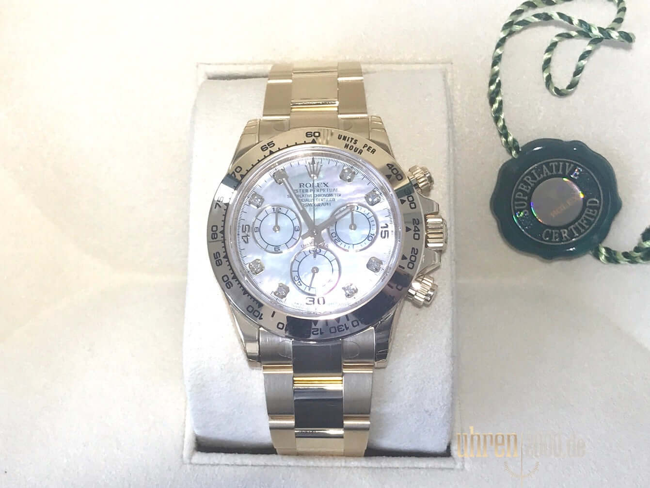 Rolex Cosmograph Daytona 116508 Gelbgold Perlmutt Diamant