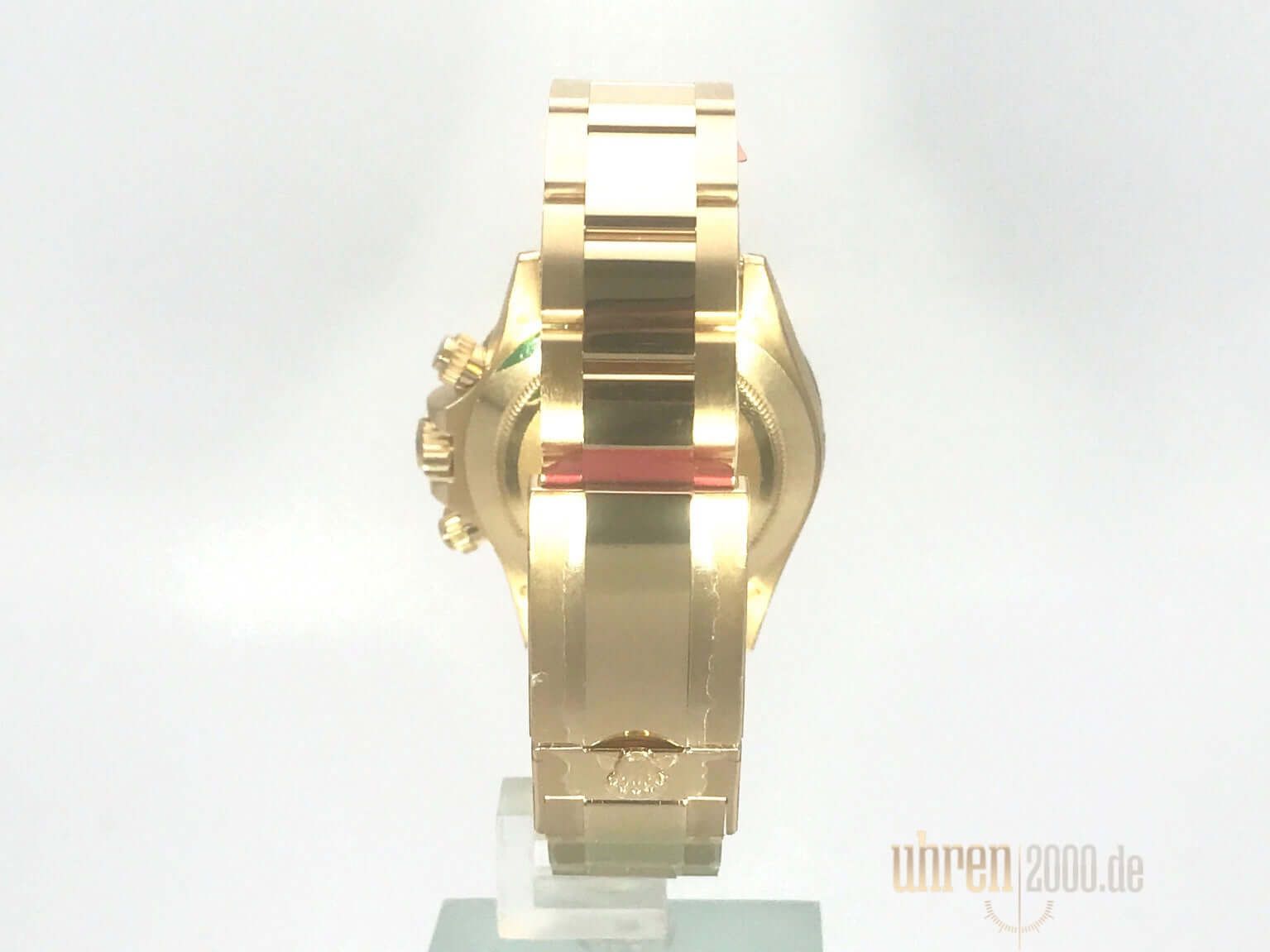 Gehäuse aus 18 kt Gelbgold poliert und satiniert, Gehäusedurchmesser 40 mm, 18 kt Gelbgold Tachymeterlünette, Oyster 18 kt Gelbgold Armband poliert und satiniert mit Faltschließe, Perlmutt Diamant Zifferblatt, Automatikwerk, Rolex Manufakturkaliber 4130 mit 44 Steine, Chronometer, Chronograph, kleine Sekunde, kratzfestes Saphirglas, verschraubter 18 kt Gelbgold Boden, Wasserdicht bis zu 10 bar.