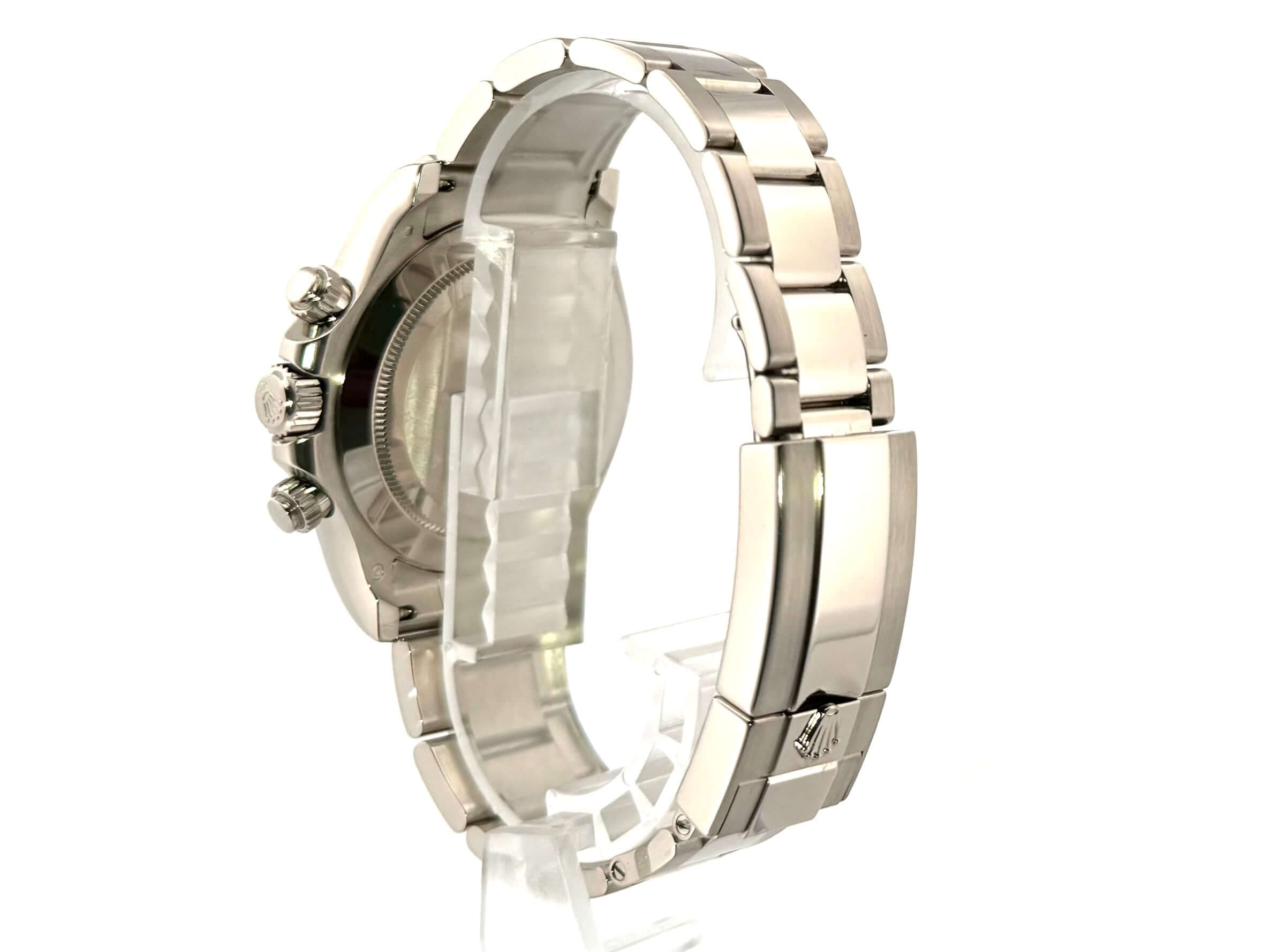 Gehäuse aus 18 kt Weißgold poliert und satiniert, Gehäusedurchmesser 40 mm, Lünette aus 18 kt Weißgold poliert mit Tachymeterskala, Oyster 18 kt Weißgold Armband poliert und satiniert mit Faltschließe, blaues Zifferblatt mit Leuchtindizes, Leuchtzeiger, Automatikwerk, Rolex Manufakturkaliber 4130 mit 44 Steine, Schwingung 28.800 A/h, 72 Stunden Gangreserve, Chronometer, kratzfestes Saphirglas, verschraubter Boden aus 18 kt Weißgold, Wasserdicht bis zu 10 bar.