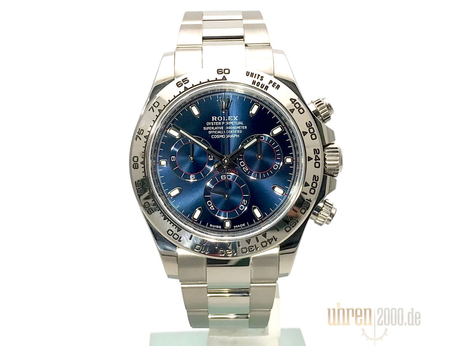 Rolex Cosmograph Daytona Weißgold Ref. 116509 Zifferblatt Blau LC100 aus 2018