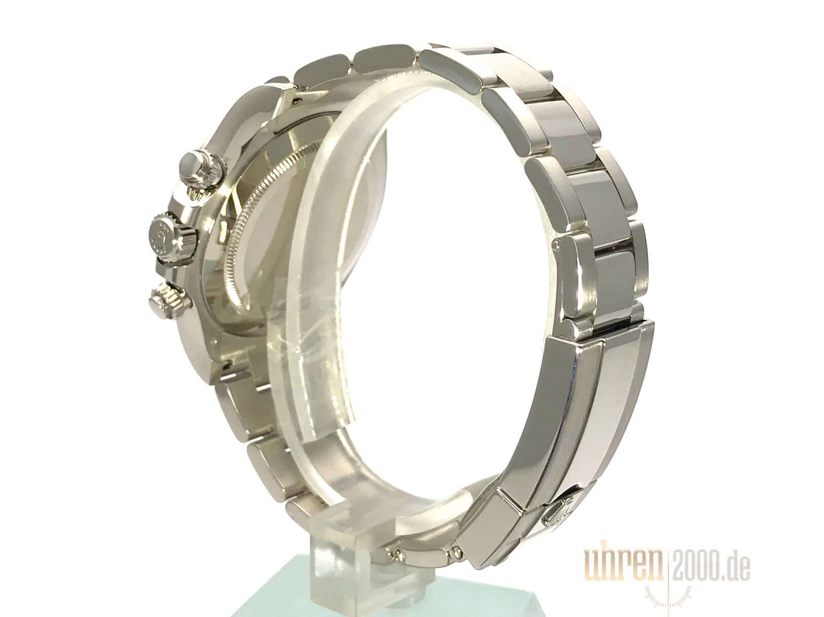 Gehäuse aus 18 kt Weißgold poliert und satiniert, Gehäusedurchmesser 40 mm, Lünette aus 18 kt Weißgold poliert mit Tachymeterskala, Oyster 18 kt Weißgold Armband poliert und satiniert mit Faltschließe, blaues Zifferblatt mit Leuchtindizes, Leuchtzeiger, Automatikwerk, Rolex Manufakturkaliber 4130 mit 44 Steine, Schwingung 28.800 A/h, 72 Stunden Gangreserve, Chronometer, kratzfestes Saphirglas, verschraubter Boden aus 18 kt Weißgold, Wasserdicht bis zu 10 bar.