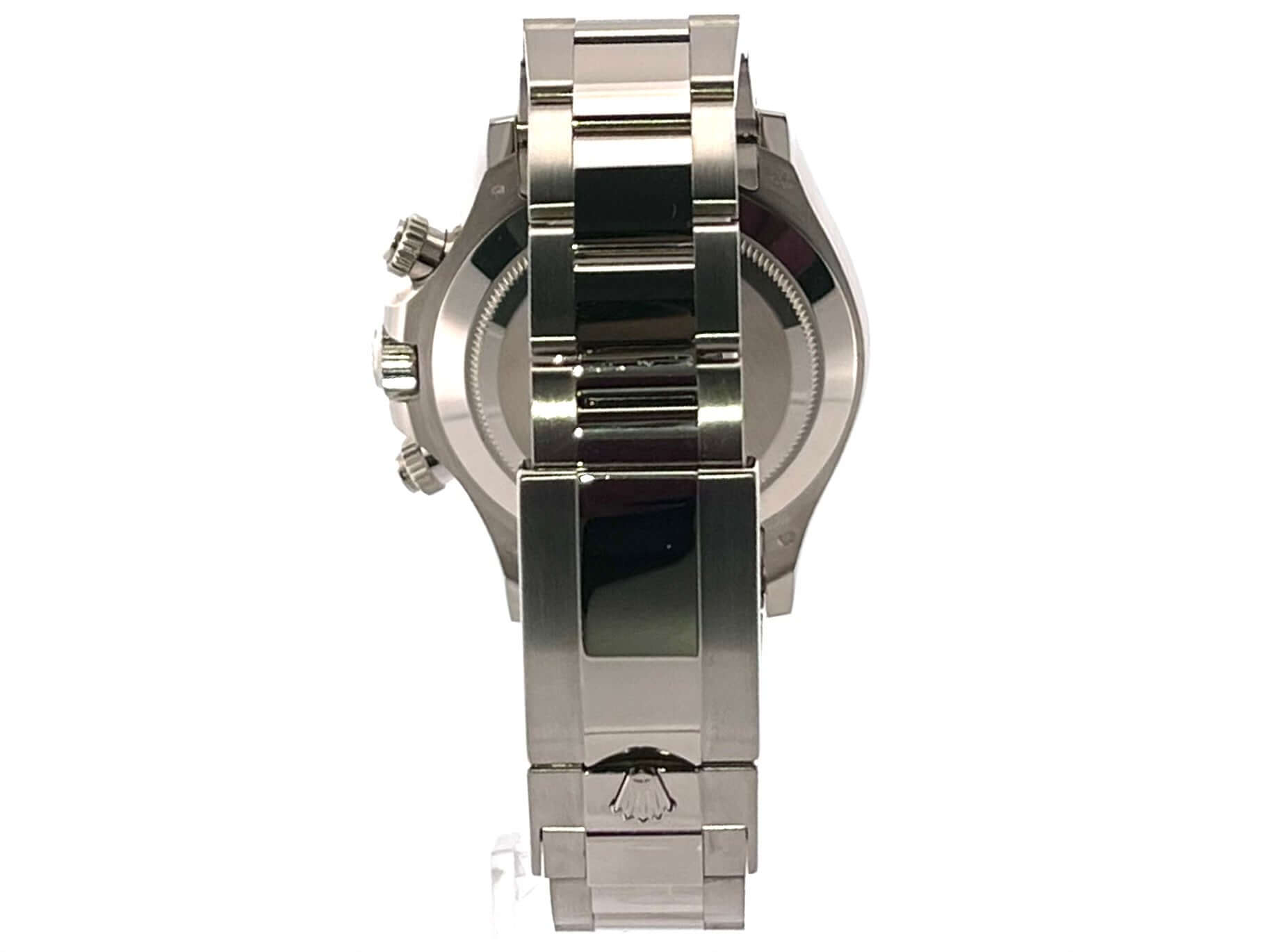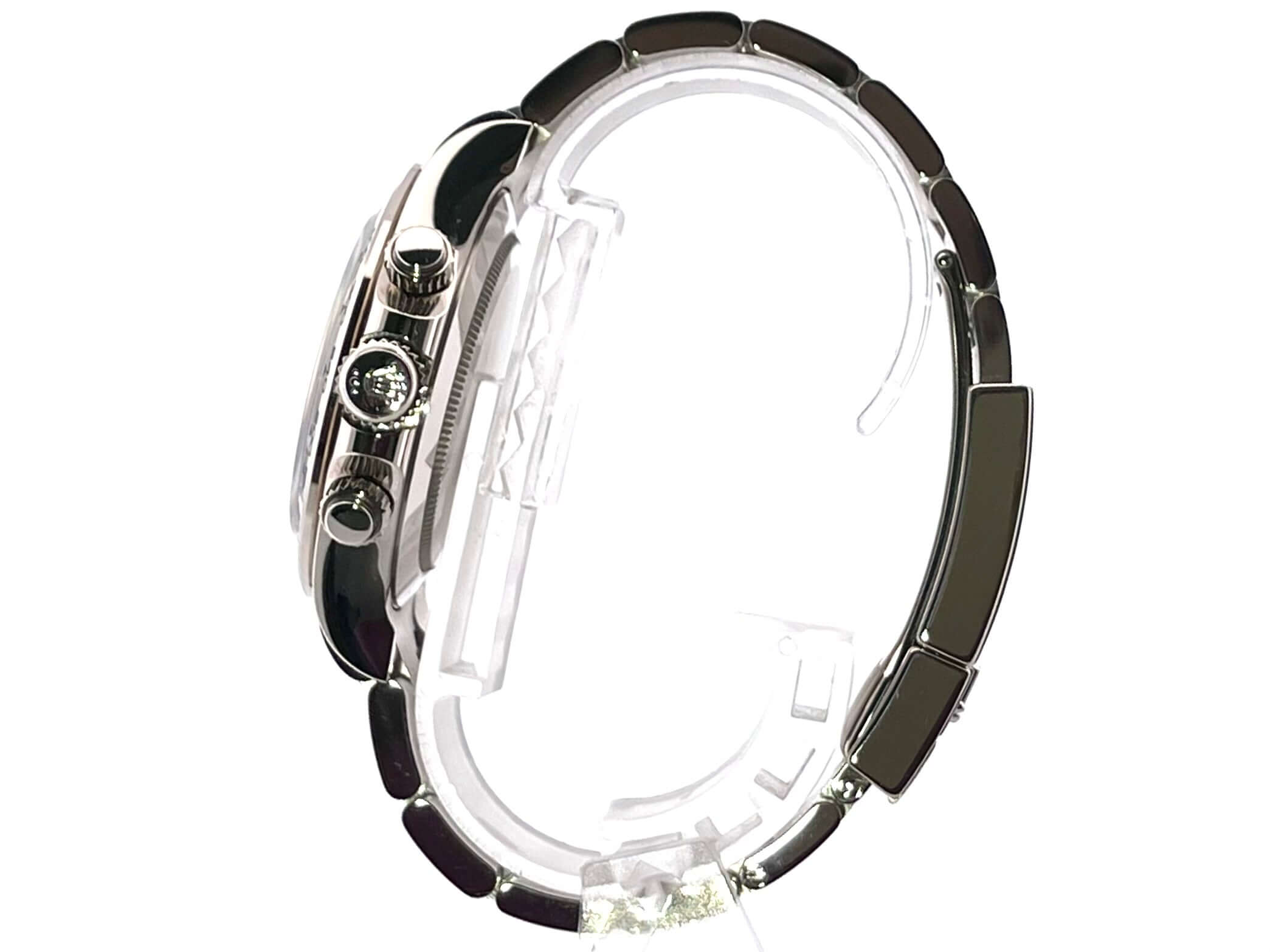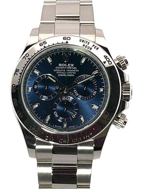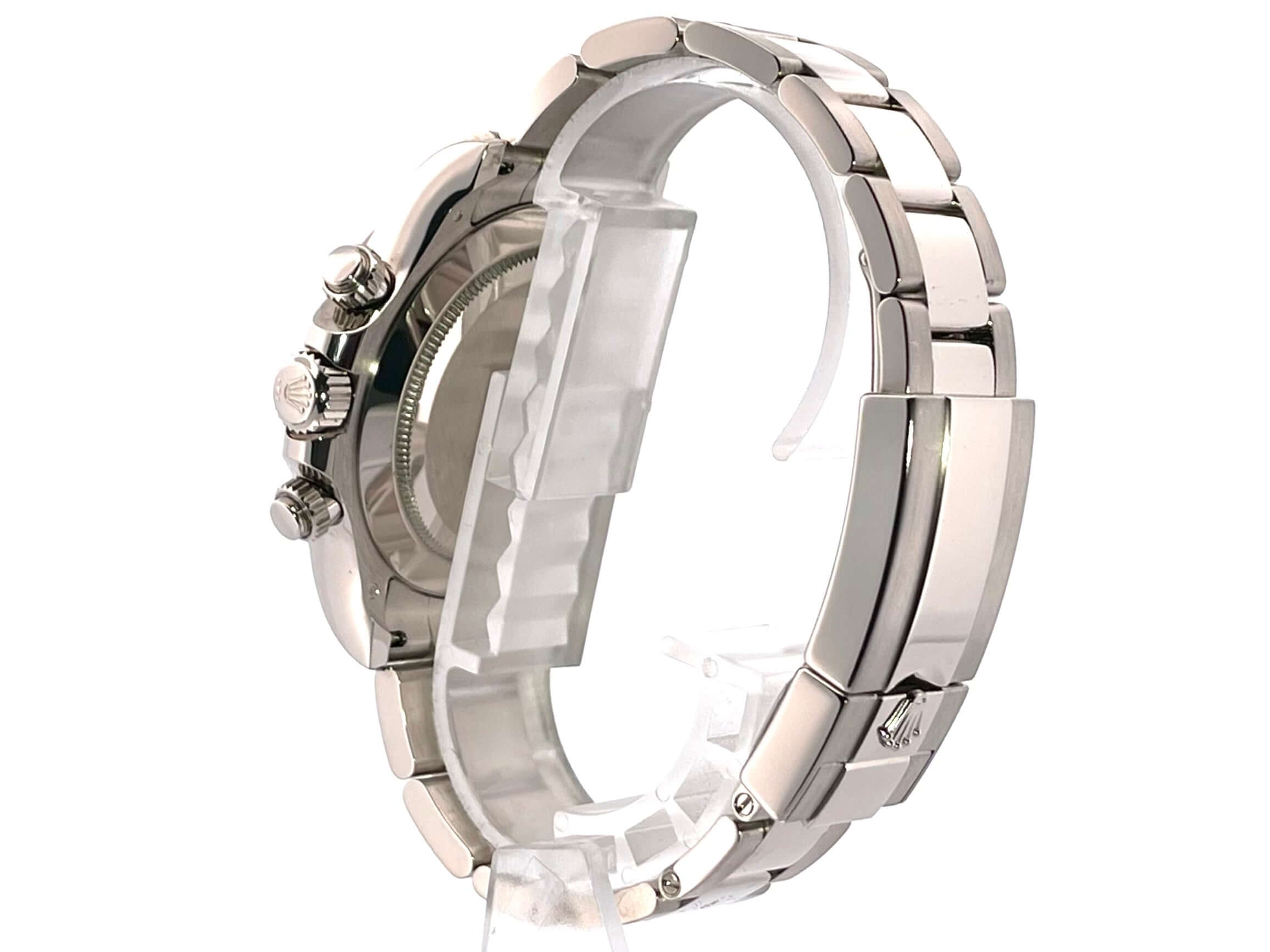 Gehäuse aus 18 kt Weißgold poliert und satiniert, Gehäusedurchmesser 40 mm, Lünette aus 18 kt Weißgold poliert mit Tachymeterskala, Oyster 18 kt Weißgold Armband poliert und satiniert mit Faltschließe, blaues Zifferblatt mit Leuchtindizes, Leuchtzeiger, Automatikwerk, Rolex Manufakturkaliber 4130 mit 44 Steine, Schwingung 28.800 A/h, 72 Stunden Gangreserve, Chronometer, kratzfestes Saphirglas, verschraubter Boden aus 18 kt Weißgold, Wasserdicht bis zu 10 bar.