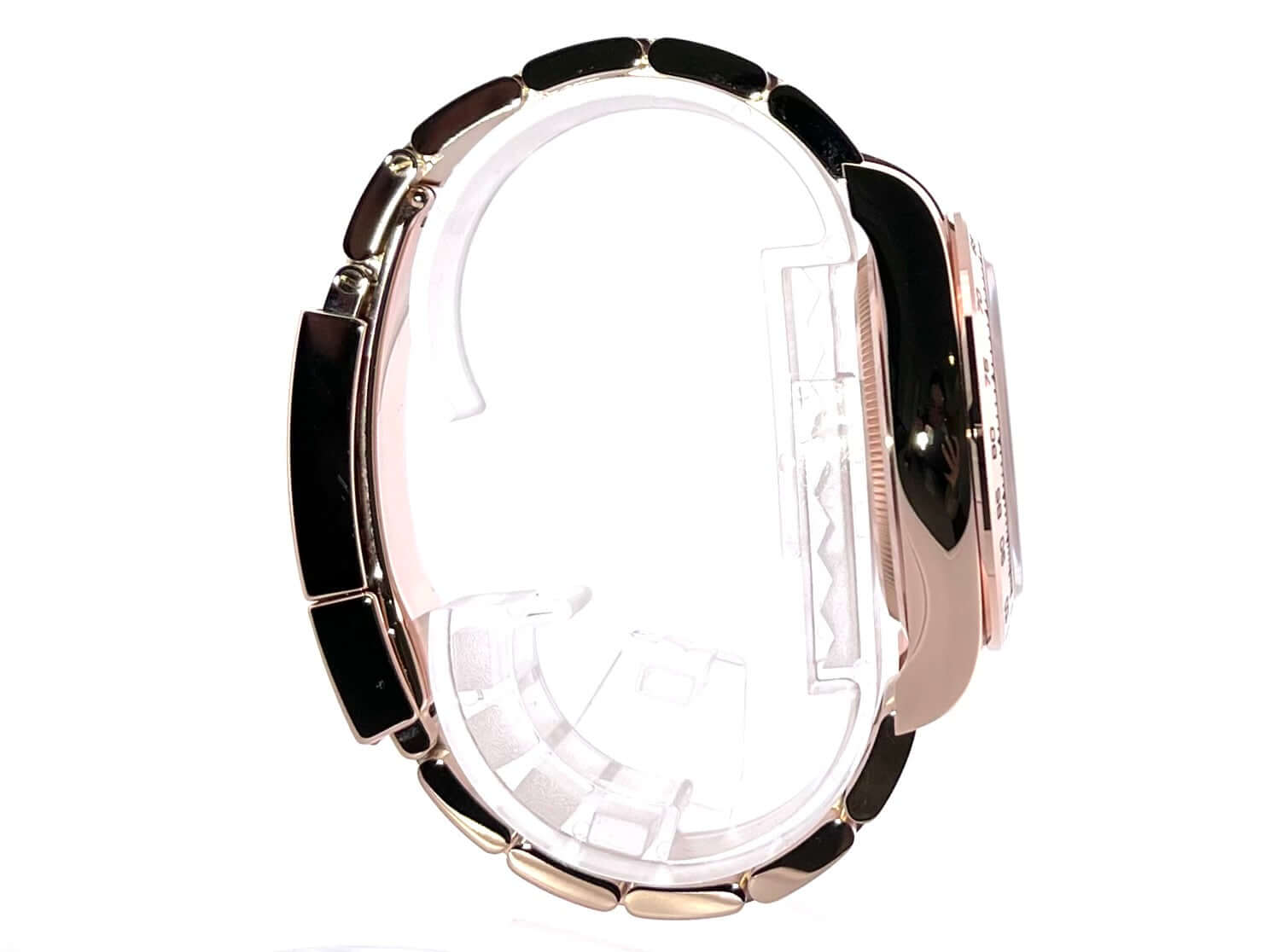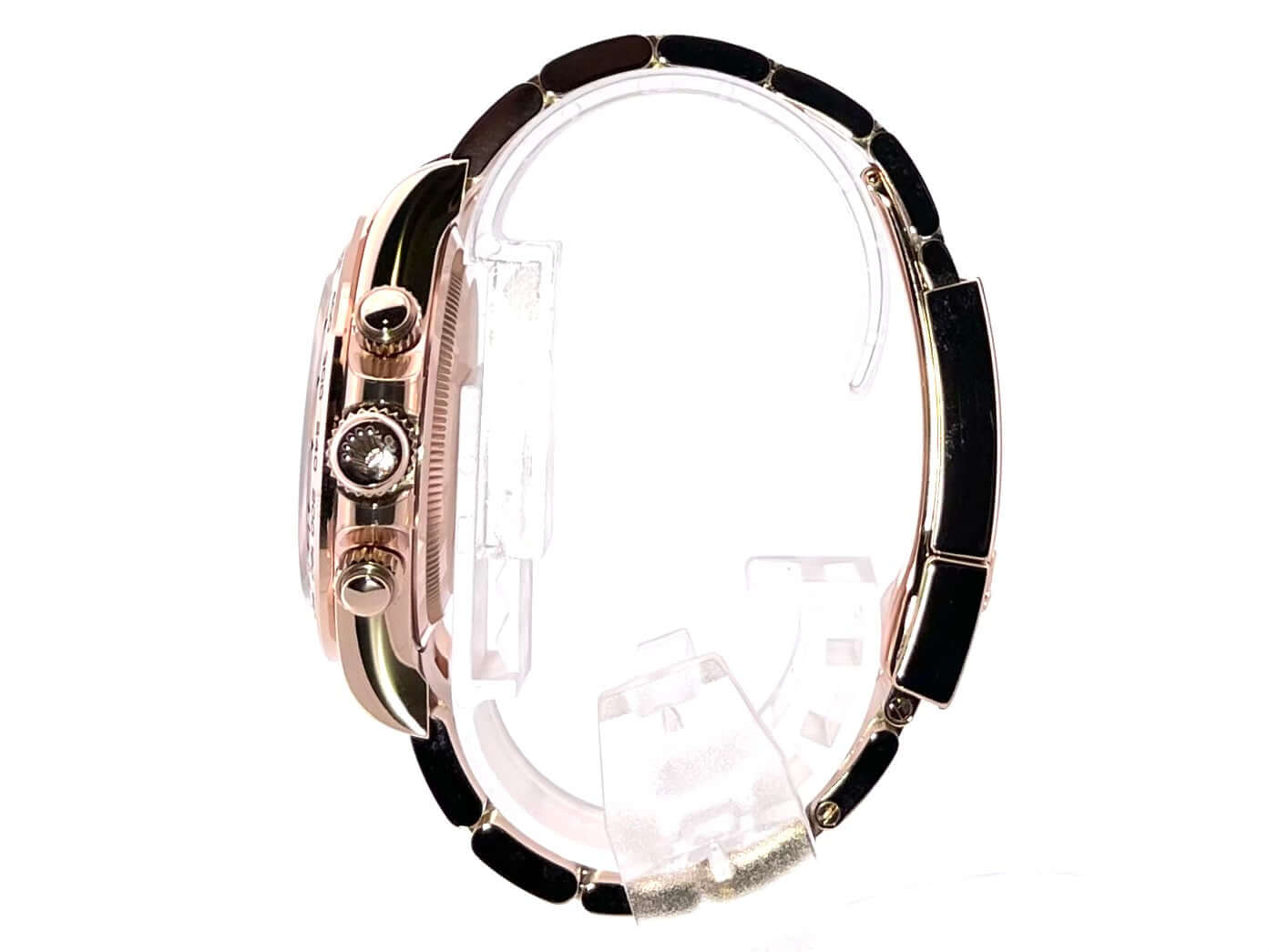 Gehäuse aus 18 kt Everose-Gold poliert und satiniert, Gehäusedurchmesser 40 mm, 18 kt Everose-Gold Lünette poliert und graviert mit Tachymeterskala, Oyster 18 kt Everose-Gold Armband poliert und satiniert mit Faltschließe, Sundust Zifferblatt mit Leuchtindizes, schwarze Totalisatoren, Leuchtzeiger, Automatikwerk, Rolex Manufakturkaliber 4131 mit 47 Steine, Schwingung 28.800 A/h, Chronometer, kratzfestes Saphirglas, verschraubter 18 kt Everose-Gold Boden, Wasserdicht bis zu 10 bar.