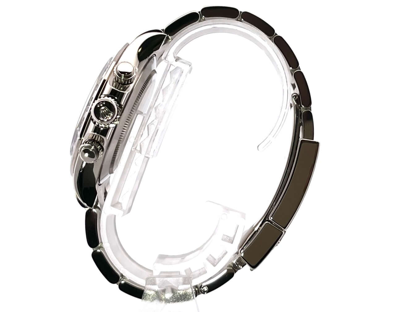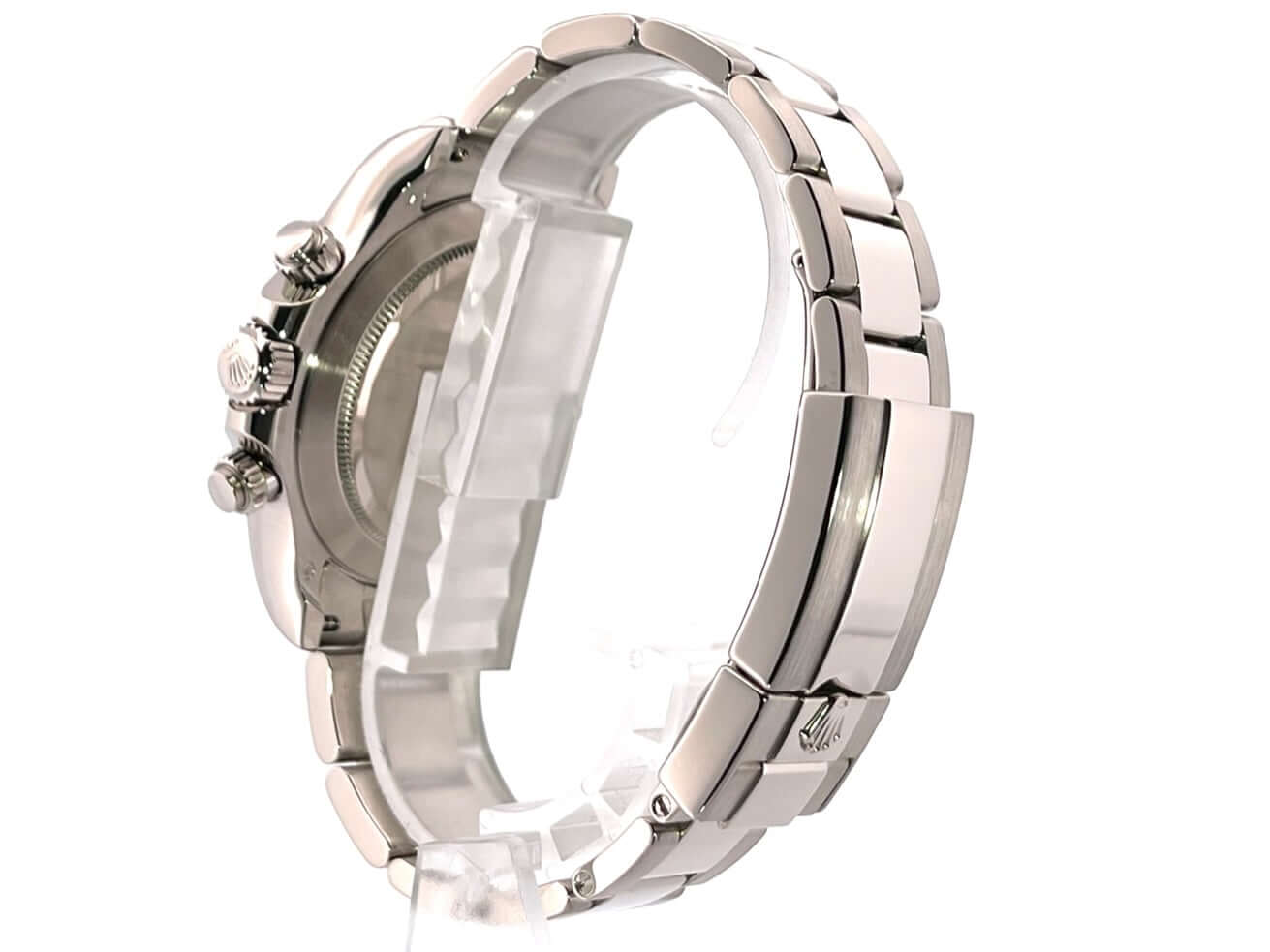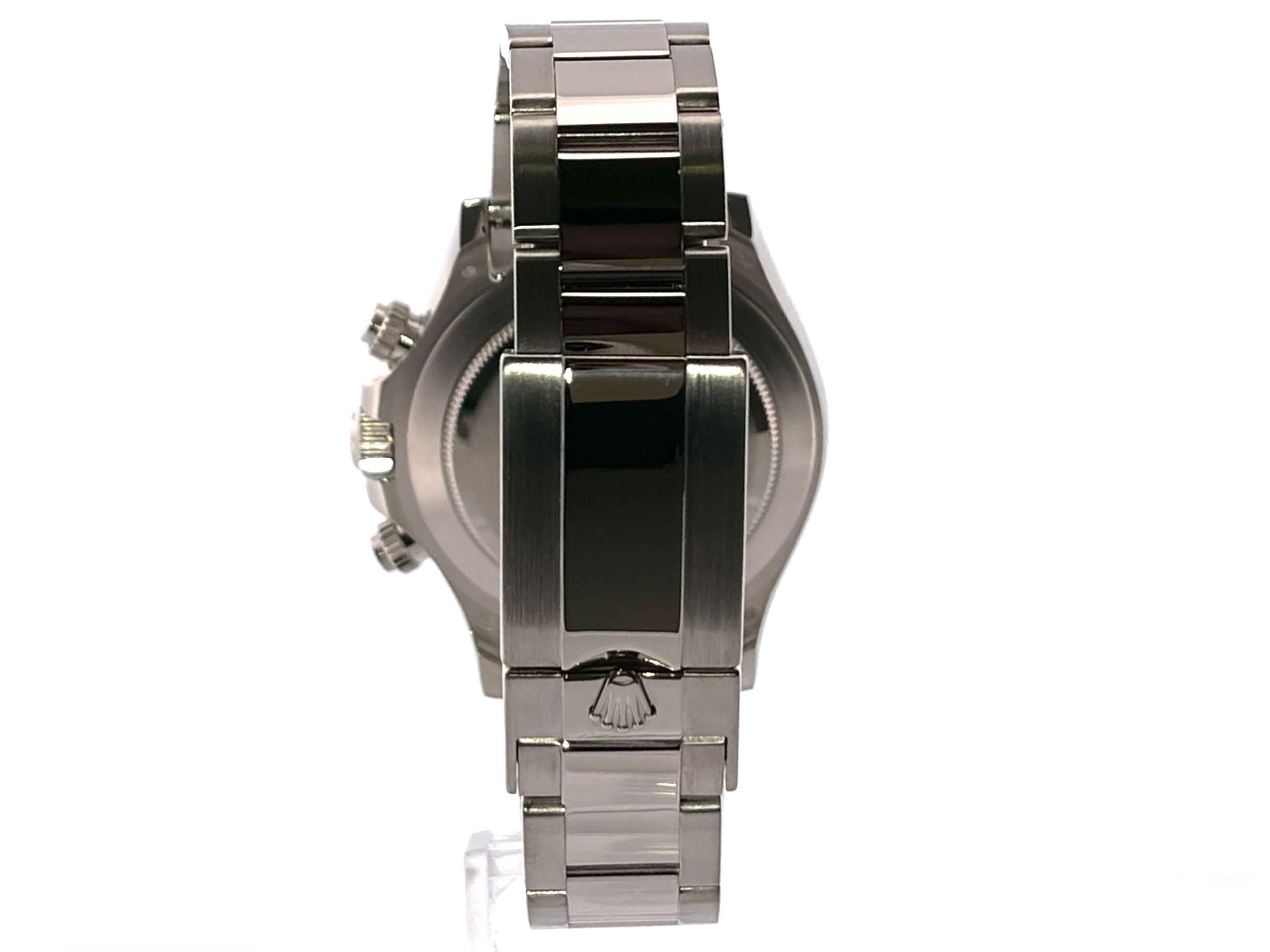 Gehäuse aus 18 kt Weißgold poliert und satiniert, Gehäusedurchmesser 40 mm, Lünette aus 18 kt Weißgold poliert mit Tachymeterskala, Oyster 18 kt Weißgold Armband poliert und satiniert mit Faltschließe, graues Zifferblatt mit Leuchtindizes, Leuchtzeiger, Automatik, Rolex Manufakturkaliber 4130 mit 44 Steine, Schwingung 28.800 A/h, 72 Stunden Gangreserve, Chronometer, kratzfestes Saphirglas, verschraubter Boden aus 18 kt Weißgold, Wasserdicht bis zu 10 bar.