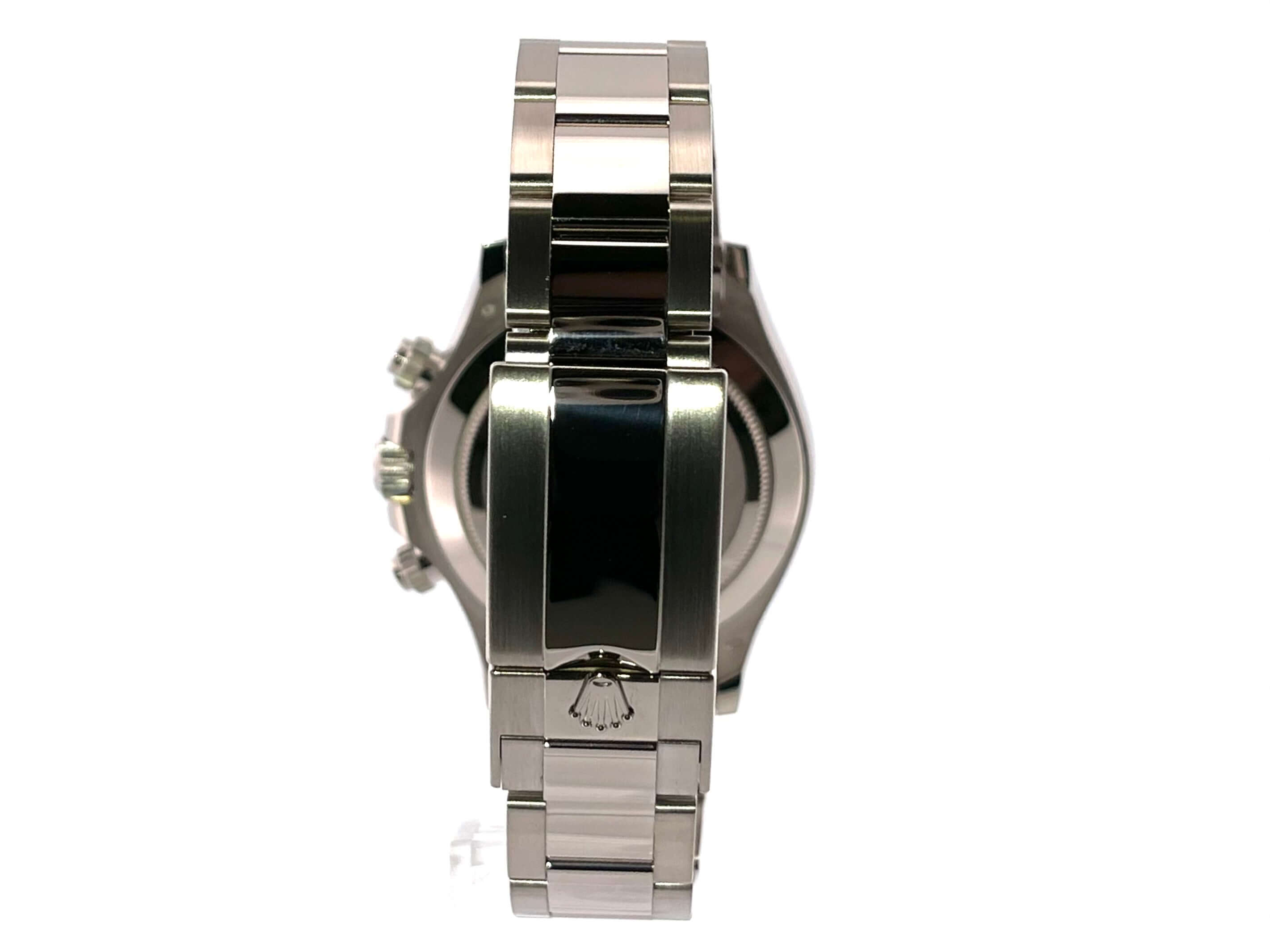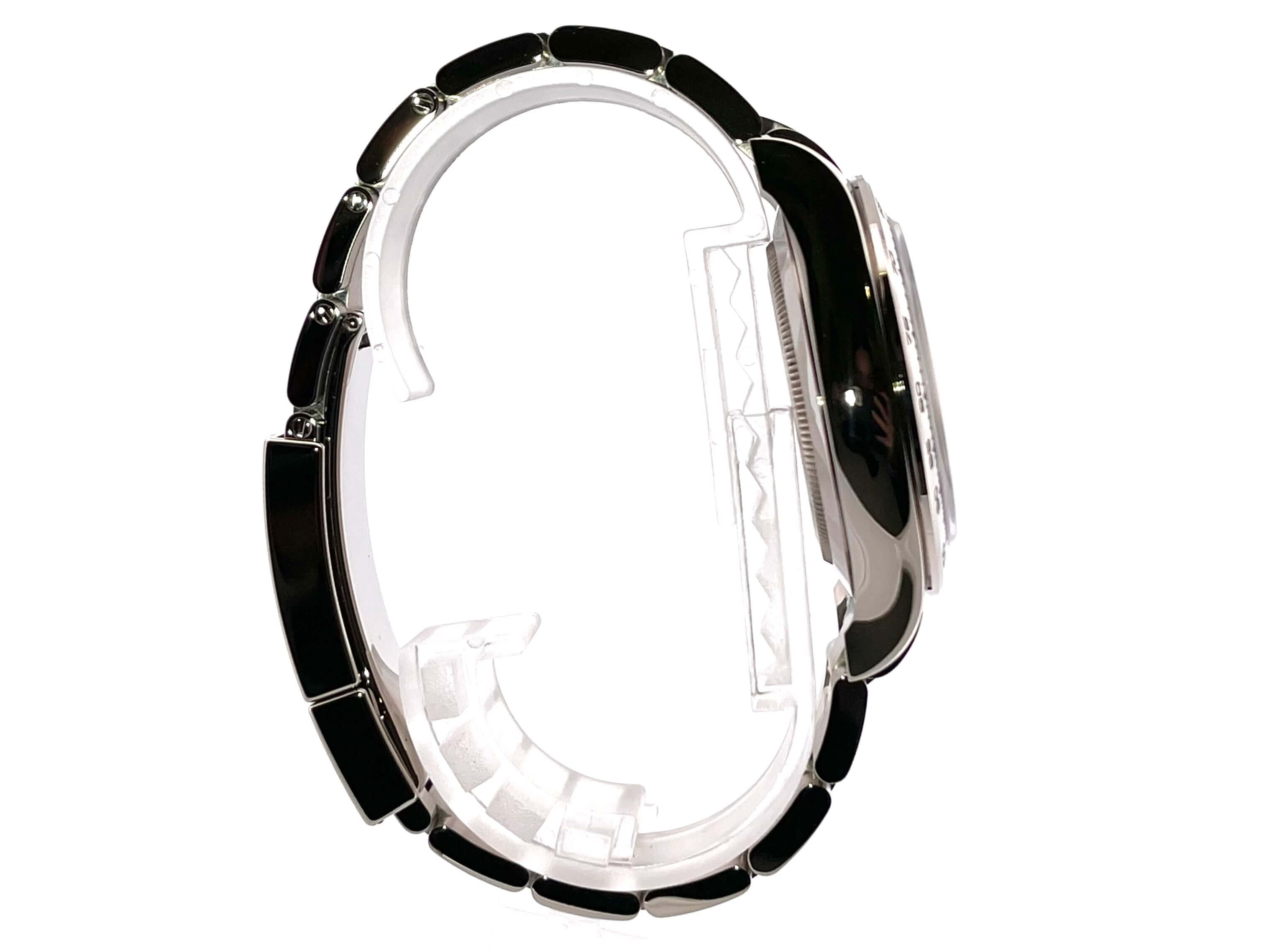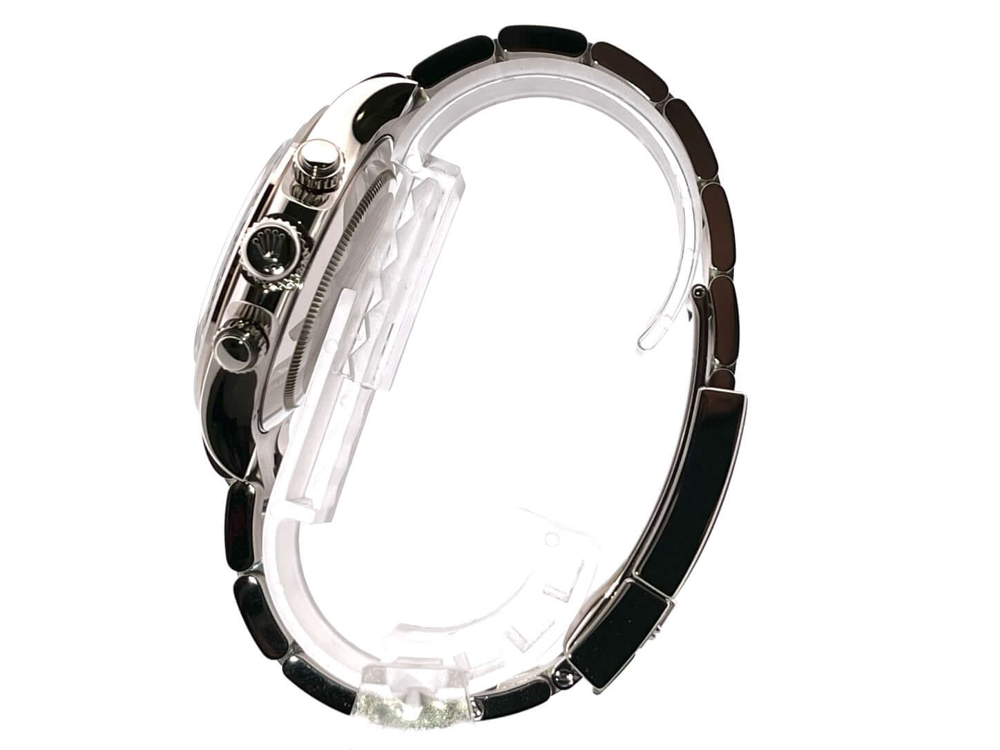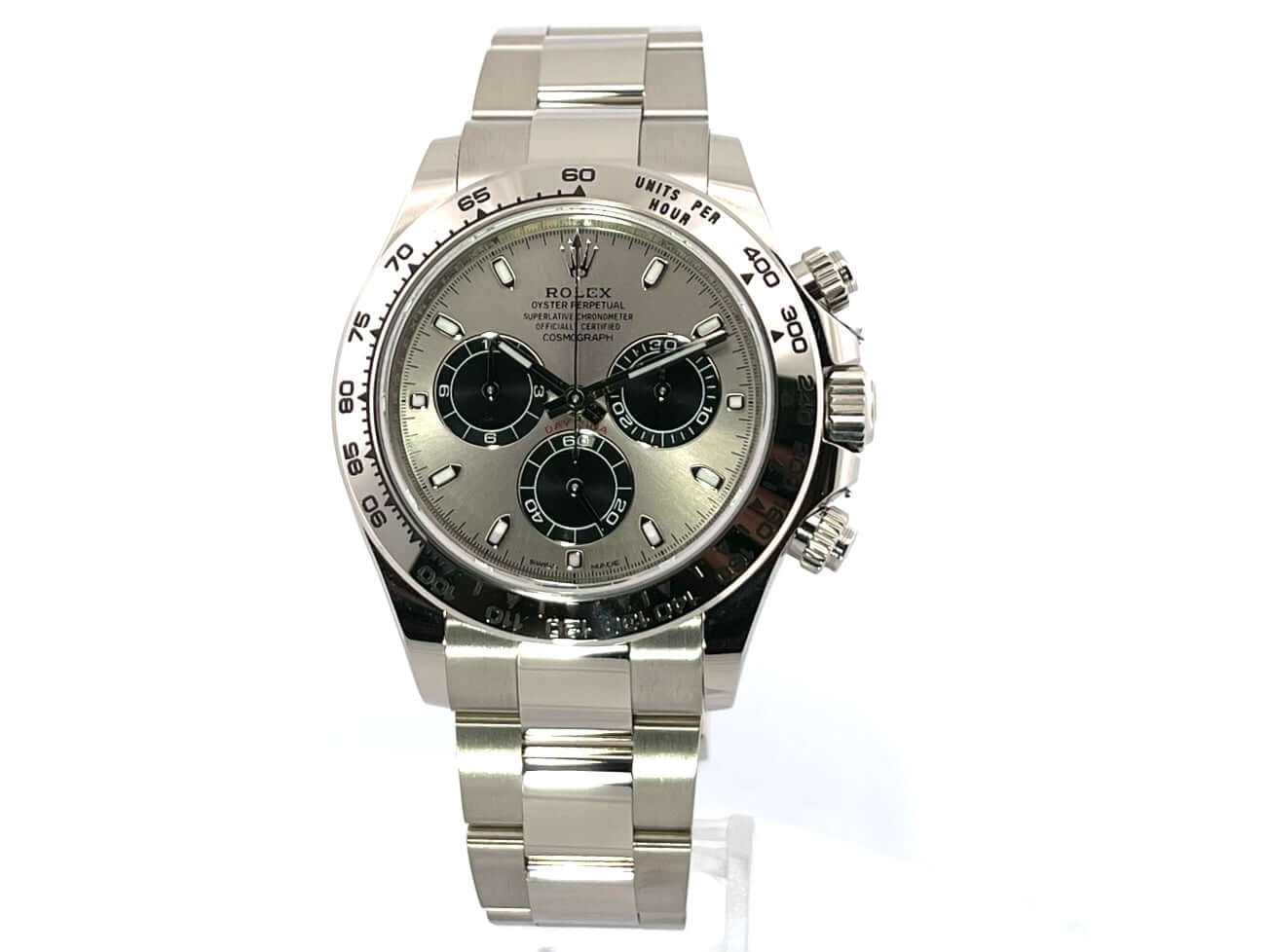 Gehäuse aus 18 kt Weißgold poliert und satiniert, Gehäusedurchmesser 40 mm, Lünette aus 18 kt Weißgold poliert mit Tachymeterskala, Oyster 18 kt Weißgold Armband poliert und satiniert mit Faltschließe, graues Zifferblatt mit Leuchtindizes, Leuchtzeiger, Automatik, Rolex Manufakturkaliber 4130 mit 44 Steine, Schwingung 28.800 A/h, 72 Stunden Gangreserve, Chronometer, kratzfestes Saphirglas, verschraubter Boden aus 18 kt Weißgold, Wasserdicht bis zu 10 bar.