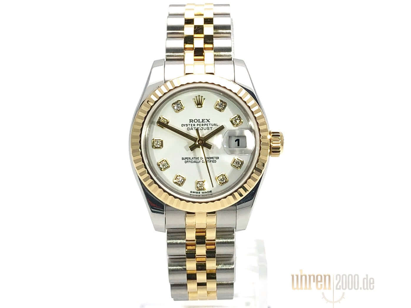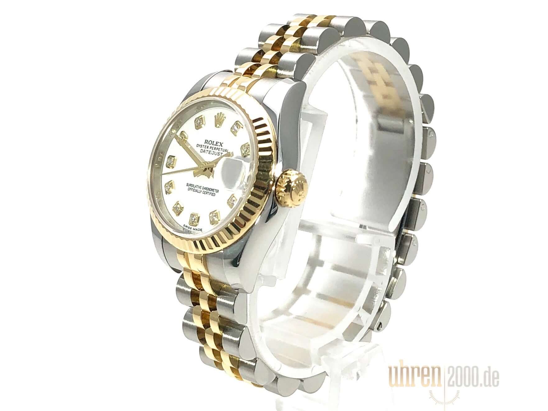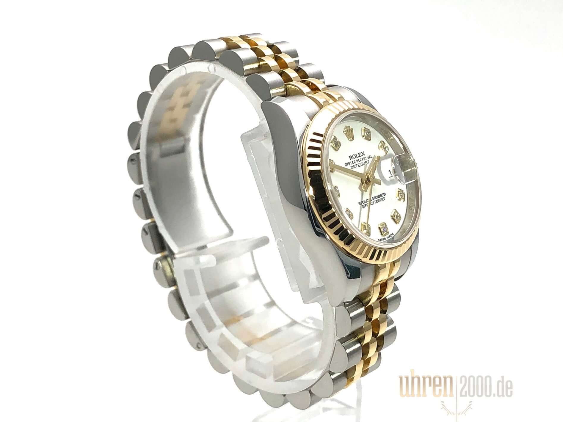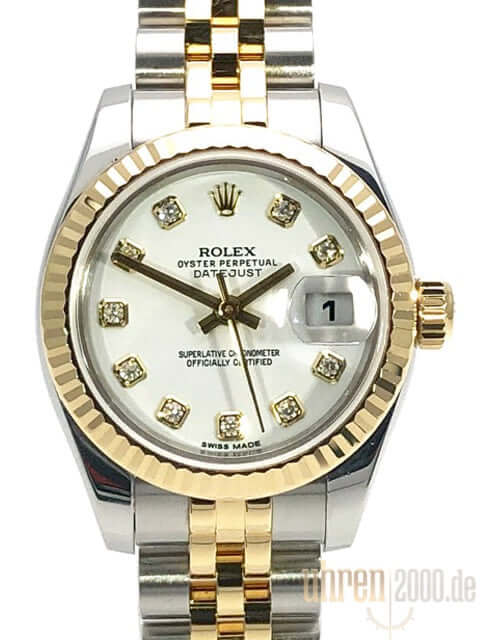 Gehäuse aus Edelstahl poliert und satiniert, Gehäusedurchmesser 26 mm, polierte Gelbgold Lünette, Jubile Edelstahl / Gelbgold Armband poliert und satiniert mit Faltschließe, weißes Zifferblatt mit aufgesetzten Diamanten, Automatik, Rolex Manufakturkaliber 2235, Datum, Chronometer, Saphirglas, Krone verschraubt, Edelstahlboden verschraubt, Wasserdicht bis 10 bar.