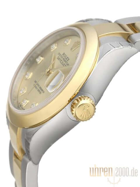 Gehäuse aus Edelstahl poliert und satiniert, Gehäusedurchmesser 28 mm, glatte und polierte Lünette aus 18 kt Gelbgold, Oyster Edelstahl / 18 kt Gelbgold Armband poliert und satiniert mit Faltschließe, Champagner Diamantzifferblatt, Automatikwerk, Rolex Manufakturkaliber 2236 mit 31 Steine, 28.800 A/h, Gangreserve ca. 55 Stunden, Chronometer, Datumsanzeige, kratzfestes Saphirglas, verschraubte Krone aus 18 kt Gelbgold, Edelstahlboden verschraubt, Wasserdicht bis zu 10 bar.