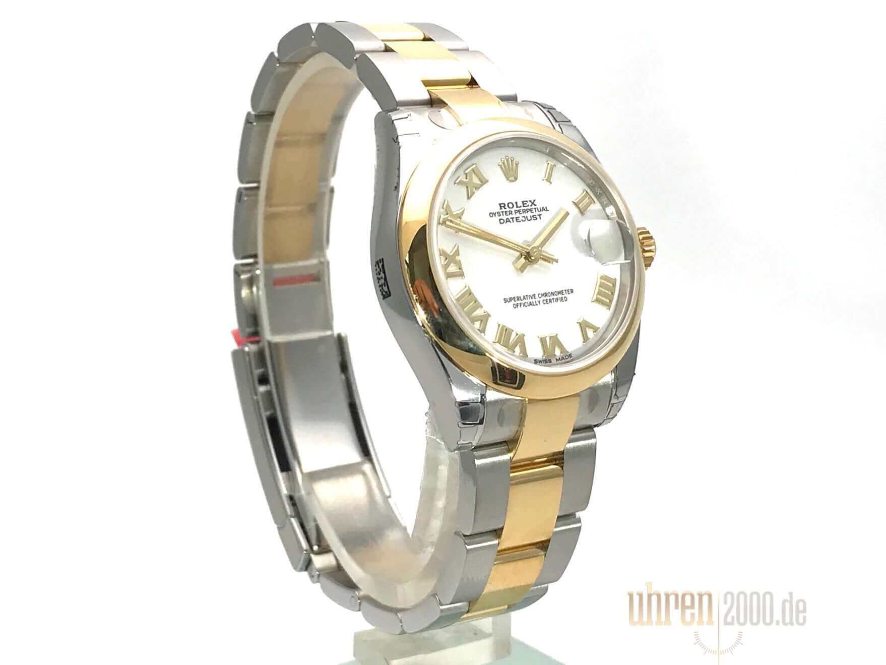 Gehäuse aus Edelstahl poliert und satiniert, Gehäusedurchmesser 31 mm, glatte und polierte Lünette aus 18 kt Gelbgold, Oyster Edelstahl / 18 kt Gelbgold Armband poliert und satiniert mit Faltschließe, weißes Zifferblatt mit aufgesetzten goldenen römischen Ziffern, goldene Zeiger, Automatikwerk, Chronometer, Rolex Manufakturkaliber 2235 mit 31 Steine, 28.800 A/h, Datumsanzeige, kratzfestes Saphirglas, verschraubte Krone aus 18 kt Gelbgold, Edelstahlboden verschraubt, Wasserdicht bis zu 10 bar.