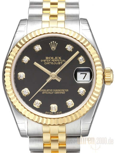 Rolex Datejust 31 Edelstahl Gelbgold Ref. 178273 Schwarz Diamanten Jubile-Band