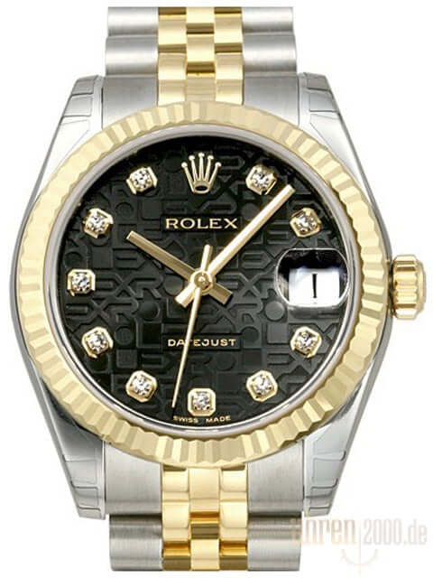 Rolex Datejust 31 Edelstahl Gelbgold 178273 Schwarz Jubile DIA Jubile-Band