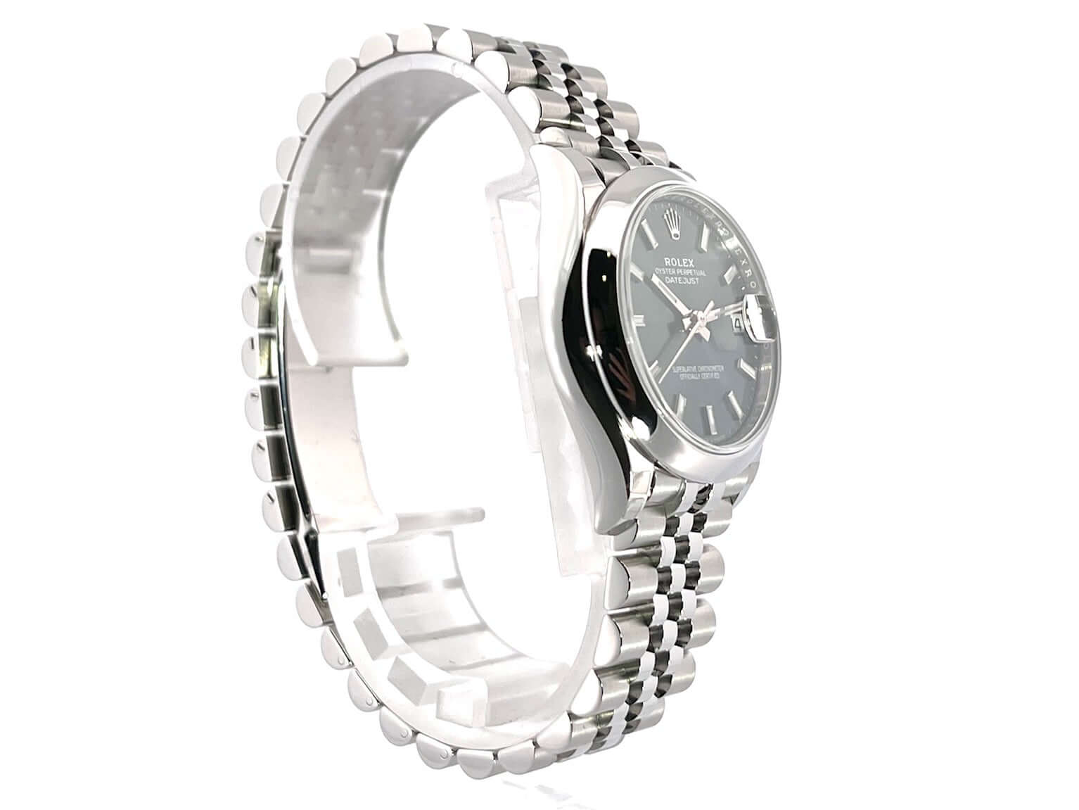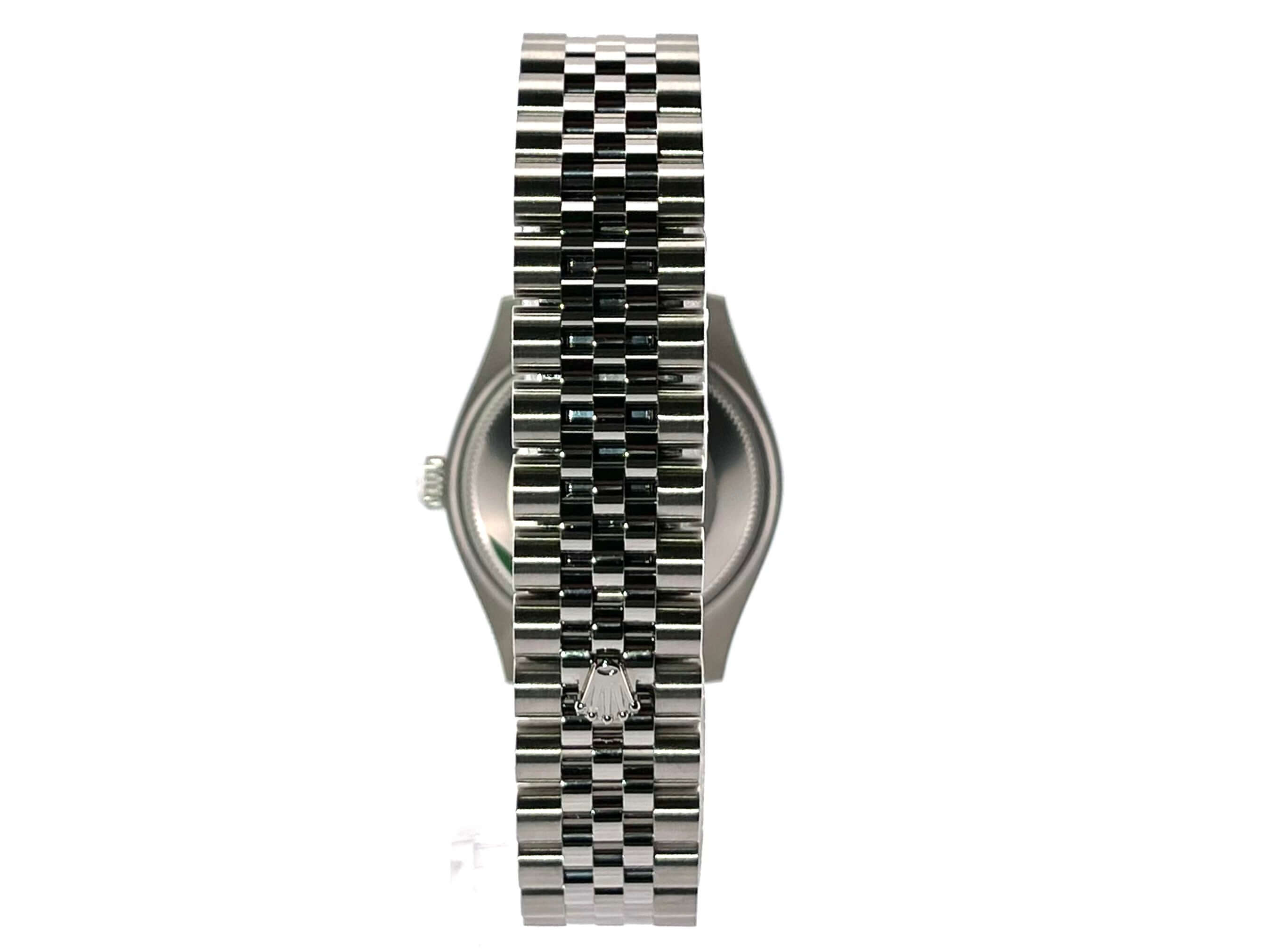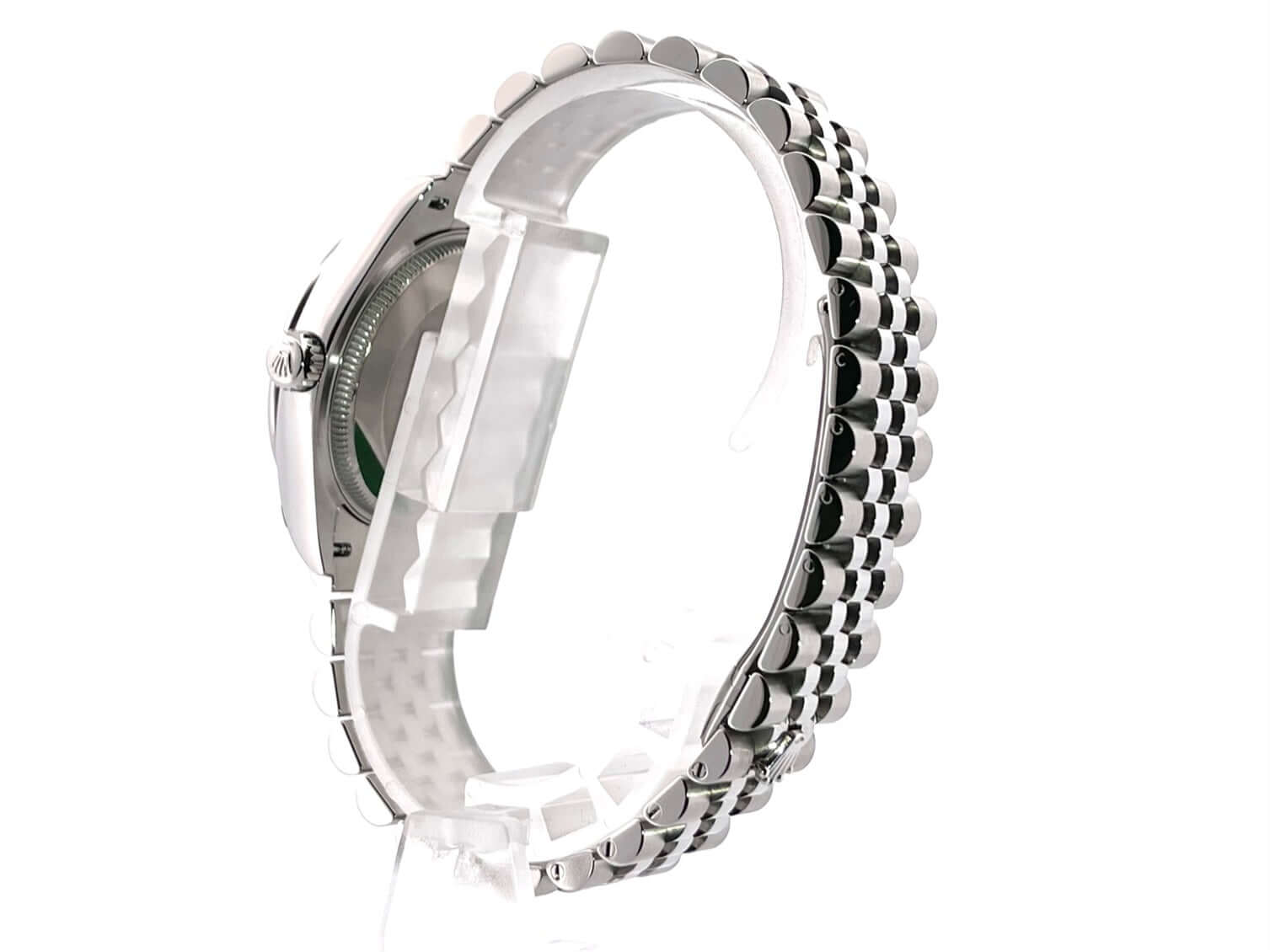 Gehäuse aus Edelstahl poliert und satiniert, Gehäusedurchmesser 31 mm, Lünette aus Edelstahl poliert, Jubile Edelstahlband poliert und satiniert mit Faltschließe, mintgrünes Zifferblatt mit aufgesetzten Leuchtindizes, Leuchtzeiger, Automatik, Rolex Manufakturkaliber 2236, 55 Stunden Gangreserve, Datum, Chronometer, Saphirglas, Krone verschraubt, Edelstahlboden verschraubt, Wasserdicht bis 10 bar.