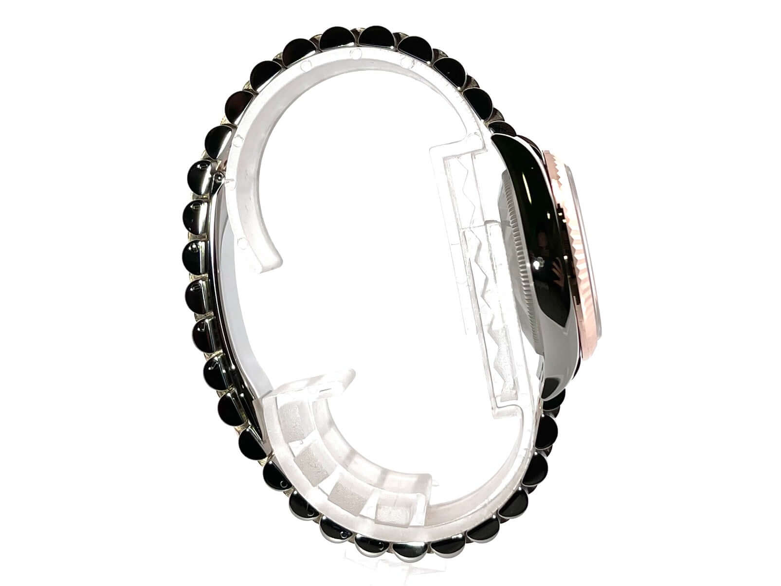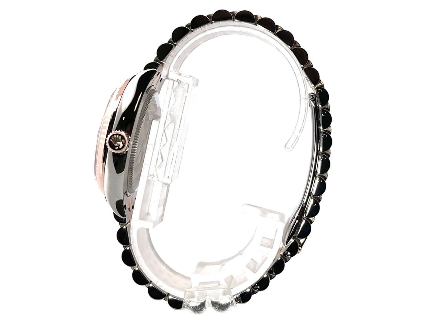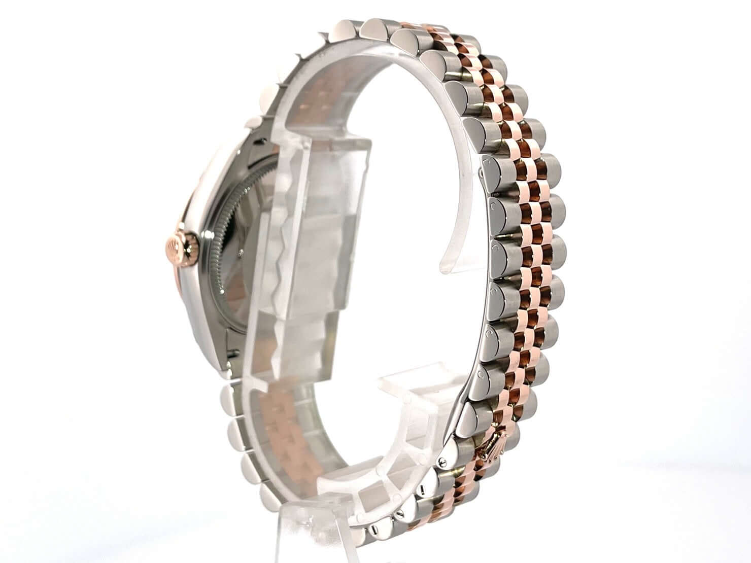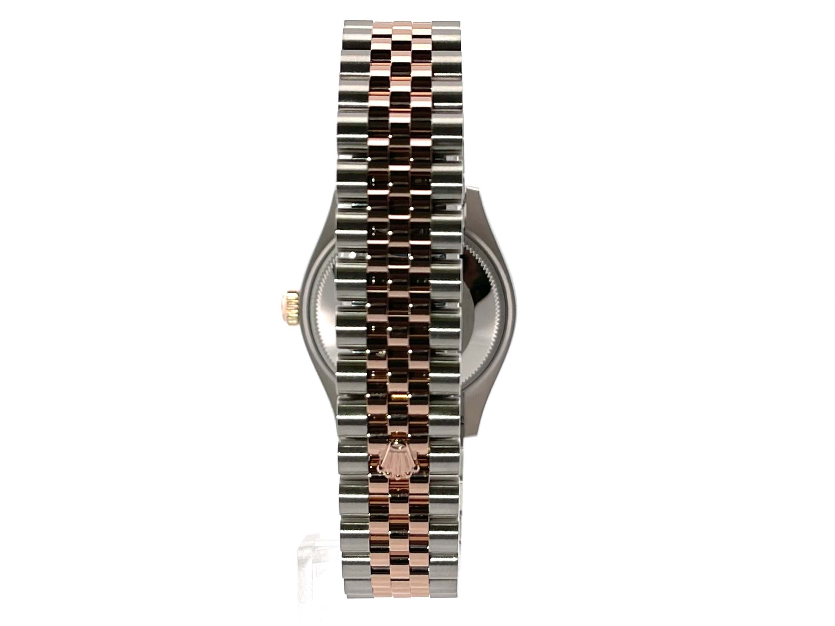 Gehäuse aus Edelstahl poliert und satiniert, Gehäusedurchmesser 31 mm, geriffelte Lünette aus 18 kt Everose-Gold, Jubile Edelstahl / 18 kt Everose-Gold Armband poliert und satiniert mit Faltschließe, schiefergraues Zifferblatt mit römischen Ziffern und Diamanten in der römischen VI, Everose-Gold Zeiger, Automatikwerk, Rolex Manufakturkaliber 2236 mit 31 Steine, 28.800 A/h, 55 Stunden Gangreserve, Datum, Chronometer, kratzfestes Saphirglas, verschraubte Krone aus 18 kt Everose-Gold, Edelstahlboden verschraubt, Wasserdicht bis zu 10 bar.
