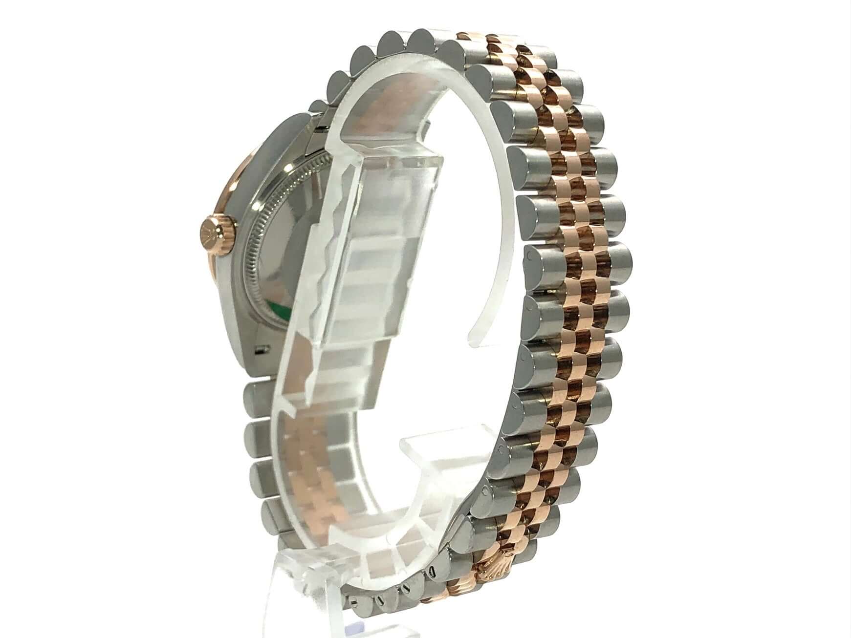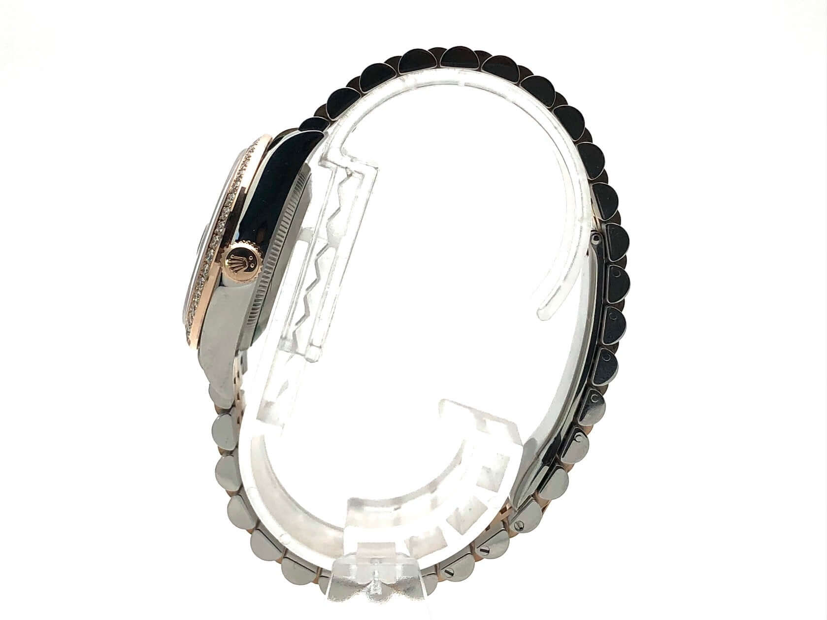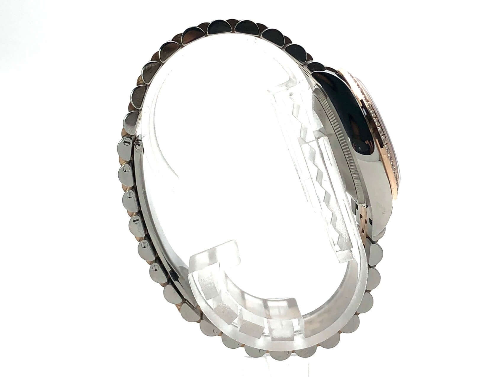 Gehäuse aus Edelstahl poliert und satiniert, Gehäusedurchmesser 31 mm, Lünette aus 18 kt Everose-Gold mit Diamanten besetzt, Jubile Edelstahl / 18 kt Everose-Gold Armband poliert und satiniert mit Faltschließe, Auberginefarbenes Zifferblatt mit römischen Ziffern und Diamanten in der Römisch VI, Everose-Gold Zeiger, Automatikwerk, Rolex Manufakturkaliber 2236 mit 31 Steine, 28.800 A/h, 55 Stunden Gangreserve, Datum, Chronometer, kratzfestes Saphirglas, verschraubte Krone aus 18 kt Everose-Gold, Edelstahlboden verschraubt, Wasserdicht bis zu 10 bar.