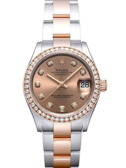 Gehäuse aus Edelstahl poliert und satiniert, Gehäusedurchmesser 31 mm, Lünette aus 18 kt Everose-Gold mit Diamanten besetzt, Oyster Edelstahl / 18 kt Everose-Gold Armband poliert und satiniert mit Faltschließe, Pinkfarbenes Zifferblatt mit 10 Diamanten besetzt, Everose-Gold Zeiger, Automatikwerk, Rolex Manufakturkaliber 2236 mit 31 Steine, 28.800 A/h, 55 Stunden Gangreserve, Datum, Chronometer, kratzfestes Saphirglas, verschraubte Krone aus 18 kt Everose-Gold, Edelstahlboden verschraubt, Wasserdicht bis zu 10 bar.