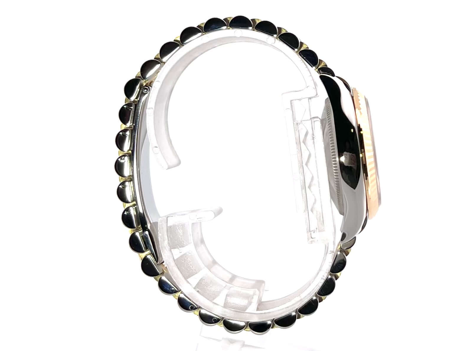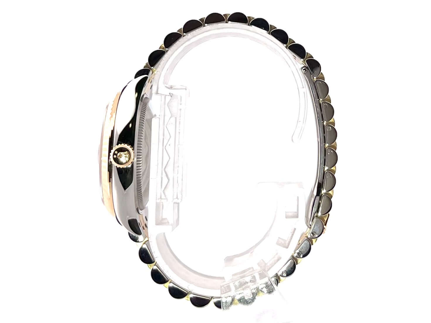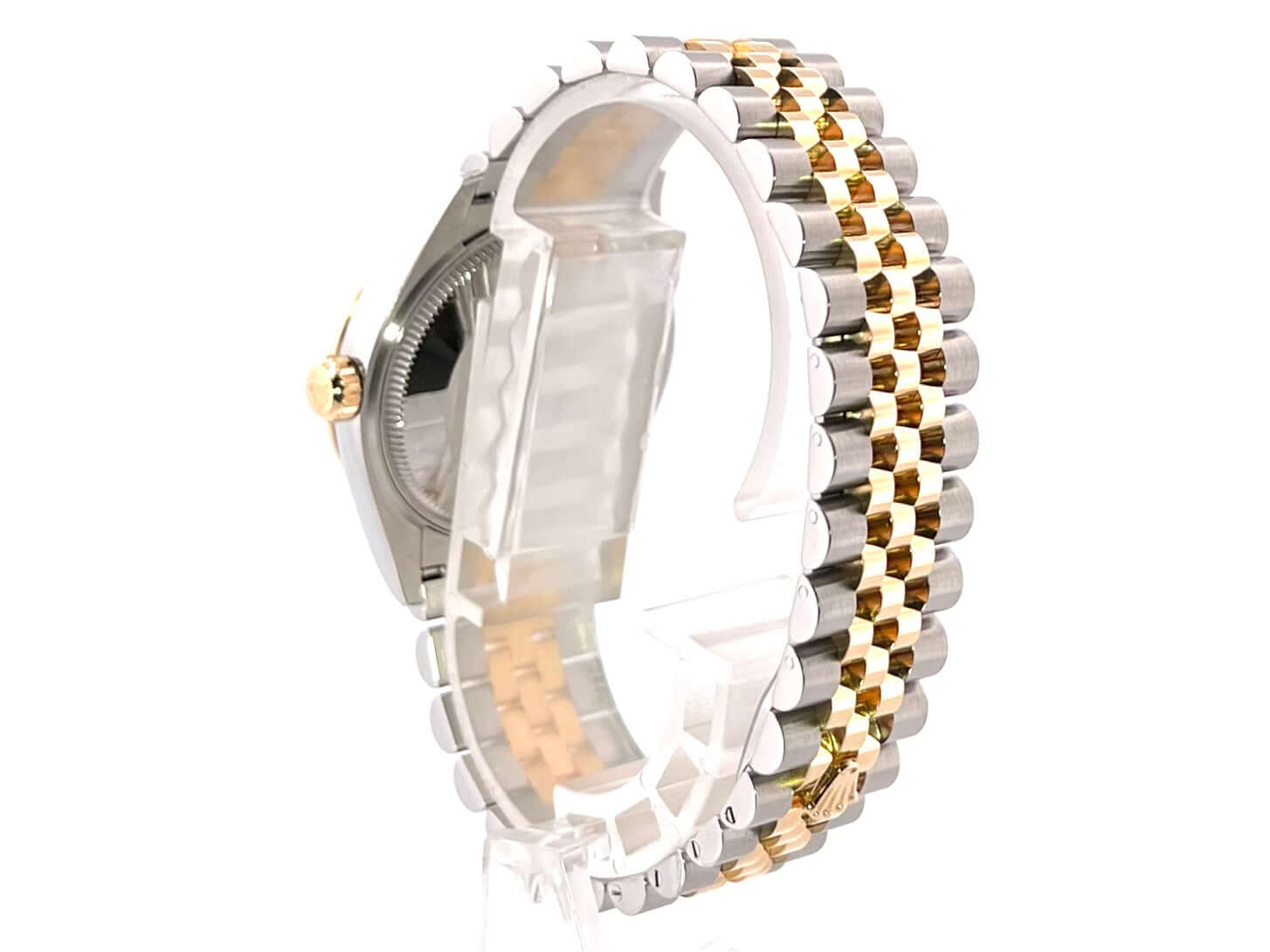Gehäuse aus Edelstahl poliert und satiniert, Gehäusedurchmesser 31 mm, geriffelte Lünette aus 18 kt Gelbgold, Jubile Edelstahl / 18 kt Gelbgold Armband poliert und satiniert mit Faltschließe, dunkles Perlmutt Zifferblatt mit 10 Diamanten, goldene Zeiger, Automatikwerk, Rolex Manufakturkaliber 2236 mit 31 Steine, 28.800 A/h, 55 Stunden Gangreserve, Datum, Chronometer, kratzfestes Saphirglas, verschraubte Krone aus 18 kt Gelbgold, Edelstahlboden verschraubt, Wasserdicht bis zu 10 bar.