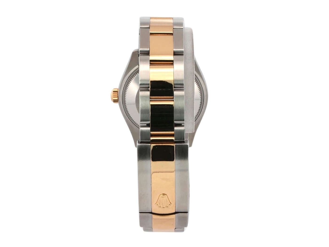 Gehäuse aus Edelstahl poliert und satiniert, Gehäusedurchmesser 31 mm, geriffelte Lünette aus 18 kt Gelbgold, Silberfarbenes Zifferblatt mit römischen Ziffern und Diamanten in der römischen VI, goldene Zeiger, Oyster Edelstahl / 18 kt Gelbgold Armband poliert und satiniert mit Faltschließe, Automatikwerk, Rolex Manufakturkaliber 2236 mit 31 Steine, 28.800 A/h, 55 Stunden Gangreserve, Datum, Chronometer, verschraubte Krone aus 18 kt Gelbgold, kratzfestes Saphirglas, Edelstahlboden verschraubt, Wasserdicht bis zu 10 bar.
